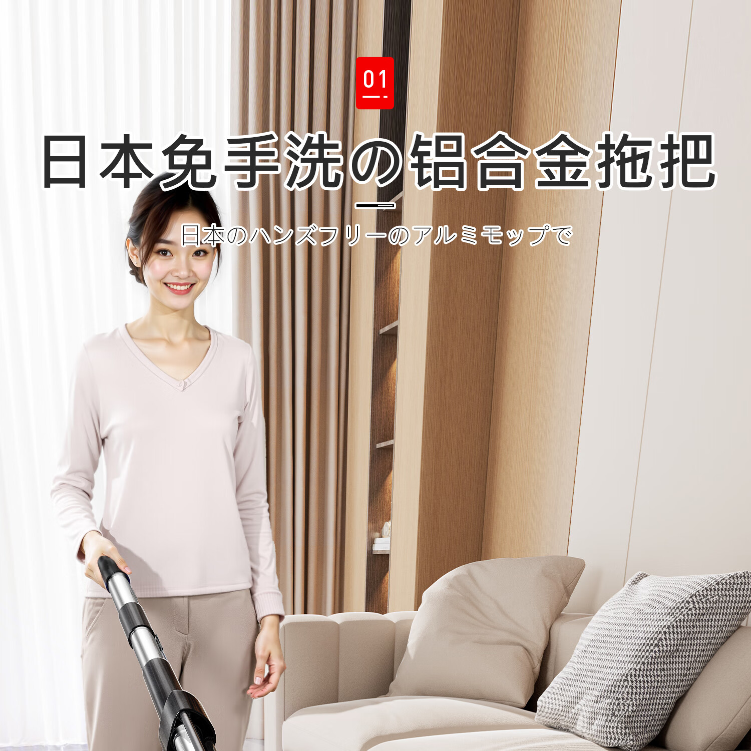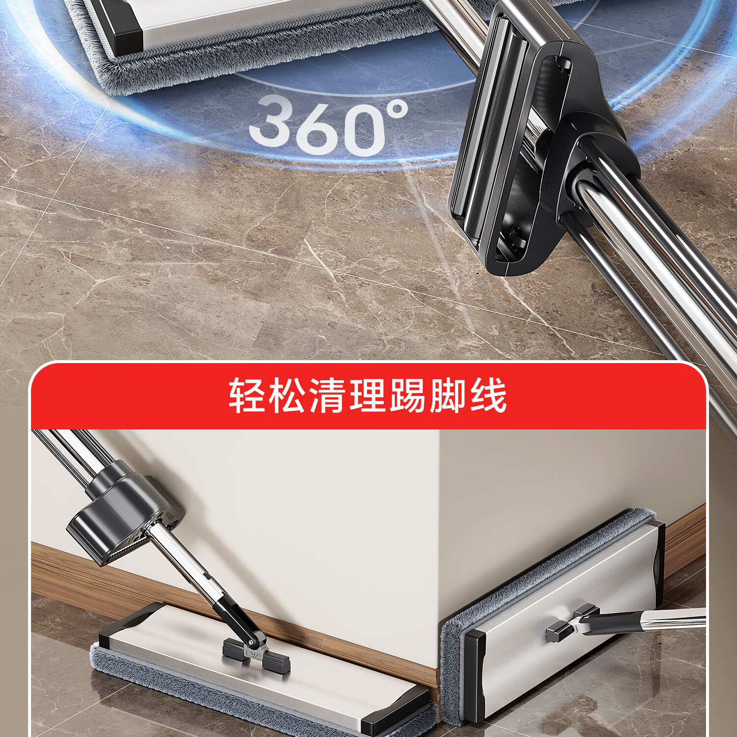 吱凡日本拖把带桶一套家用干湿两用2025新款免手洗一拖净懒人拖地神器 【40cm铝合金】共1块布