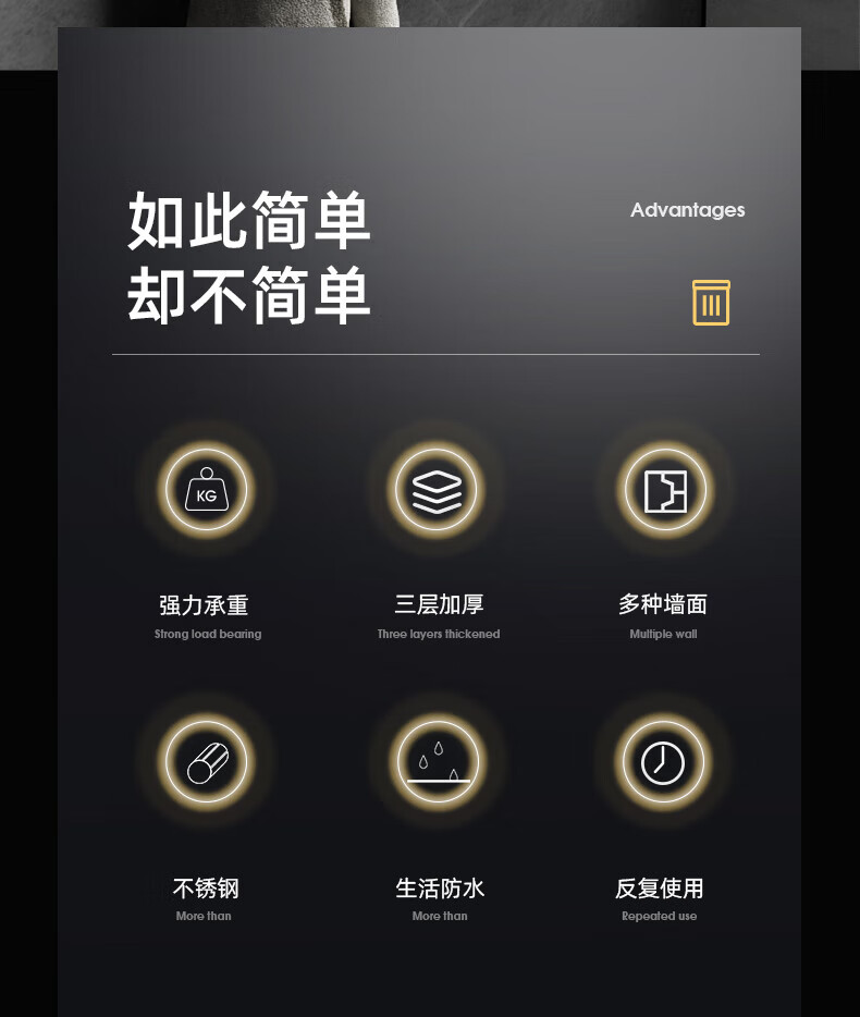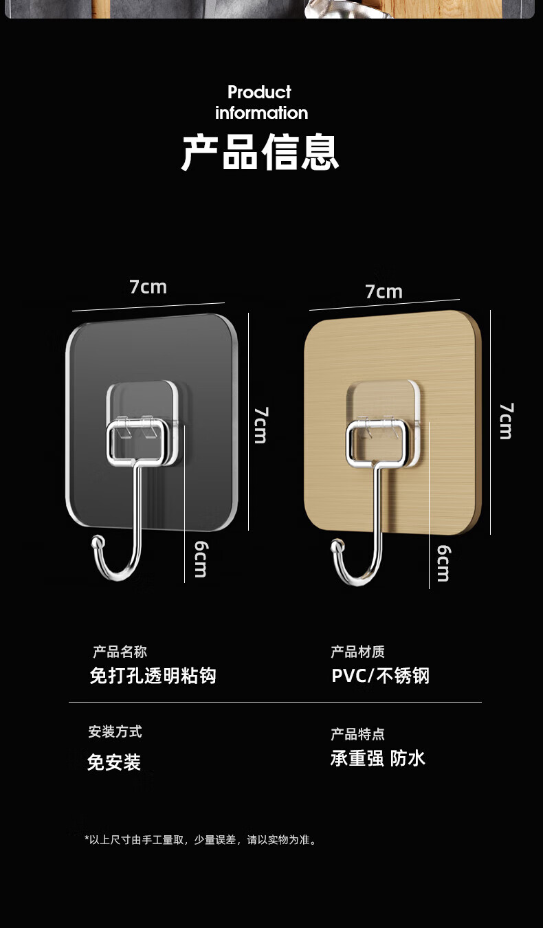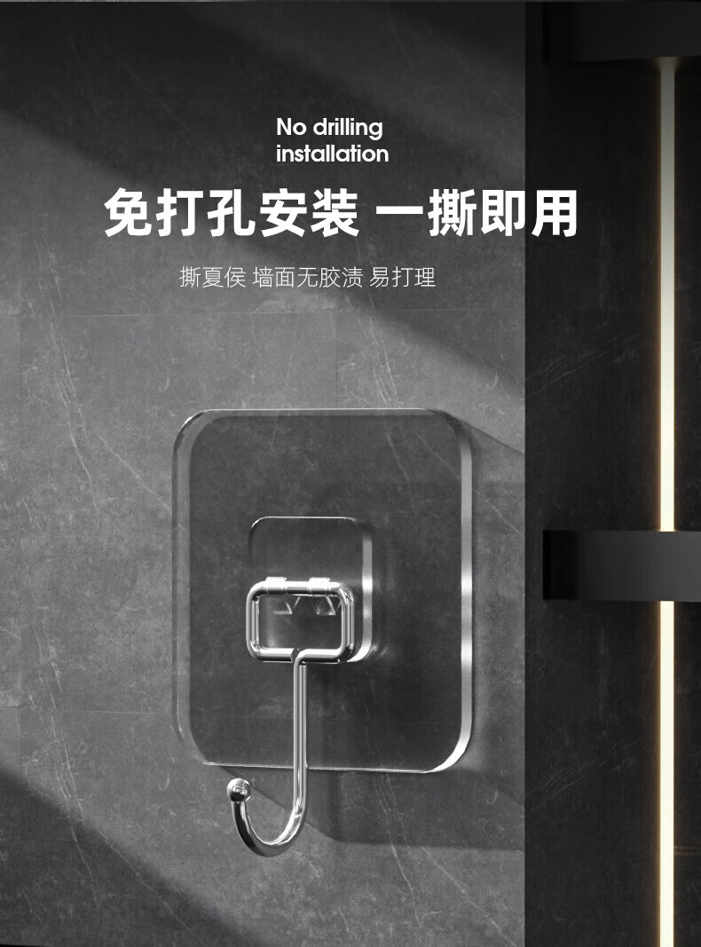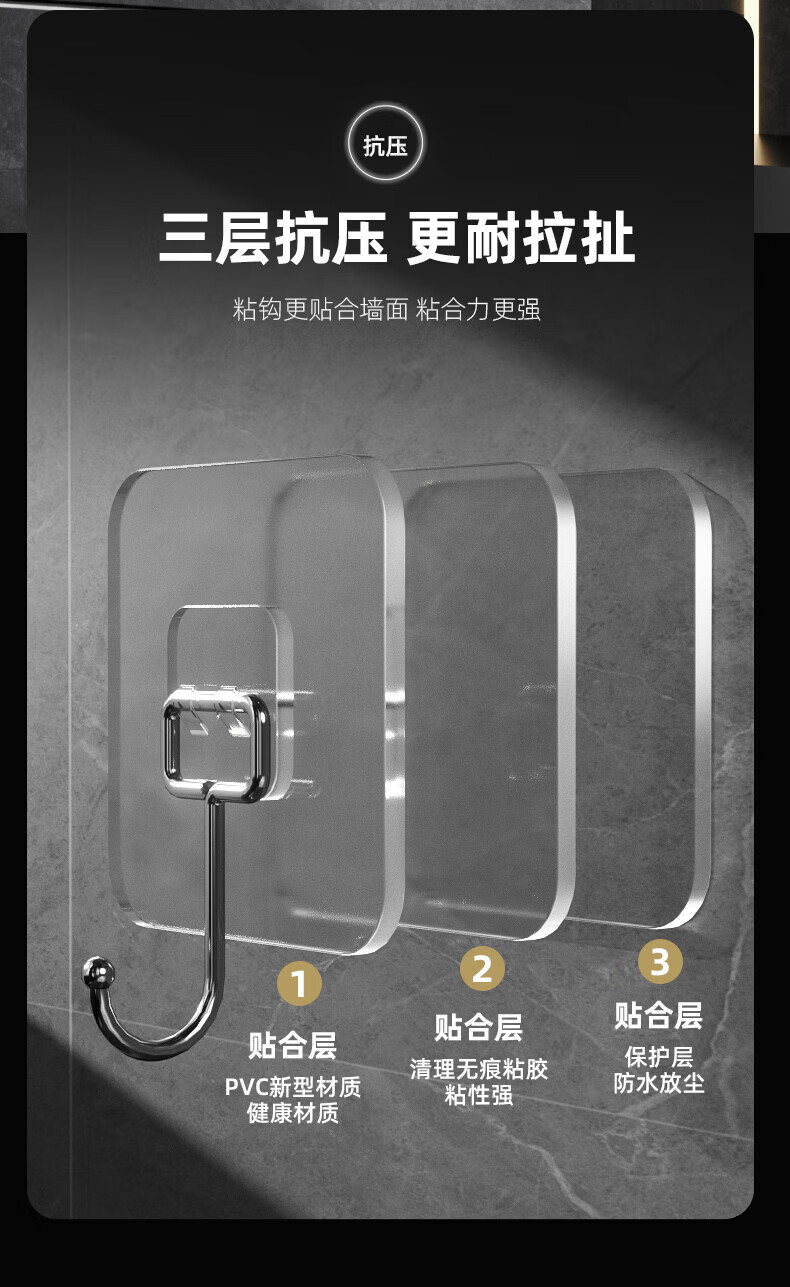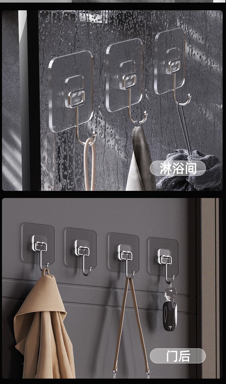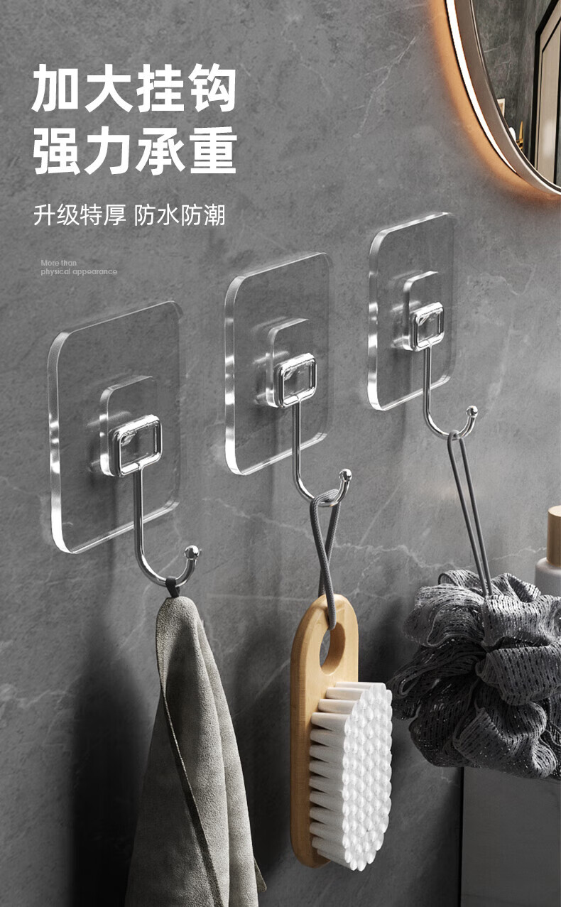 宜思家(YISIJIA)挂钩强力承重免打孔无痕粘胶厨房墙壁浴室门后挂衣服粘贴挂钩 加大特厚【10个装】