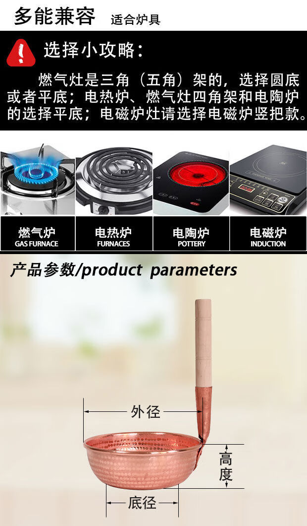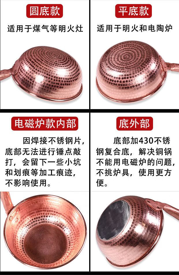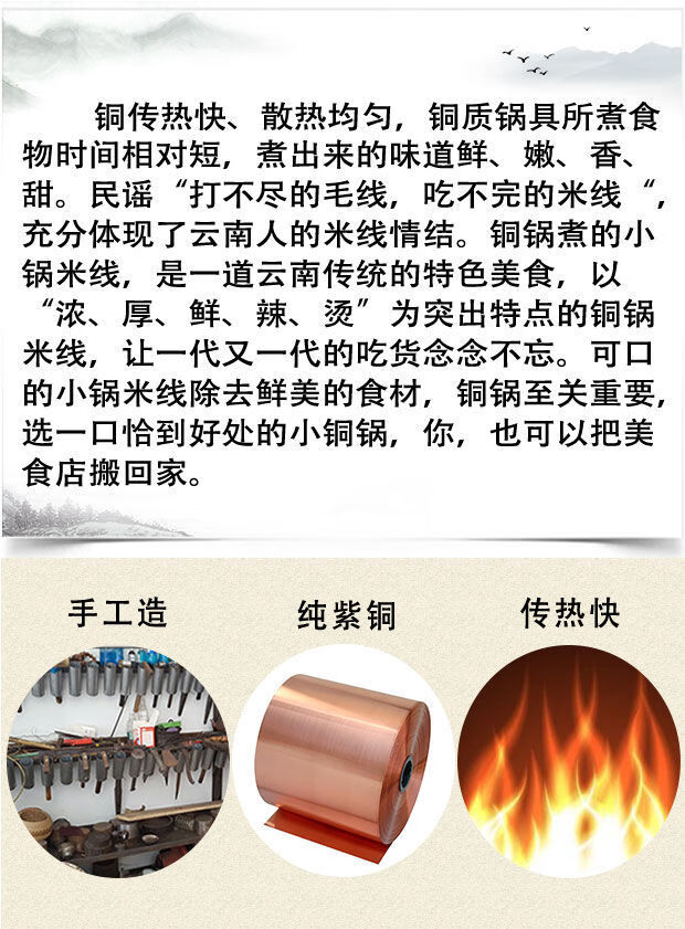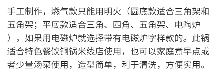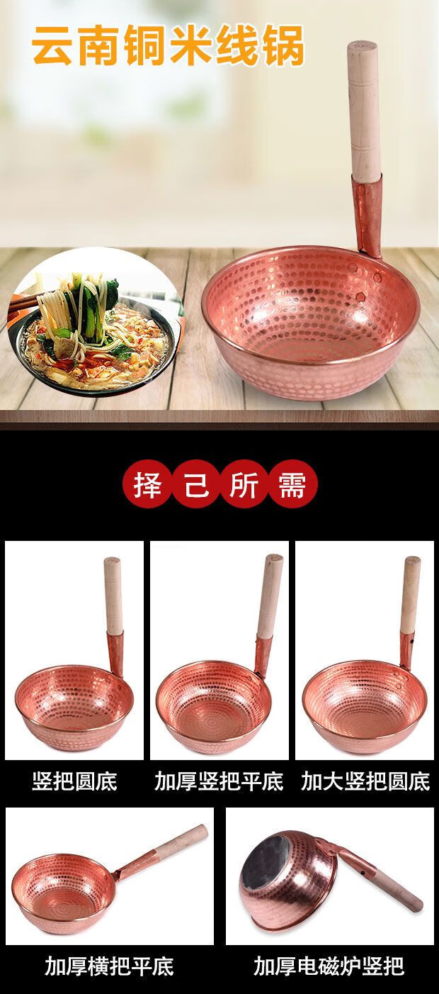 咏夏纯铜小吃店米线锅米粉锅云南煮小锅米线铜锅商用家用手工加厚汤锅 普通米线锅(20厘米竖把圆底)燃气款