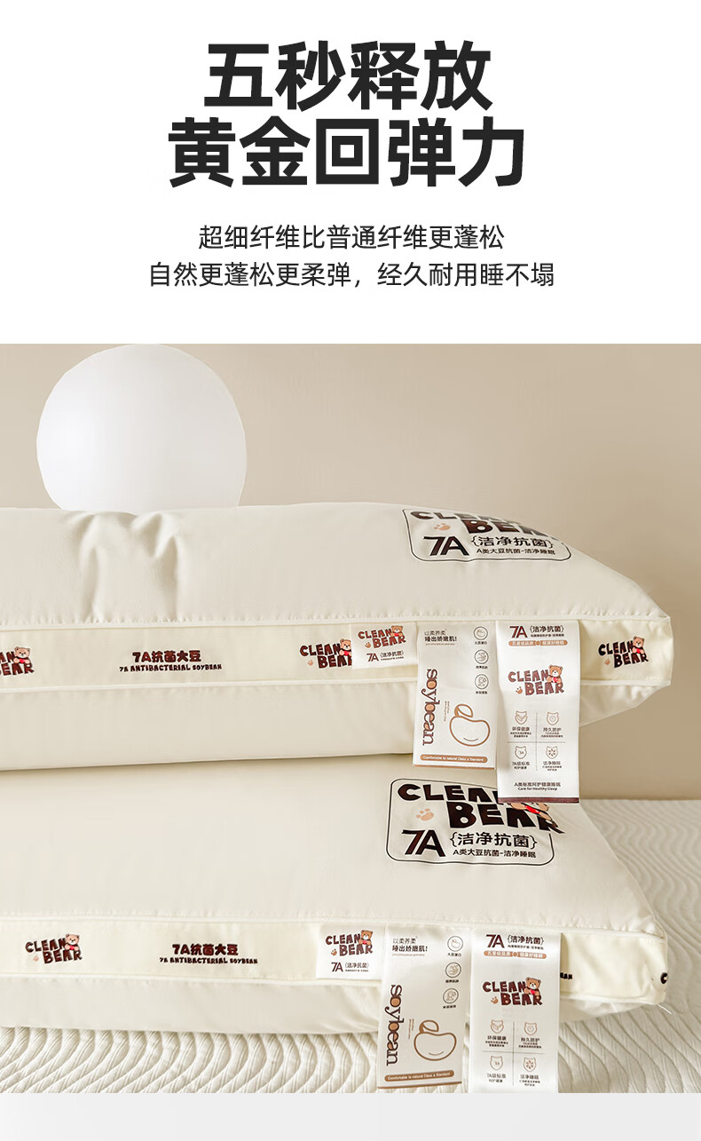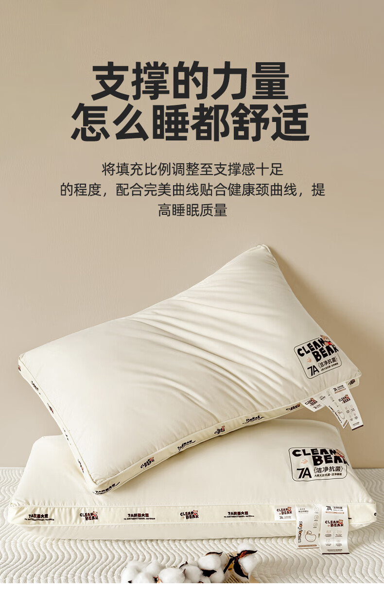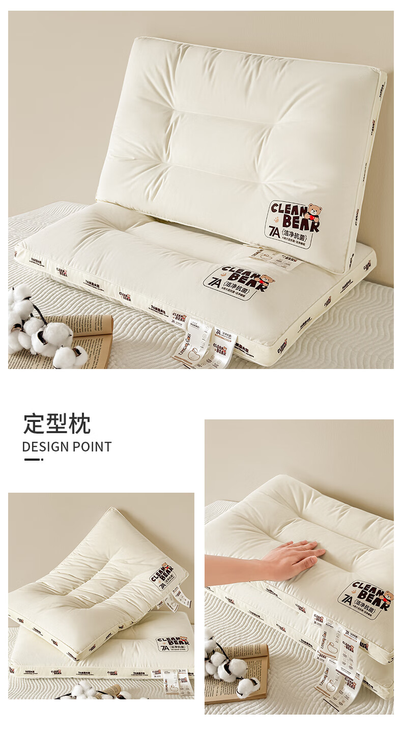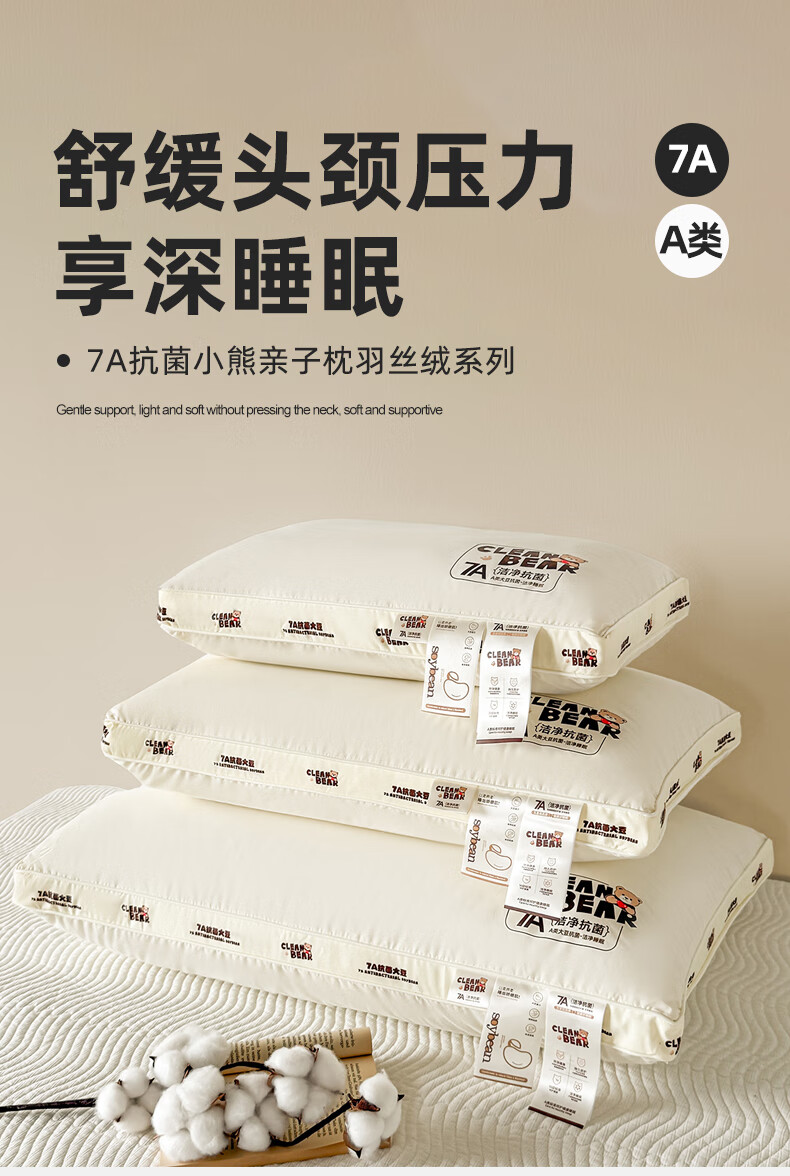 元族2025新款7A抗菌小熊亲子枕枕头枕芯 定型枕 50cm 30*/只