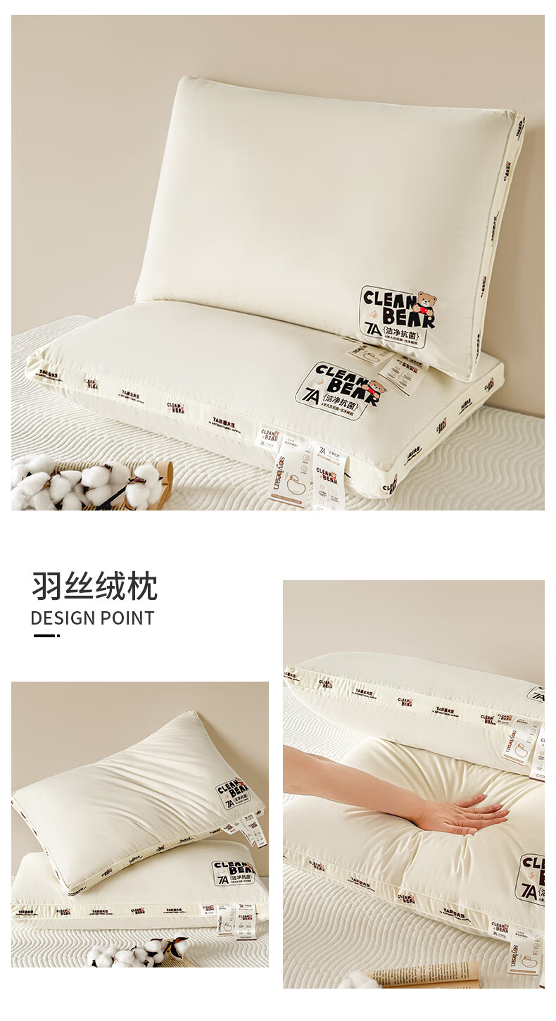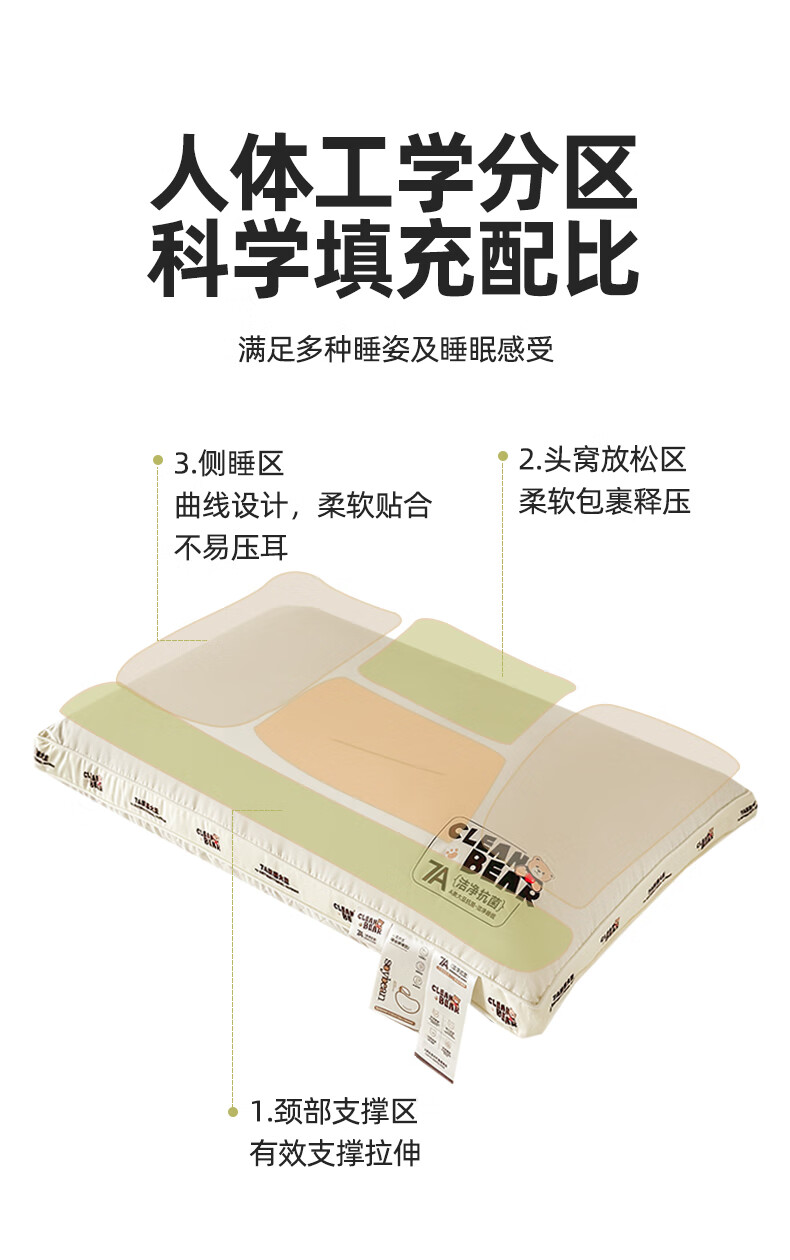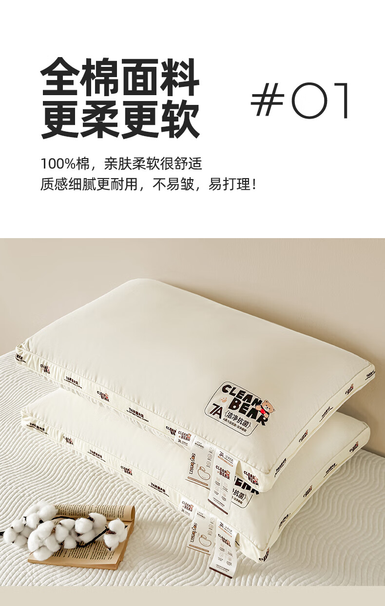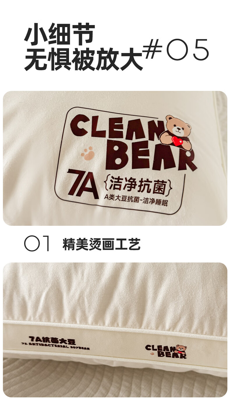 元族2025新款7A抗菌小熊亲子枕枕头枕芯 定型枕 50cm 30*/只