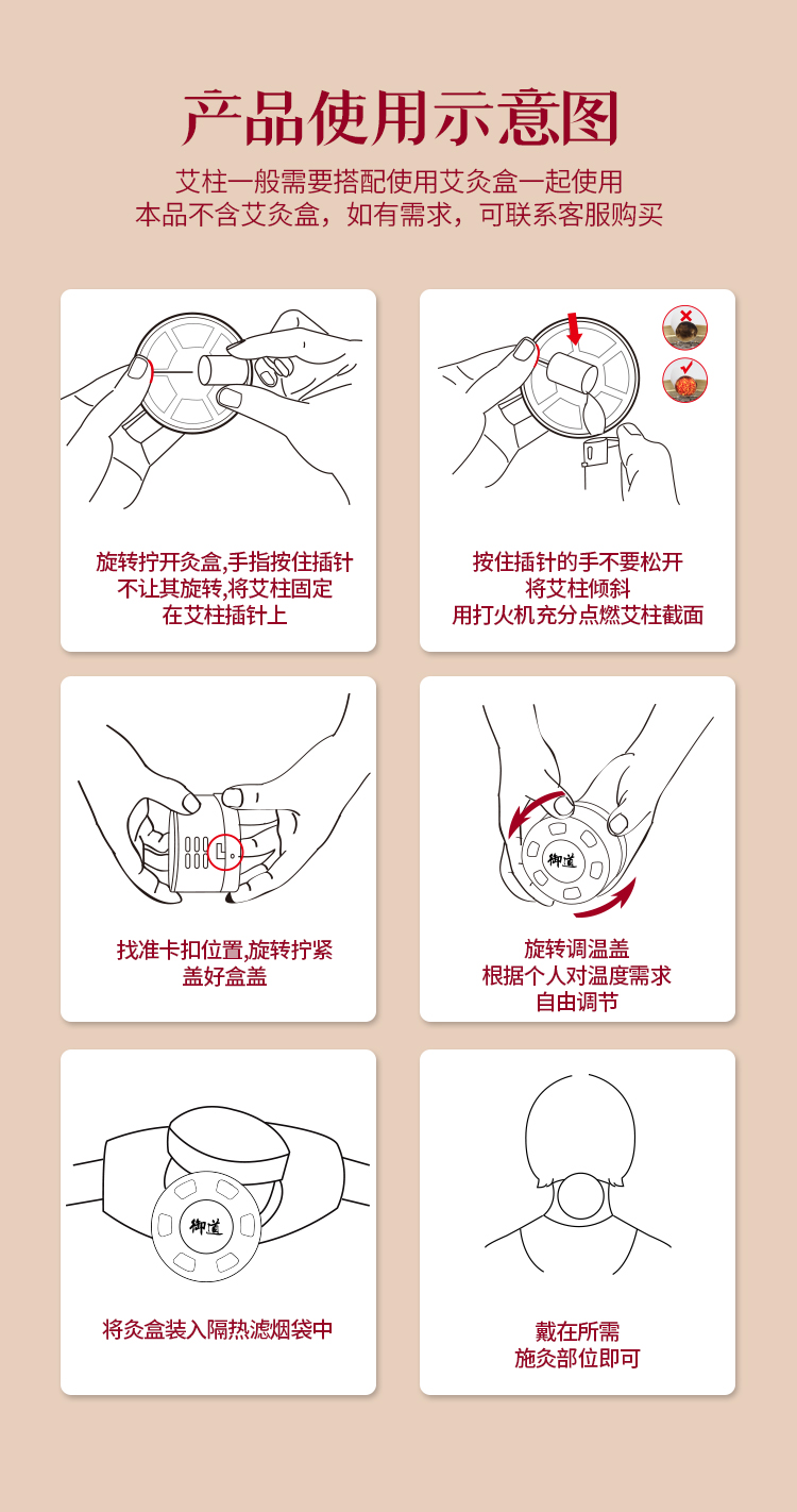 御道陈艾柱54粒艾灸柱家用短艾条陈年熏艾灸条纯艾条棒艾草艾叶艾绒柱