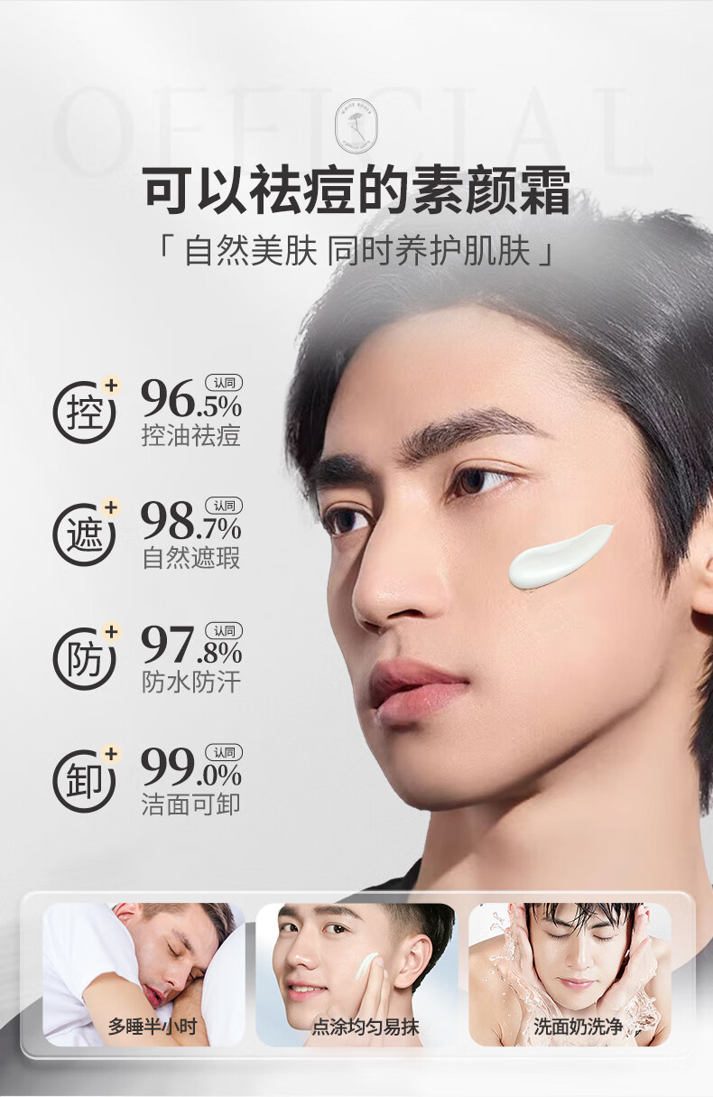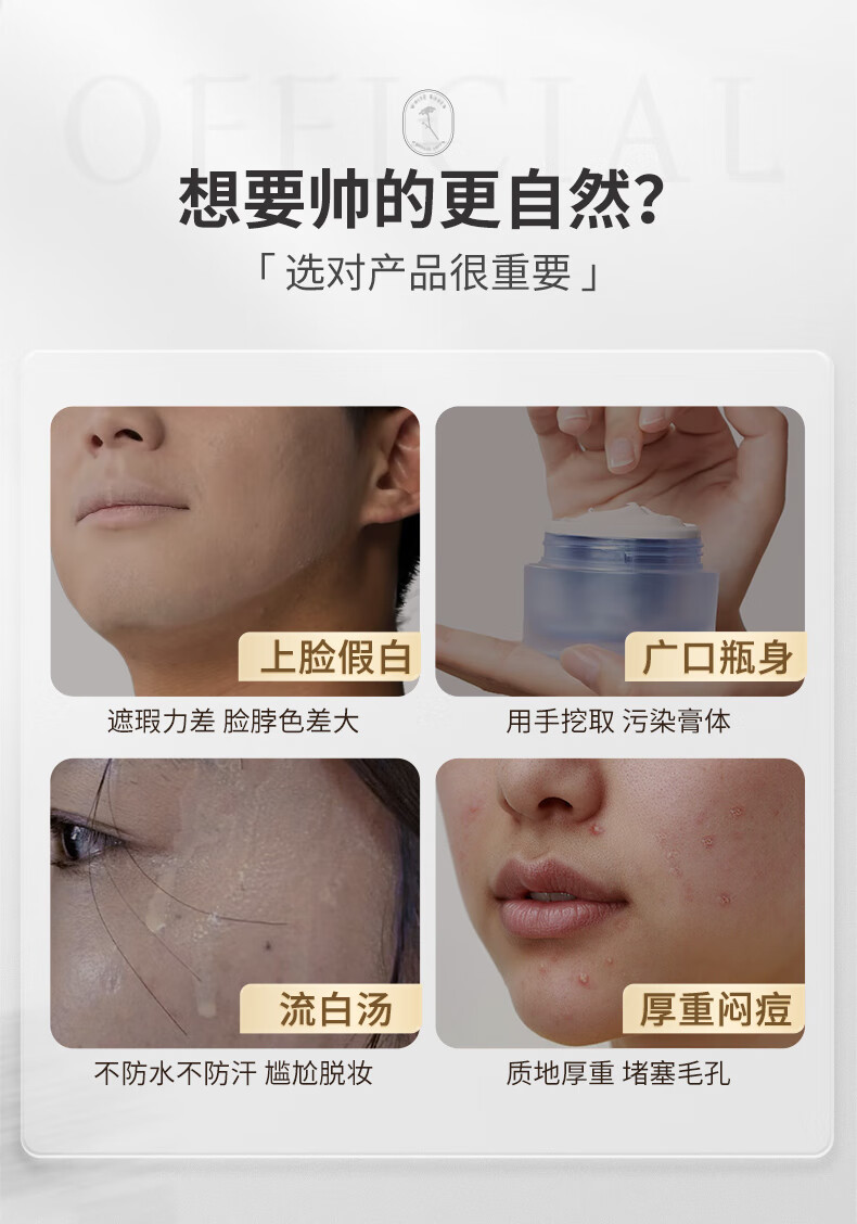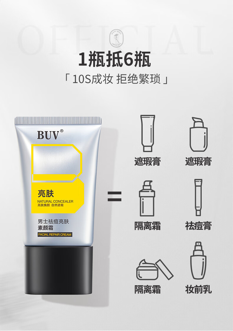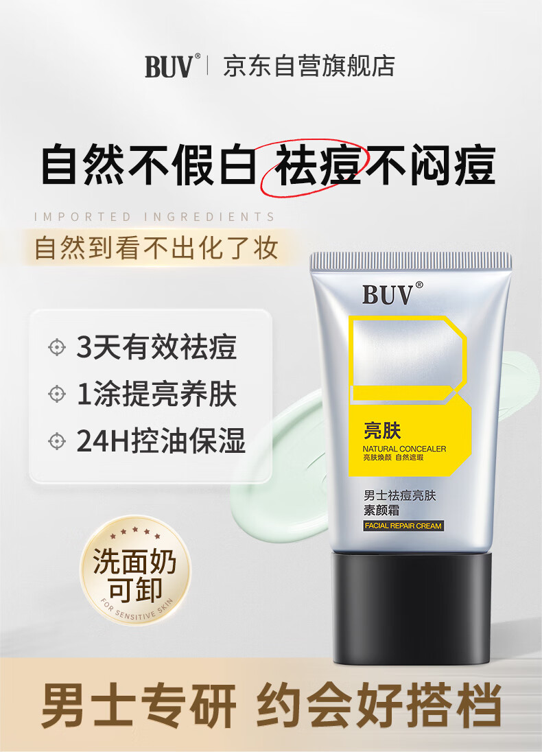 BUV男士专用素颜霜自然遮瑕遮痘印美白提亮祛痘乳液隔离BB霜懒人面霜