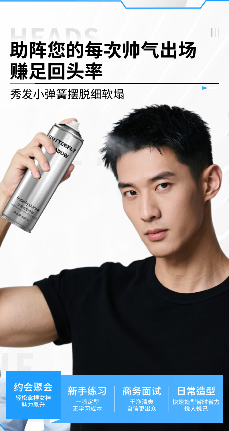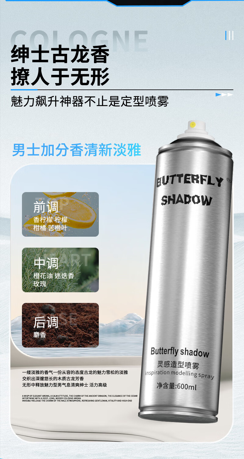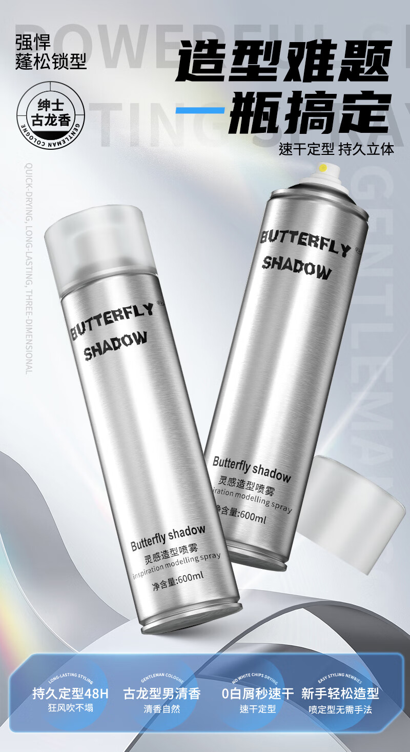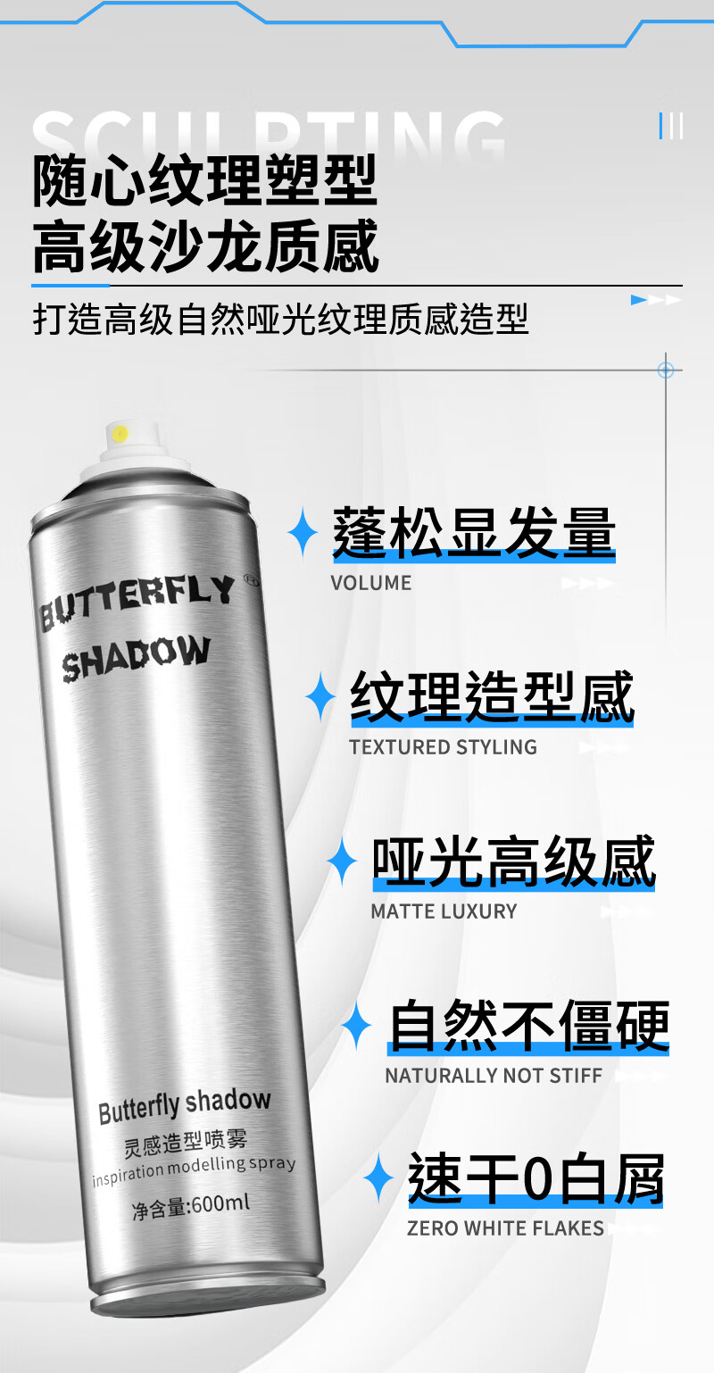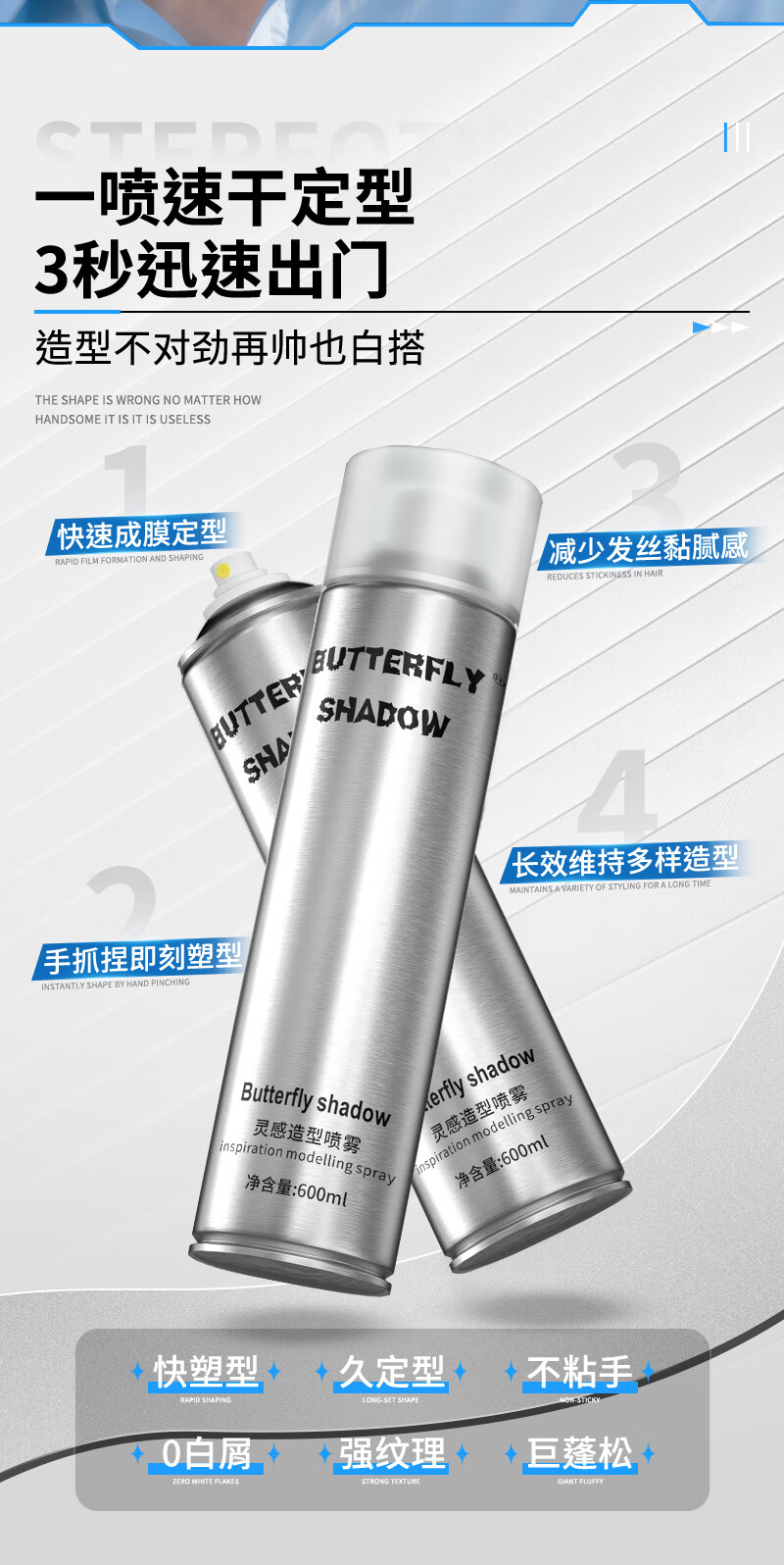 蝶伊清影BUTTERFLY定型喷雾发胶男士头发造型蓬松自然持久干胶定型600ml
