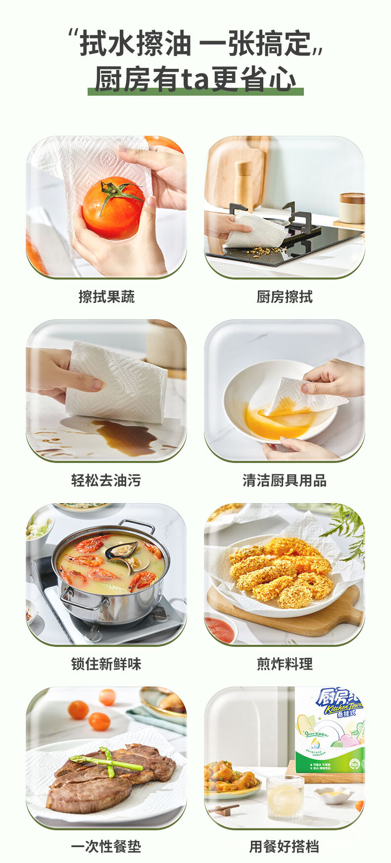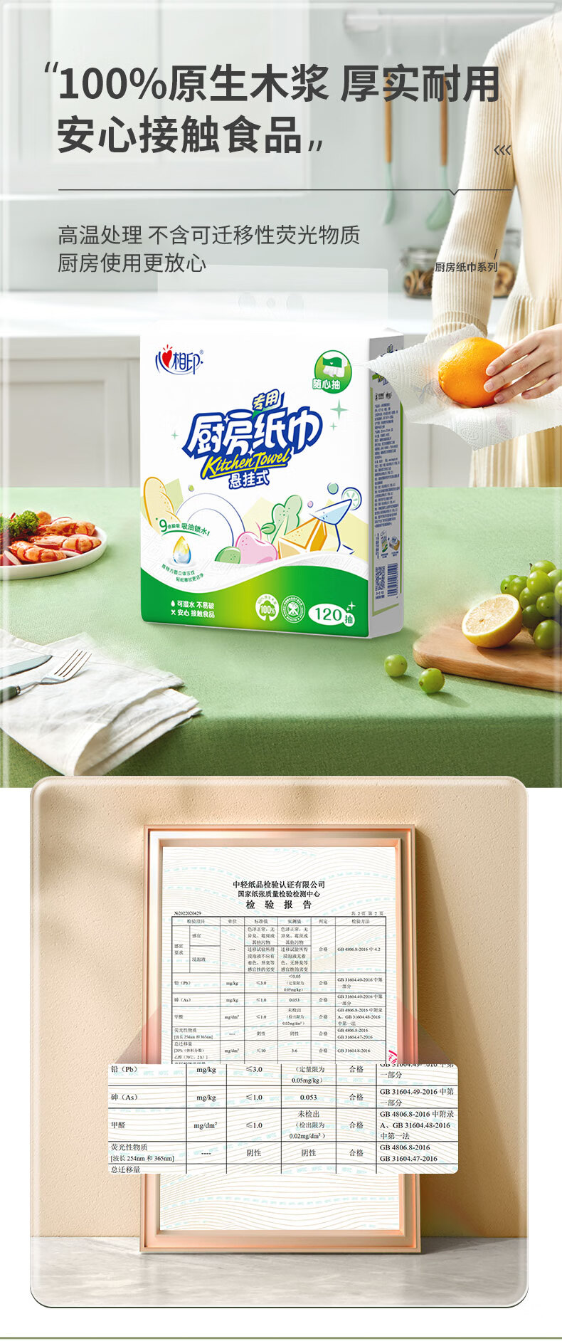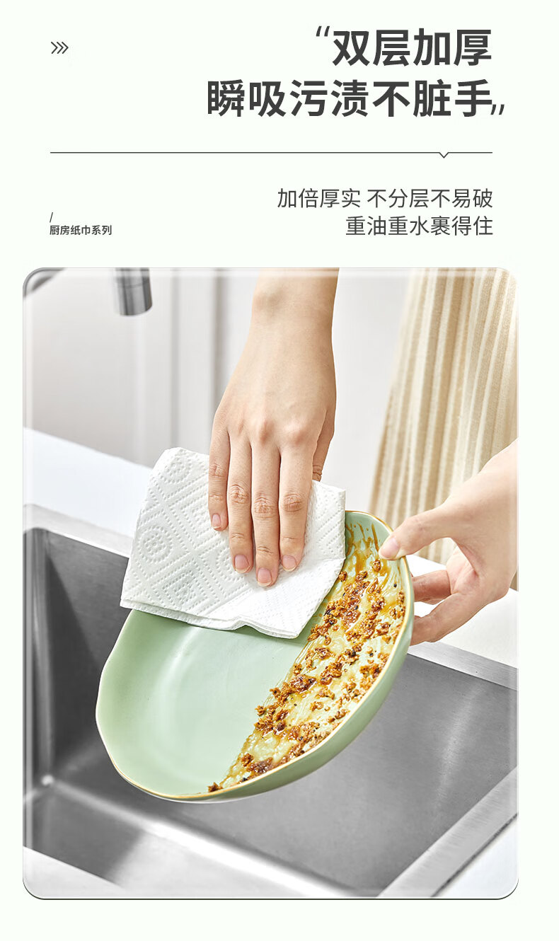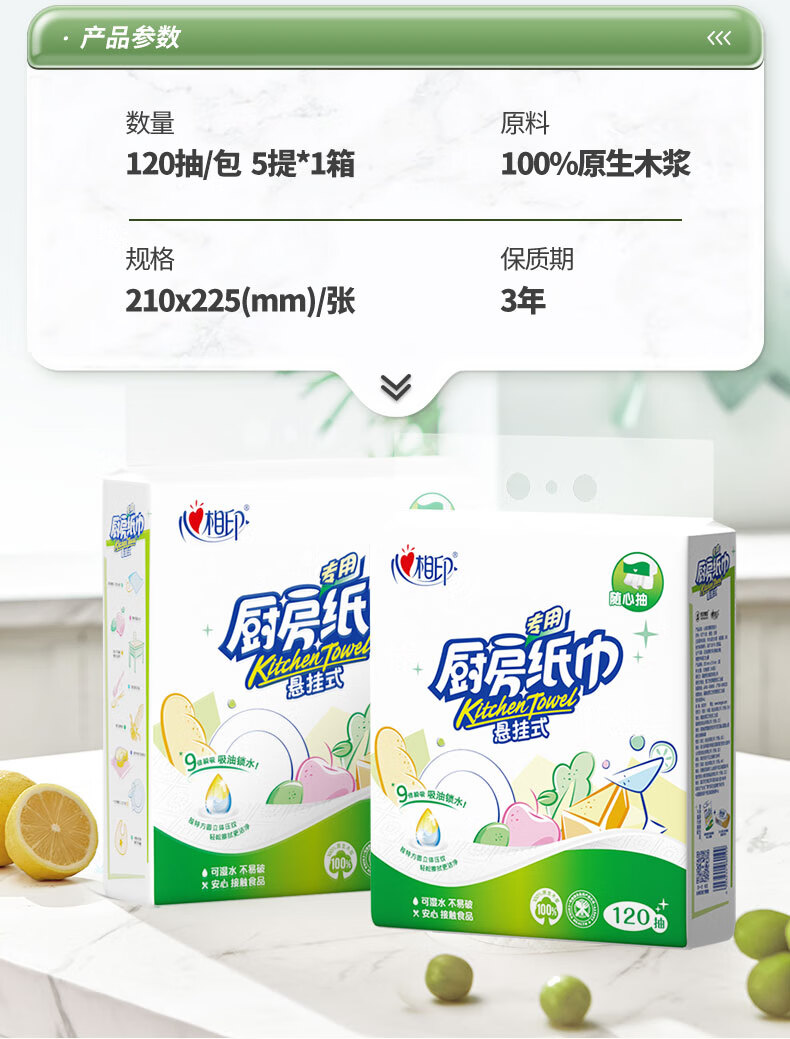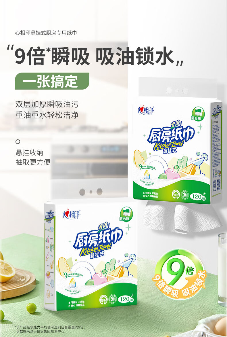 心相印厨房纸巾 悬挂式120抽5提整箱 吸油锁水 食品级厨房专用纸 底部抽 2层 120抽*1提 【210*225超大张】