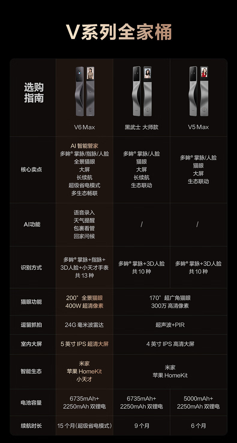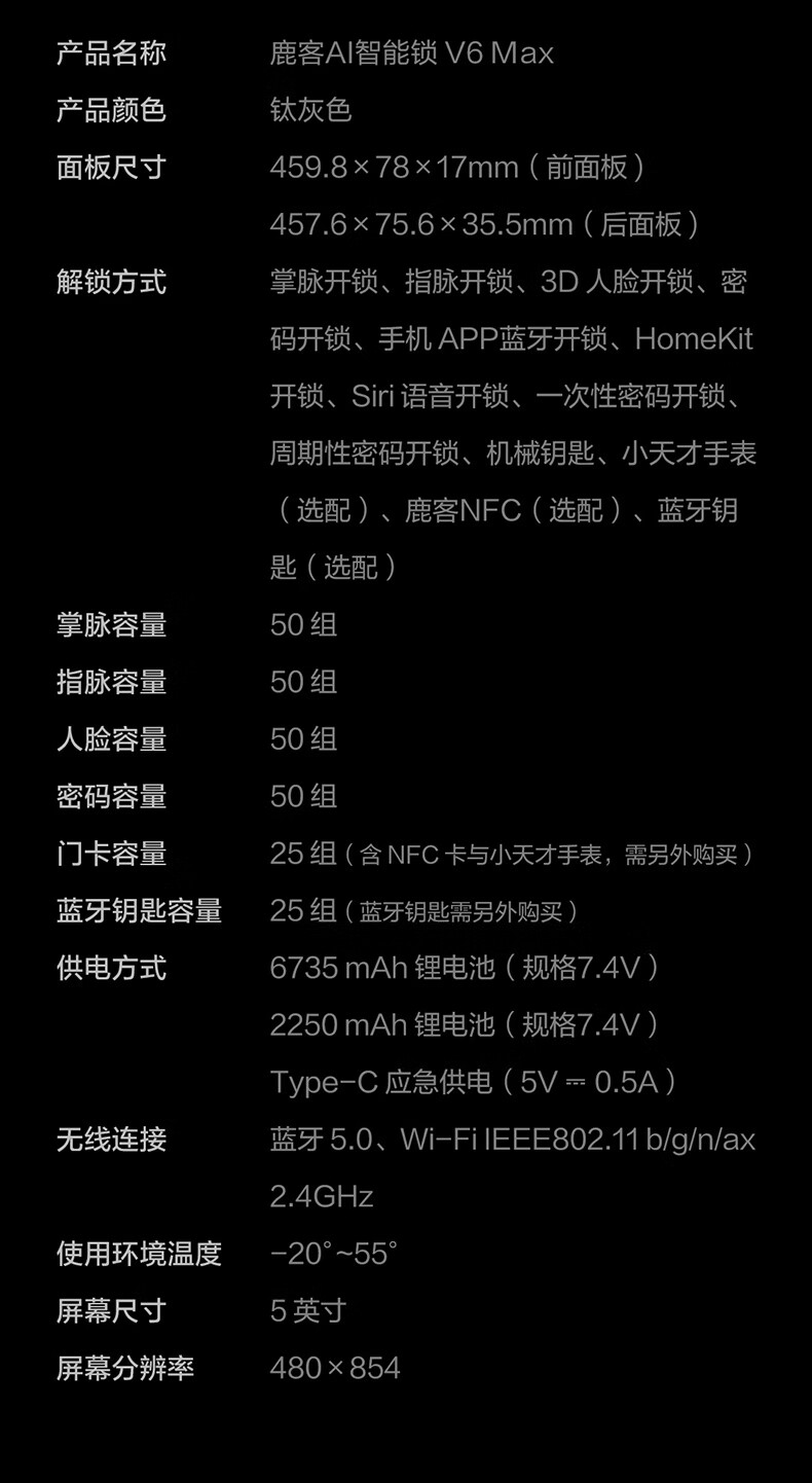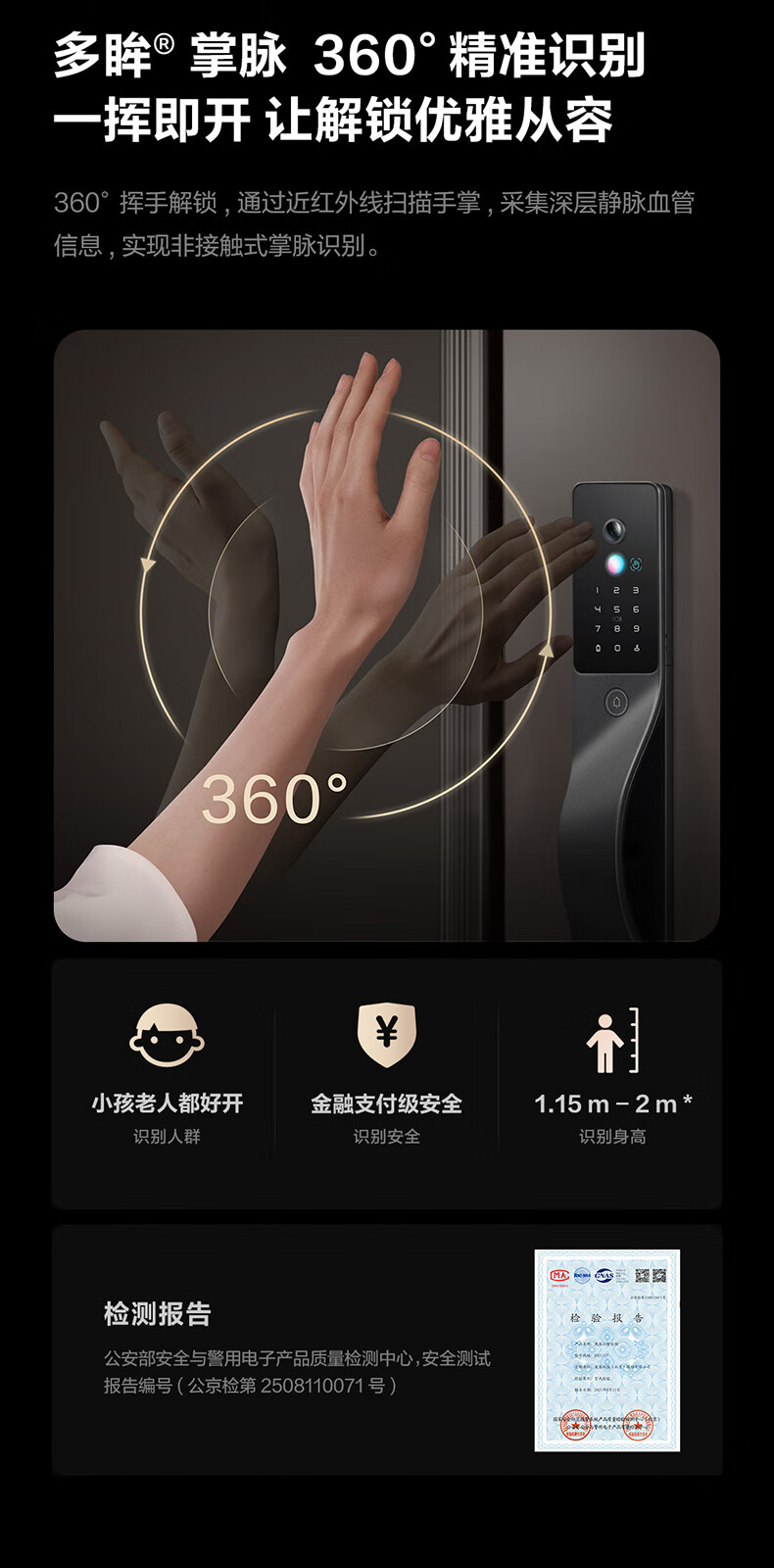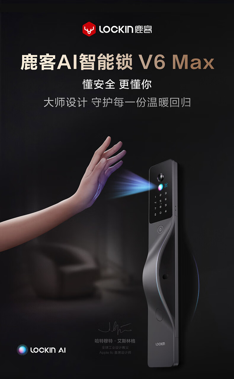 鹿客AI智能门锁掌静脉人脸识别全景猫眼大屏密码锁电子锁V6 Max左开