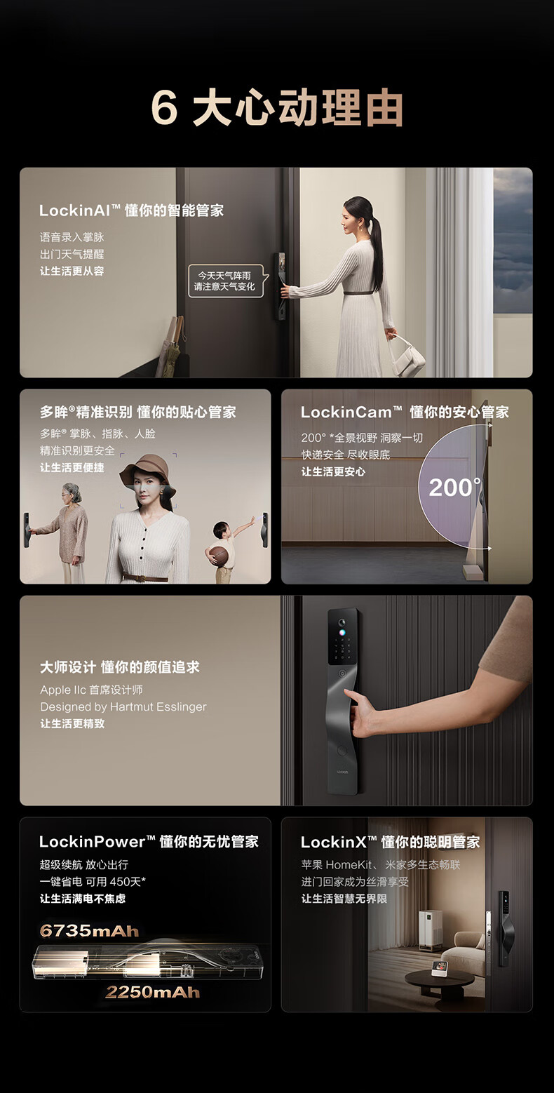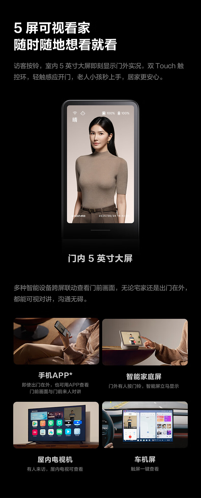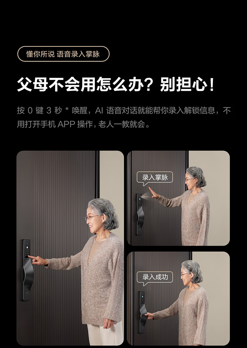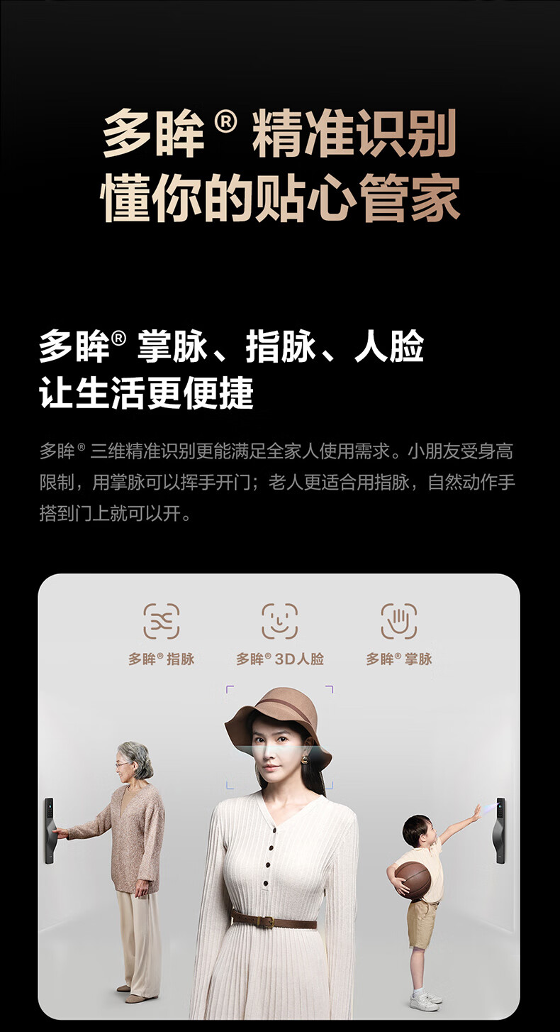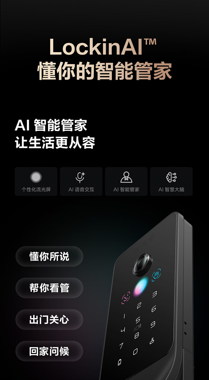 鹿客AI智能门锁掌静脉人脸识别全景猫眼大屏密码锁电子锁V6 Max左开