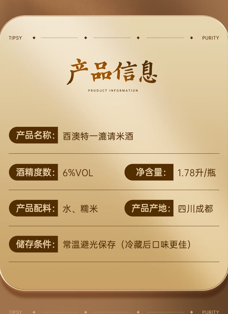 酉澳特一漉日式清米酒1780ML送735ML宴请0添加微醺解腻解辣纯米酿低度酒