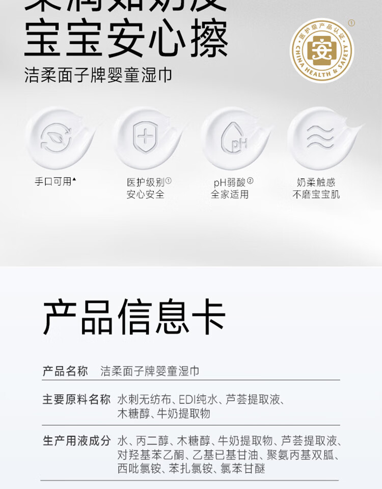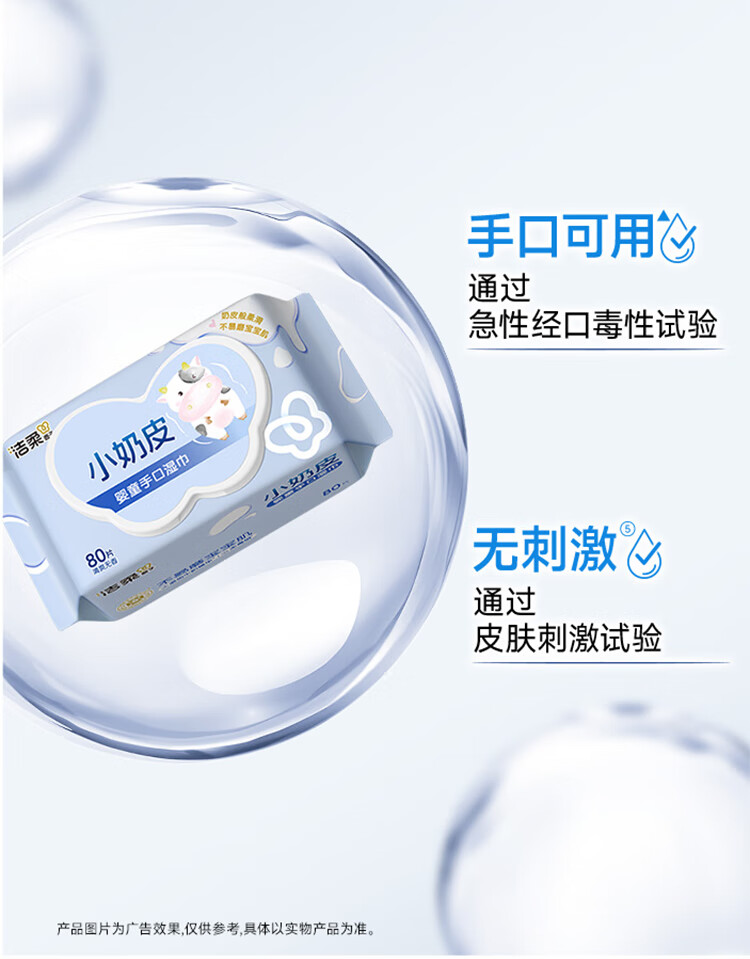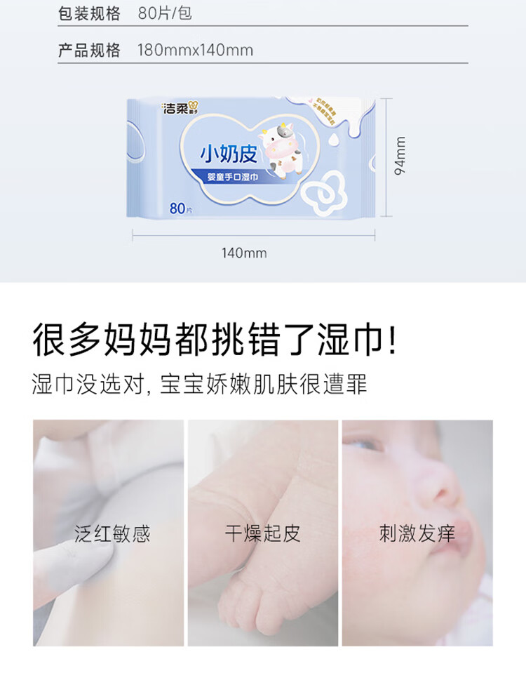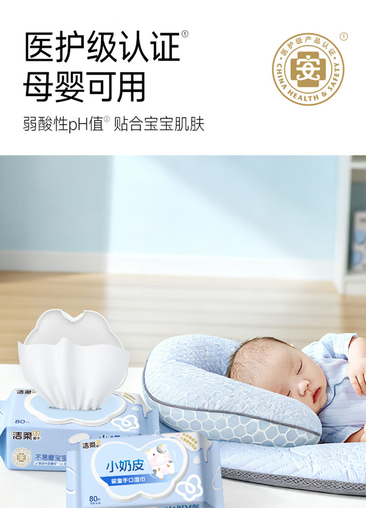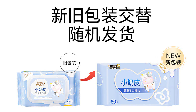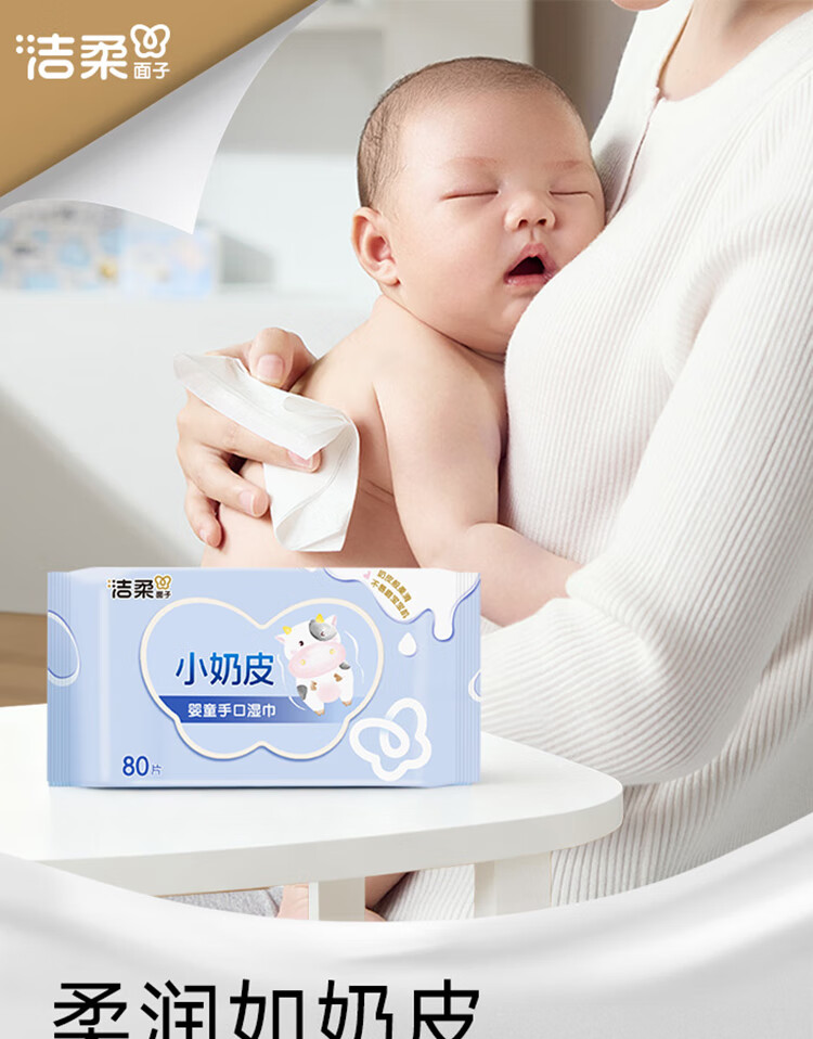 洁柔婴儿湿巾亲肤小奶皮80抽*6包湿纸巾婴儿手口屁专用儿口手口湿巾