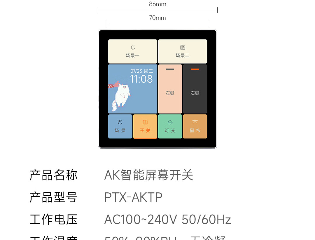 平头熊AK中控屏幕智能面板人体感应款蓝牙Mesh2.0 白色(人体感应款)