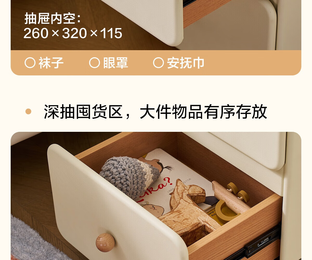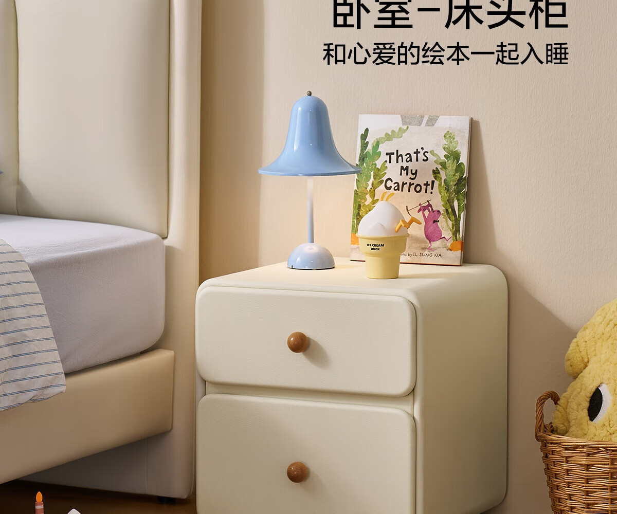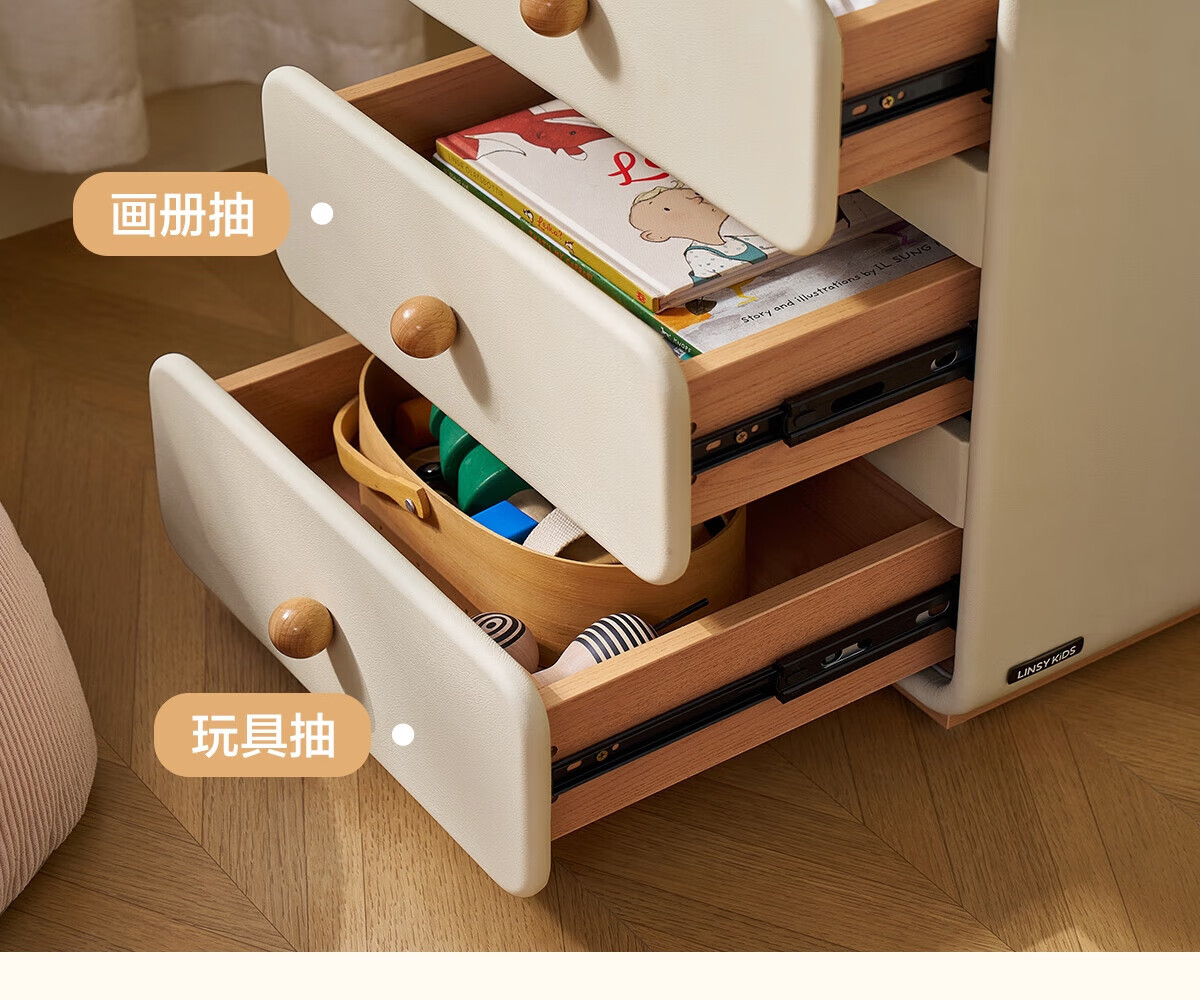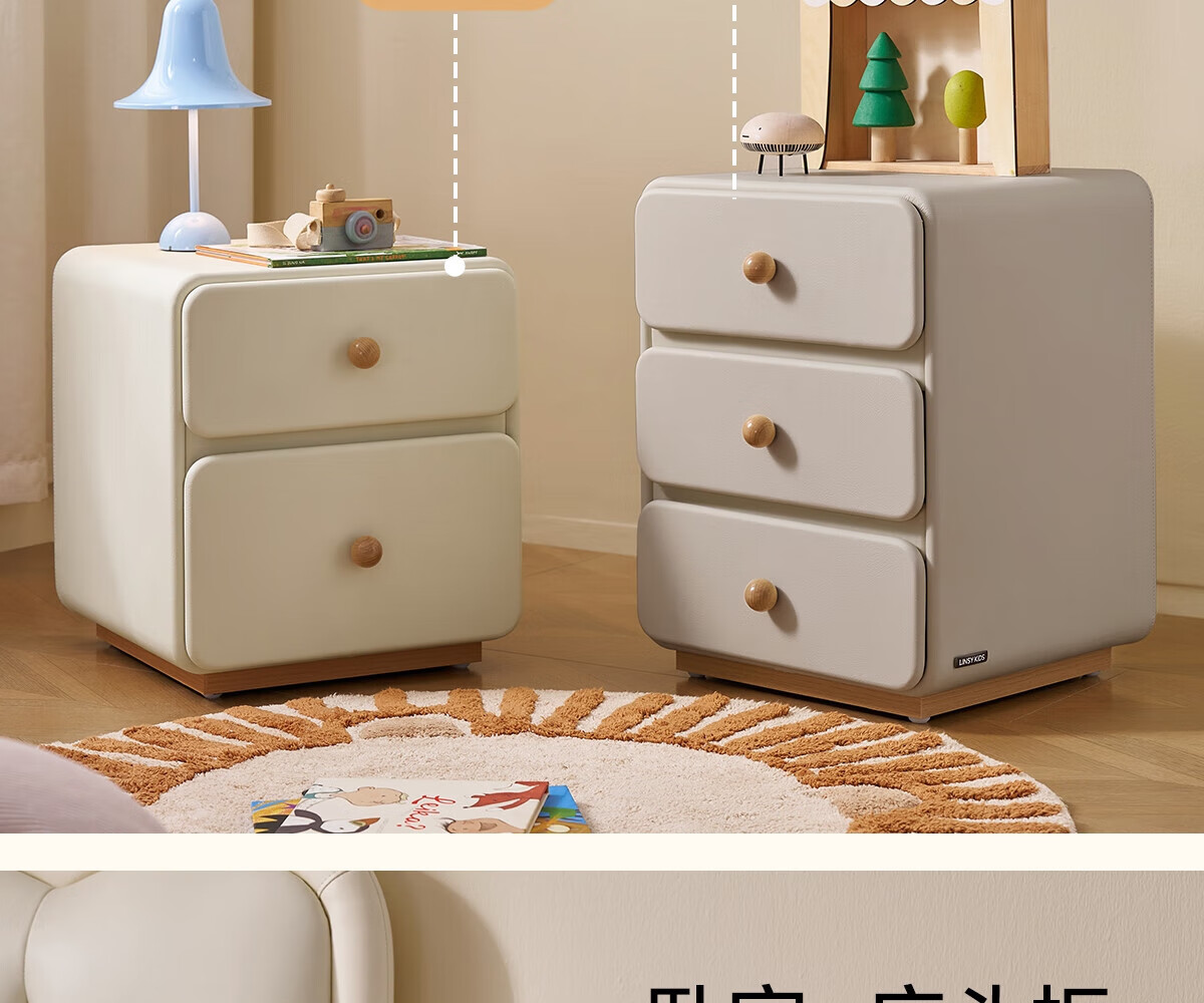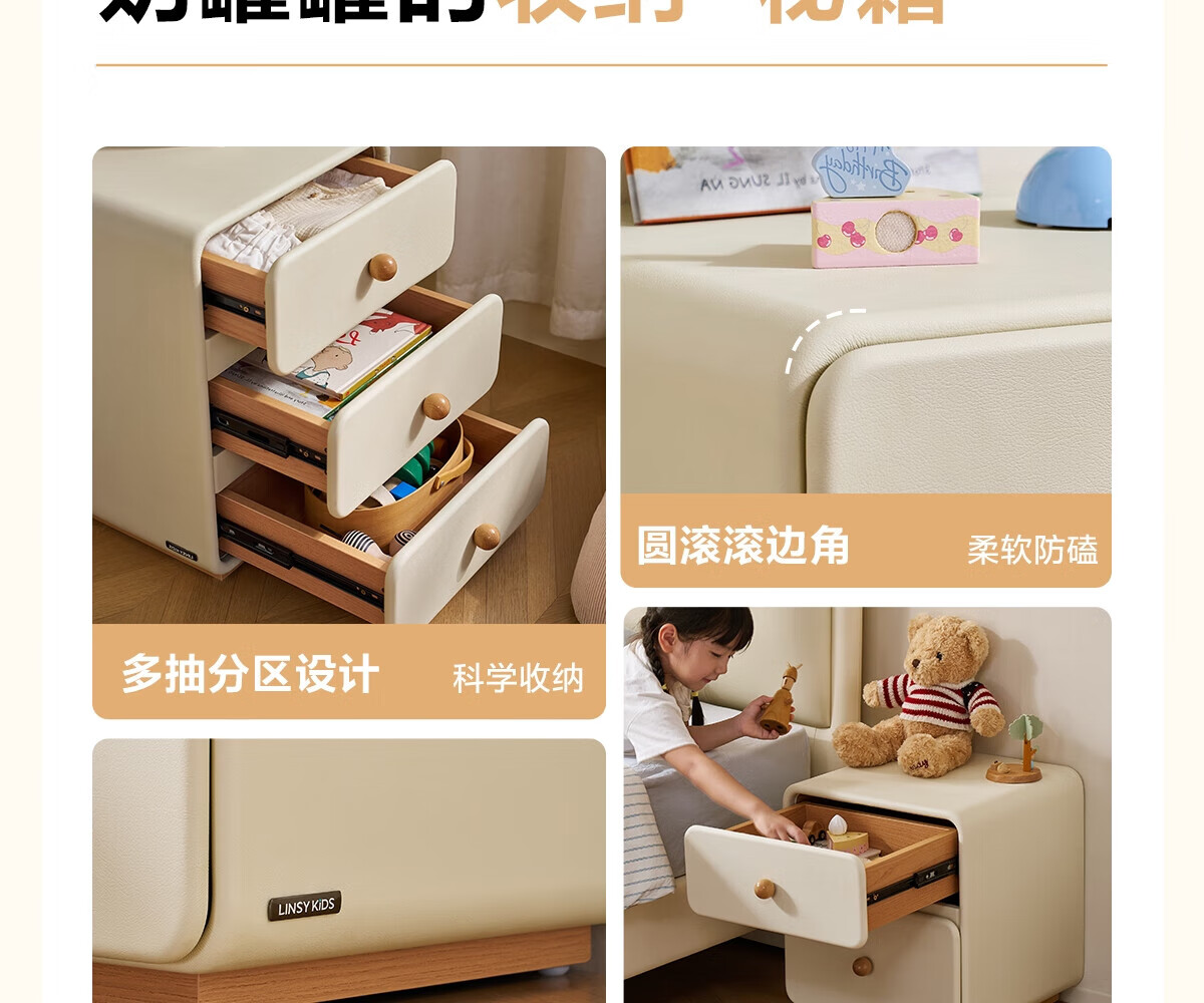 LINSY KIDS林氏家居奶油风床头柜儿童卧室储物柜床边小柜斗柜玩具柜子D619 【乳酪白】D619-A 双抽款床头柜