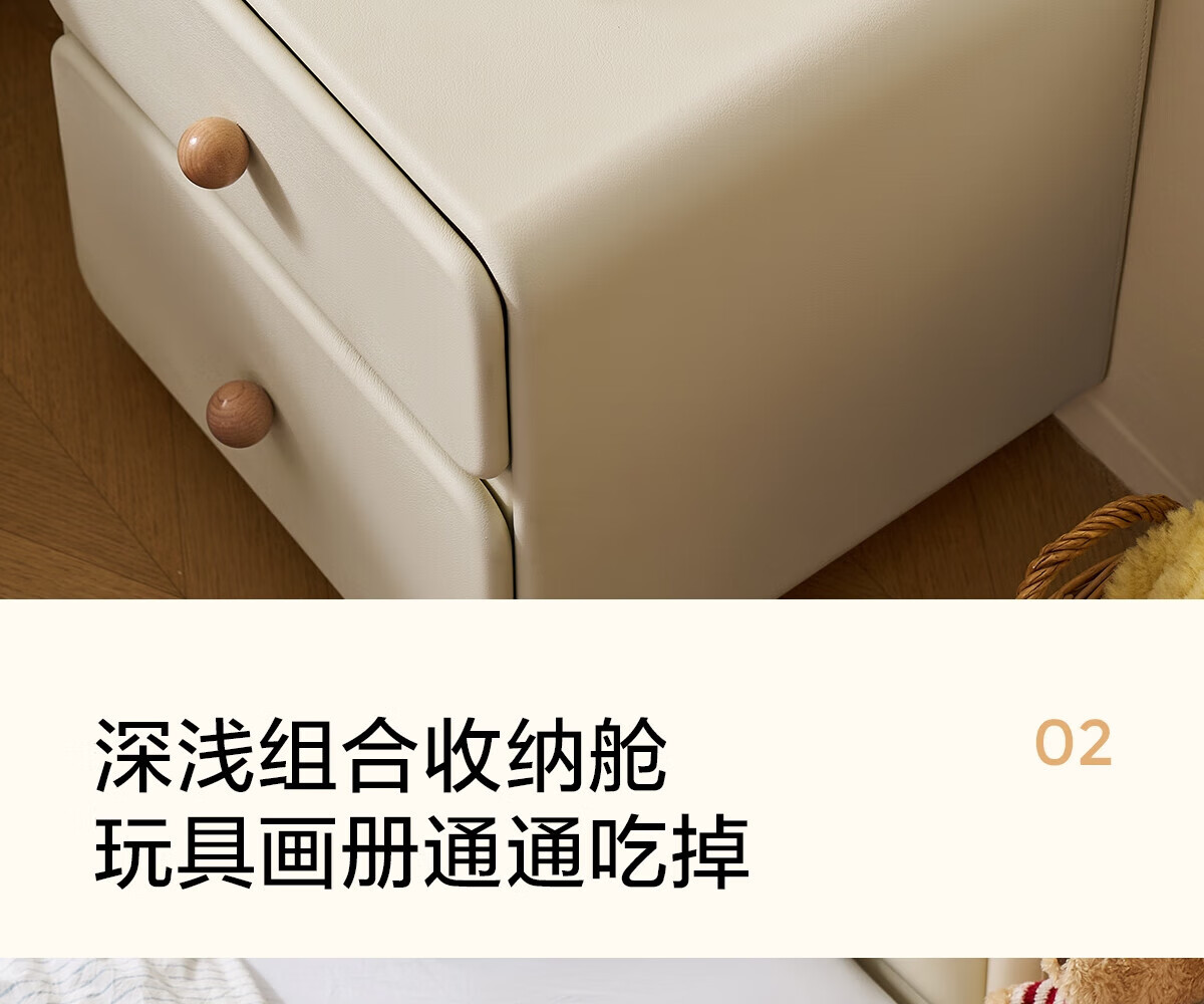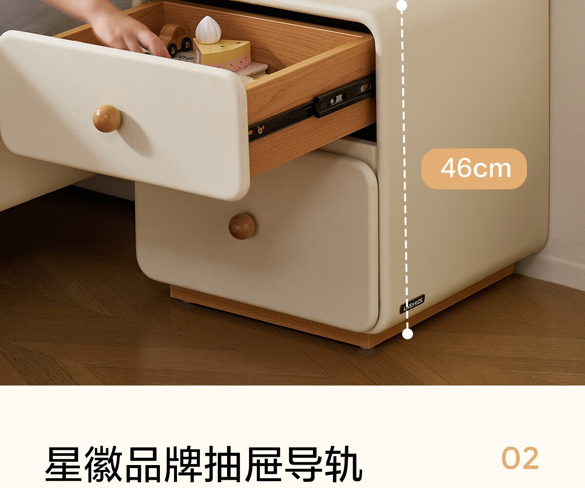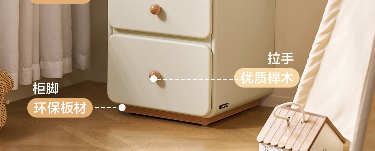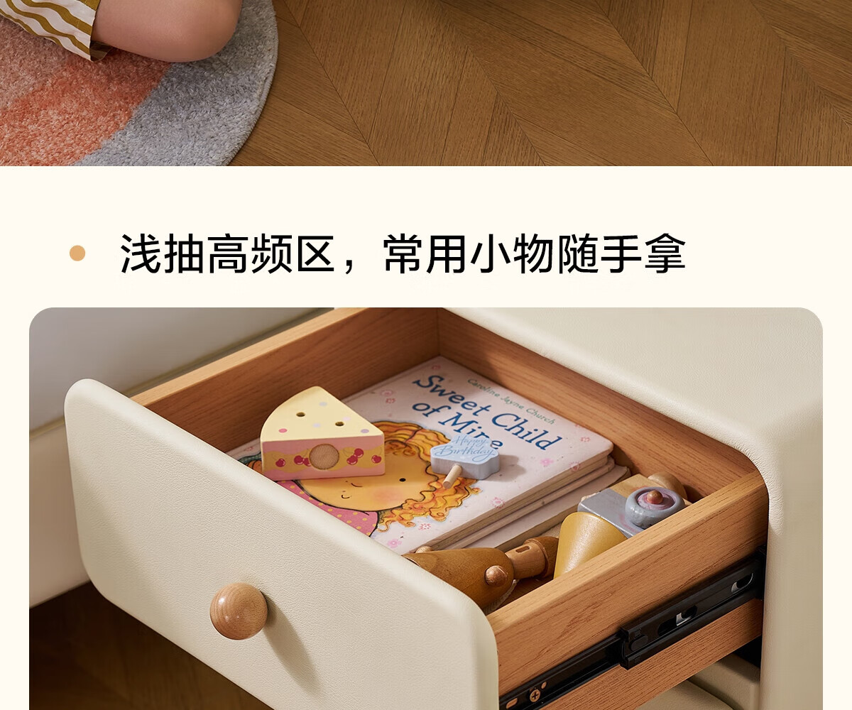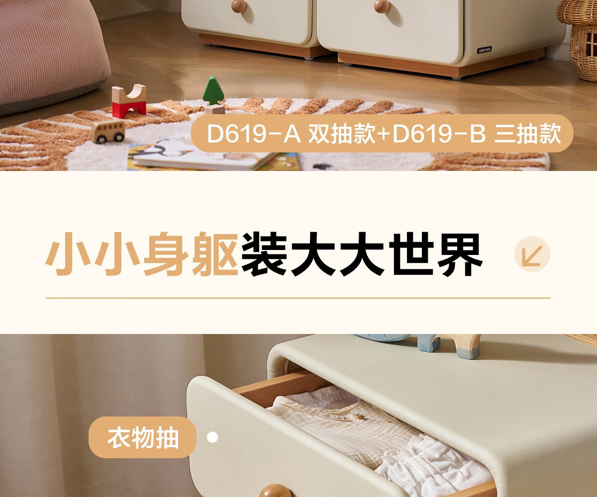 LINSY KIDS林氏家居奶油风床头柜儿童卧室储物柜床边小柜斗柜玩具柜子D619 【乳酪白】D619-A 双抽款床头柜