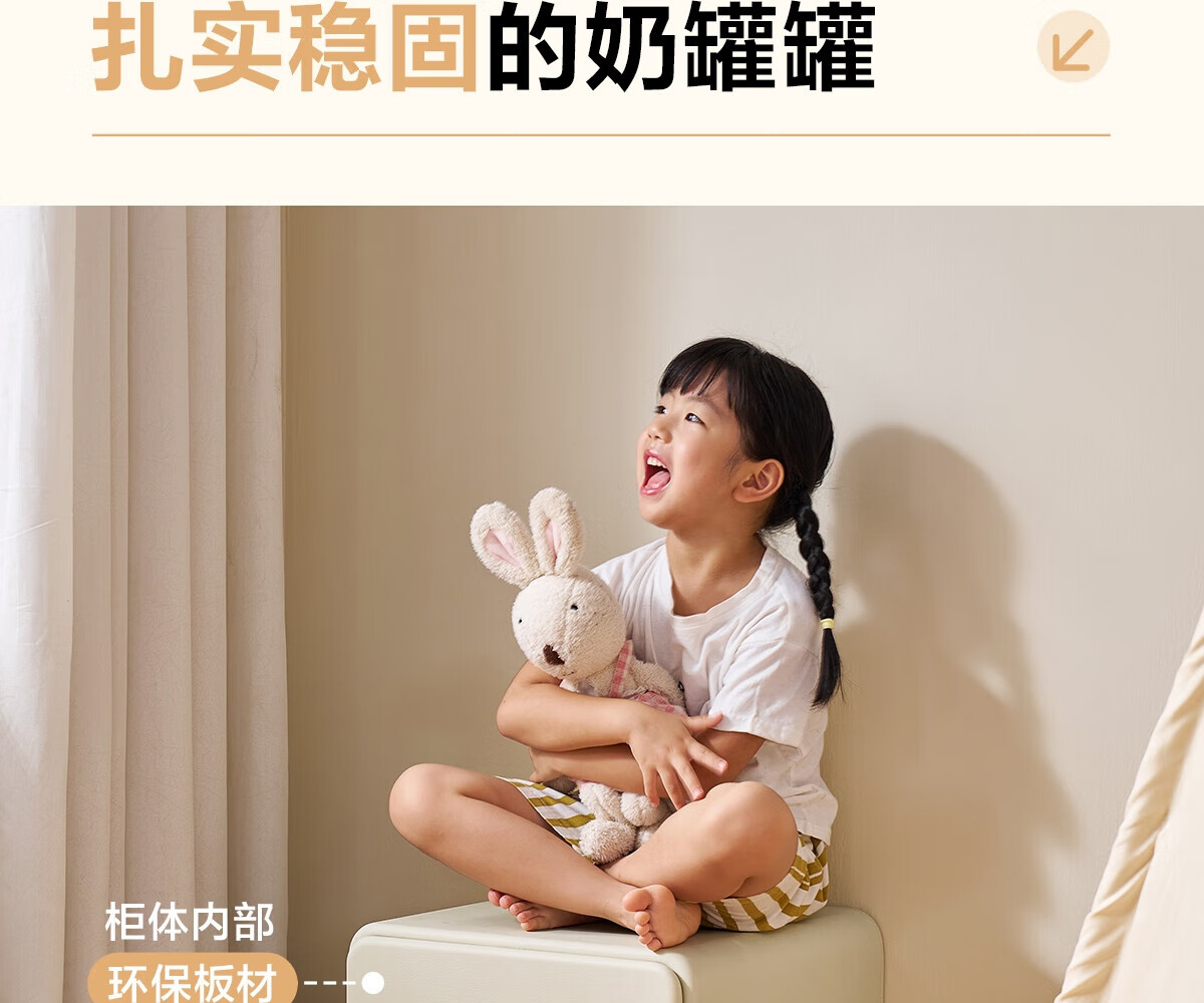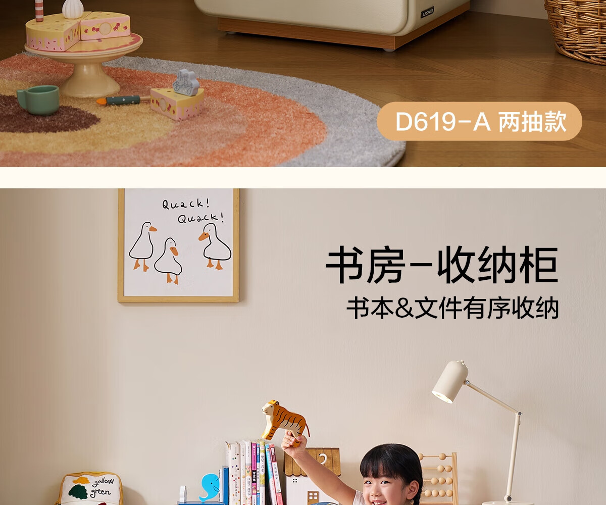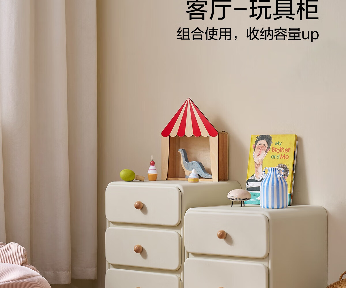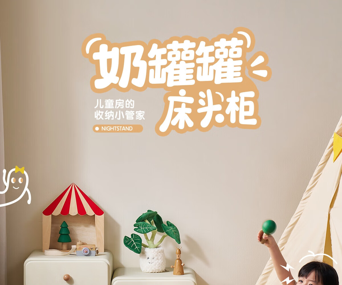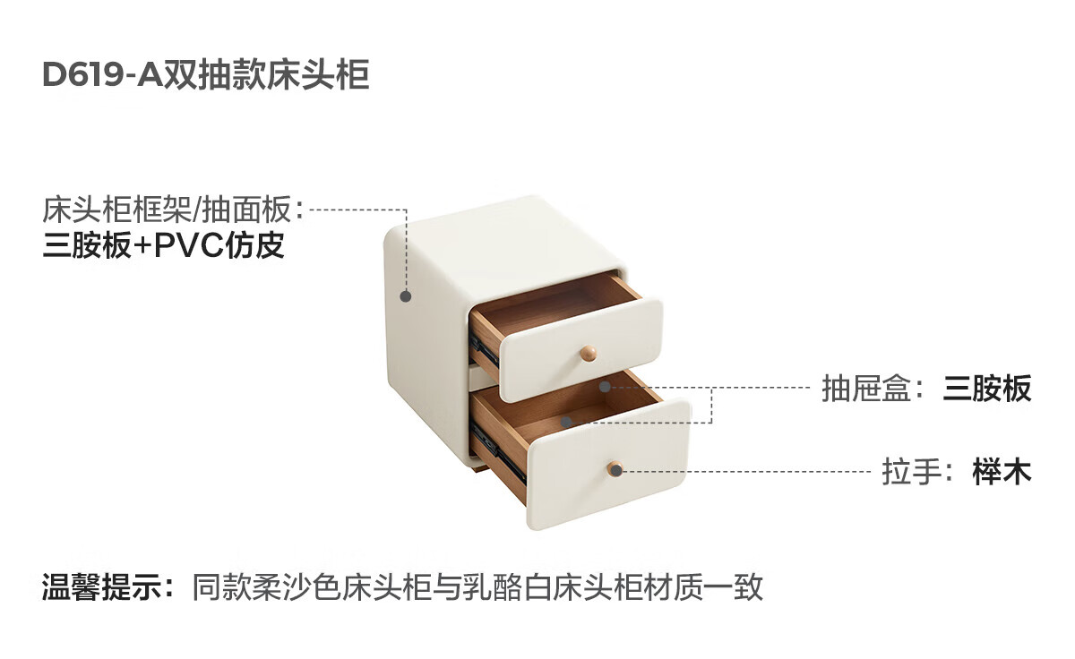 LINSY KIDS林氏家居奶油风床头柜儿童卧室储物柜床边小柜斗柜玩具柜子D619 【乳酪白】D619-A 双抽款床头柜
