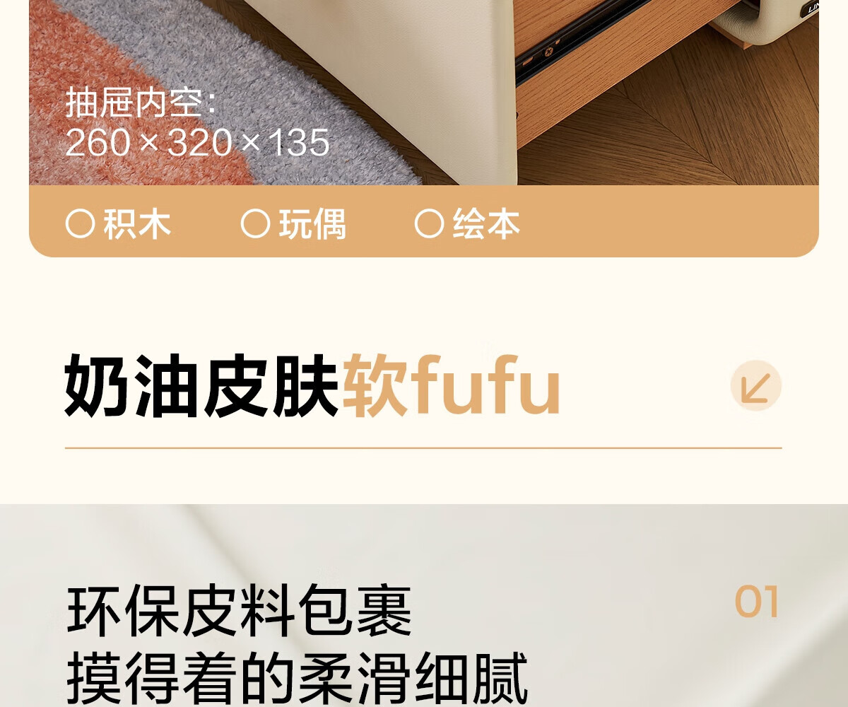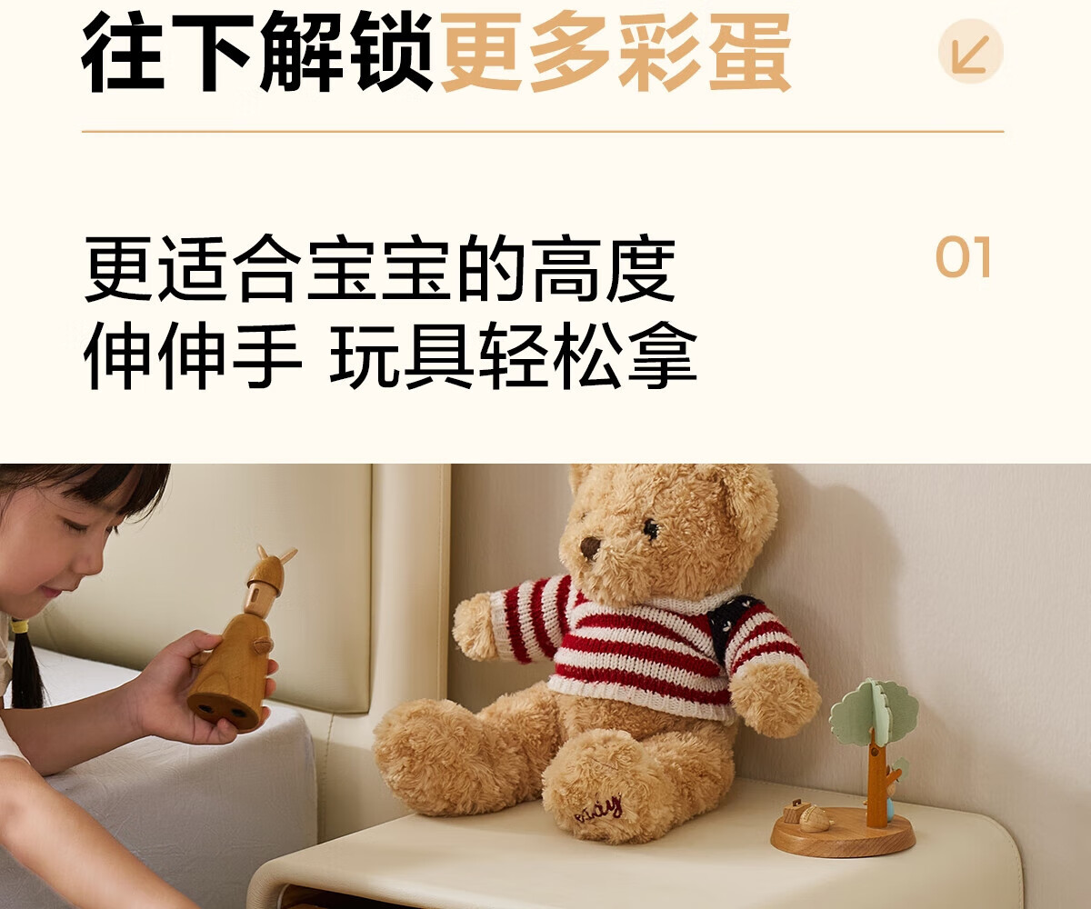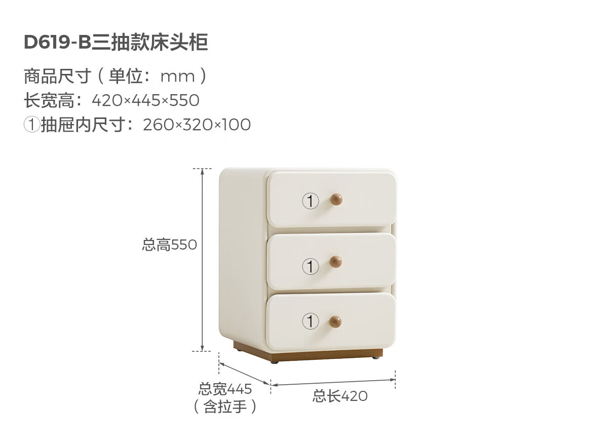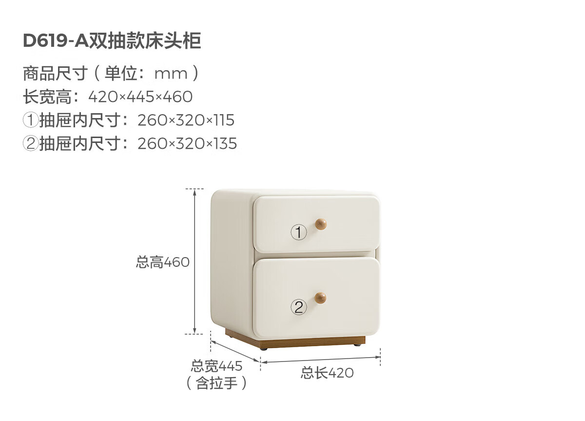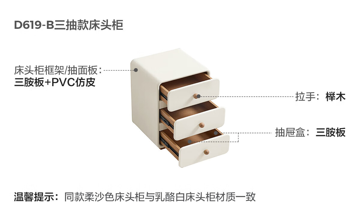 LINSY KIDS林氏家居奶油风床头柜儿童卧室储物柜床边小柜斗柜玩具柜子D619 【乳酪白】D619-A 双抽款床头柜