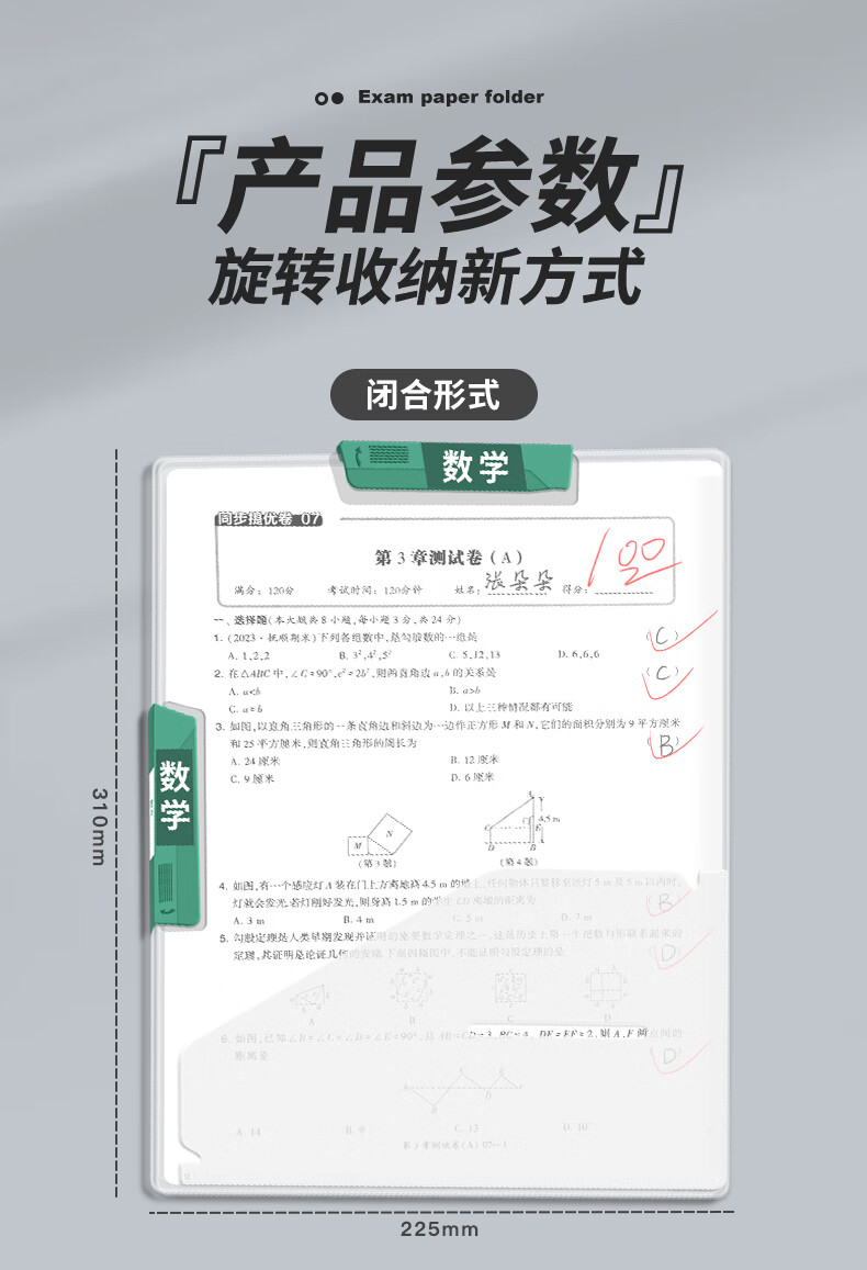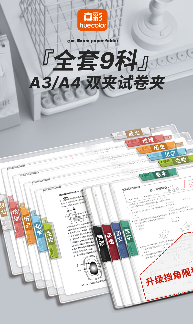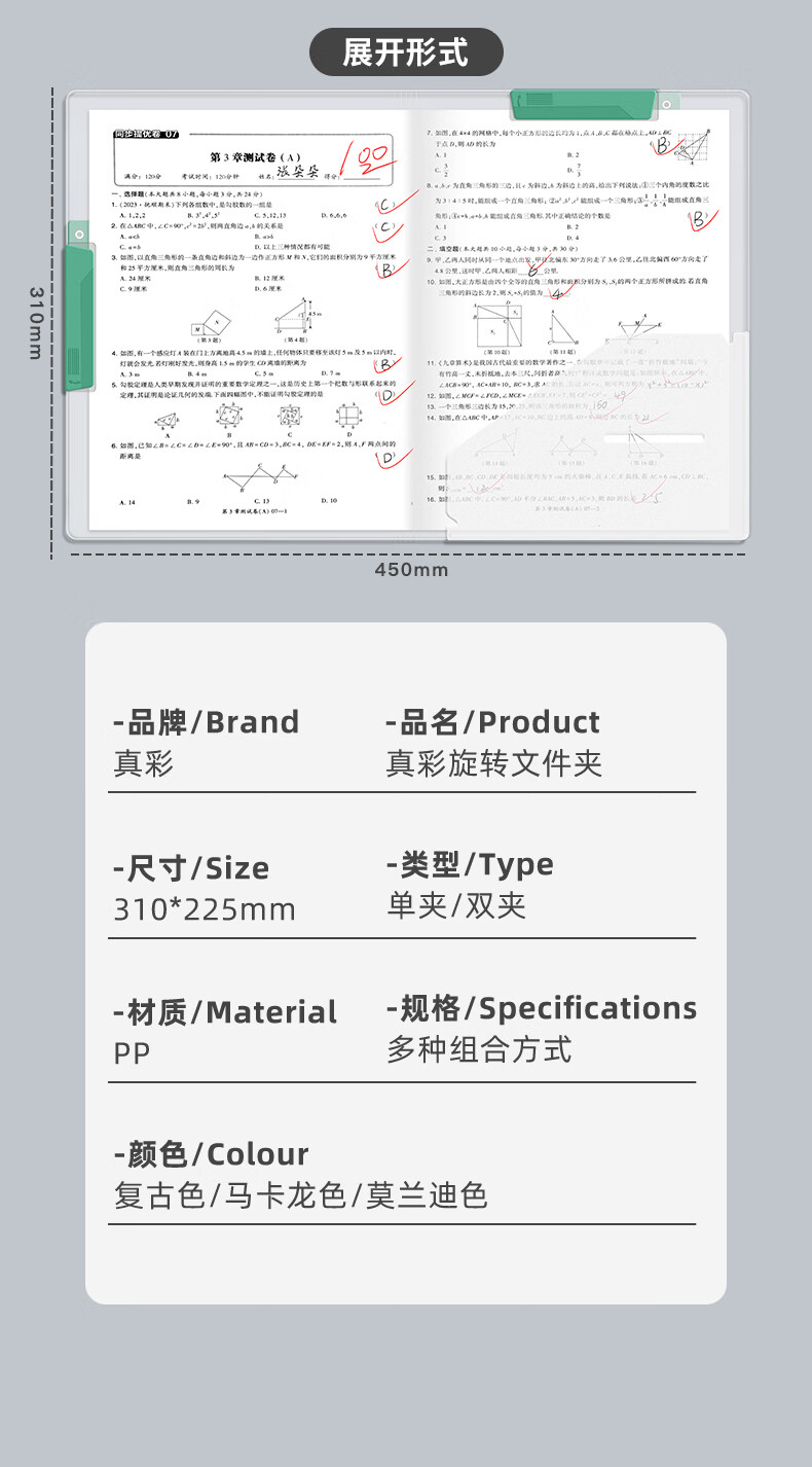 真彩(TRUECOLOR)A4旋转拉杆夹文件夹初中生试卷收纳袋透明插页抽杆夹资料夹小学生专用活页夹大容量整理神器 双夹旋转款【自定义科目】马卡龙/10个装