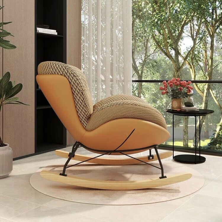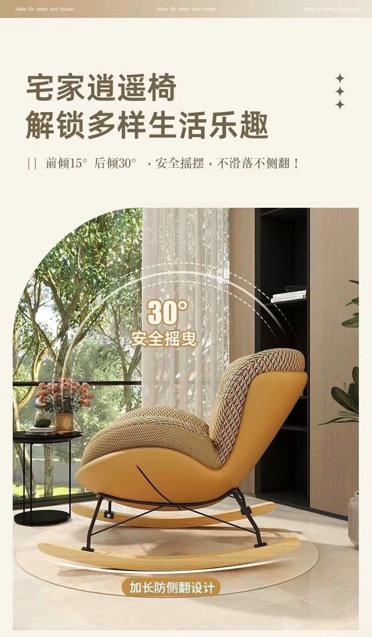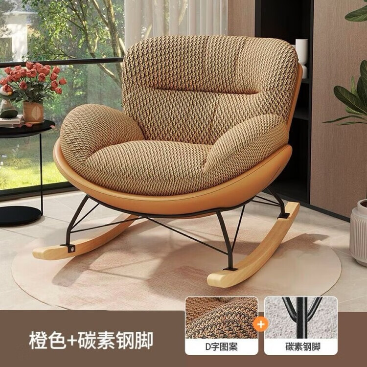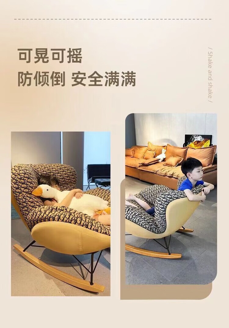 欣慕雅新款懒人沙发摇摇躺椅舒适轻奢单人休闲企鹅摇椅蝴蝶摇摇椅 【质量保障】咖色底座+白色绒布坐垫 加大款-蝴蝶椅(无踏款)