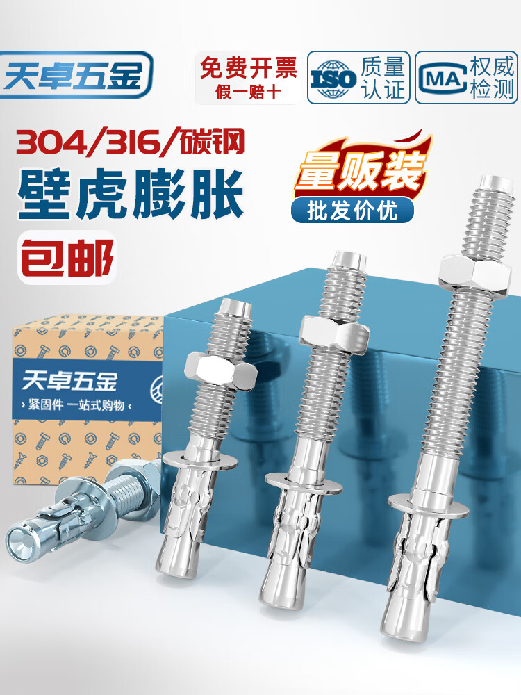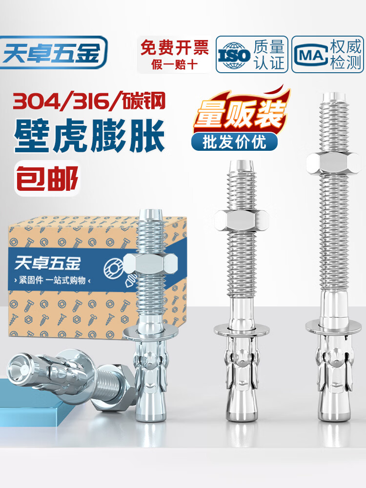 天卓五金国标304/316不锈钢车修壁虎膨胀螺丝螺栓拉爆电梯专用MM6M8M10M16 ---以下为【304不锈钢】---