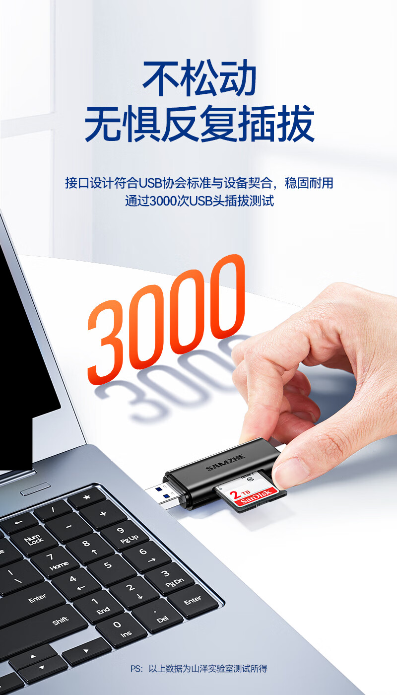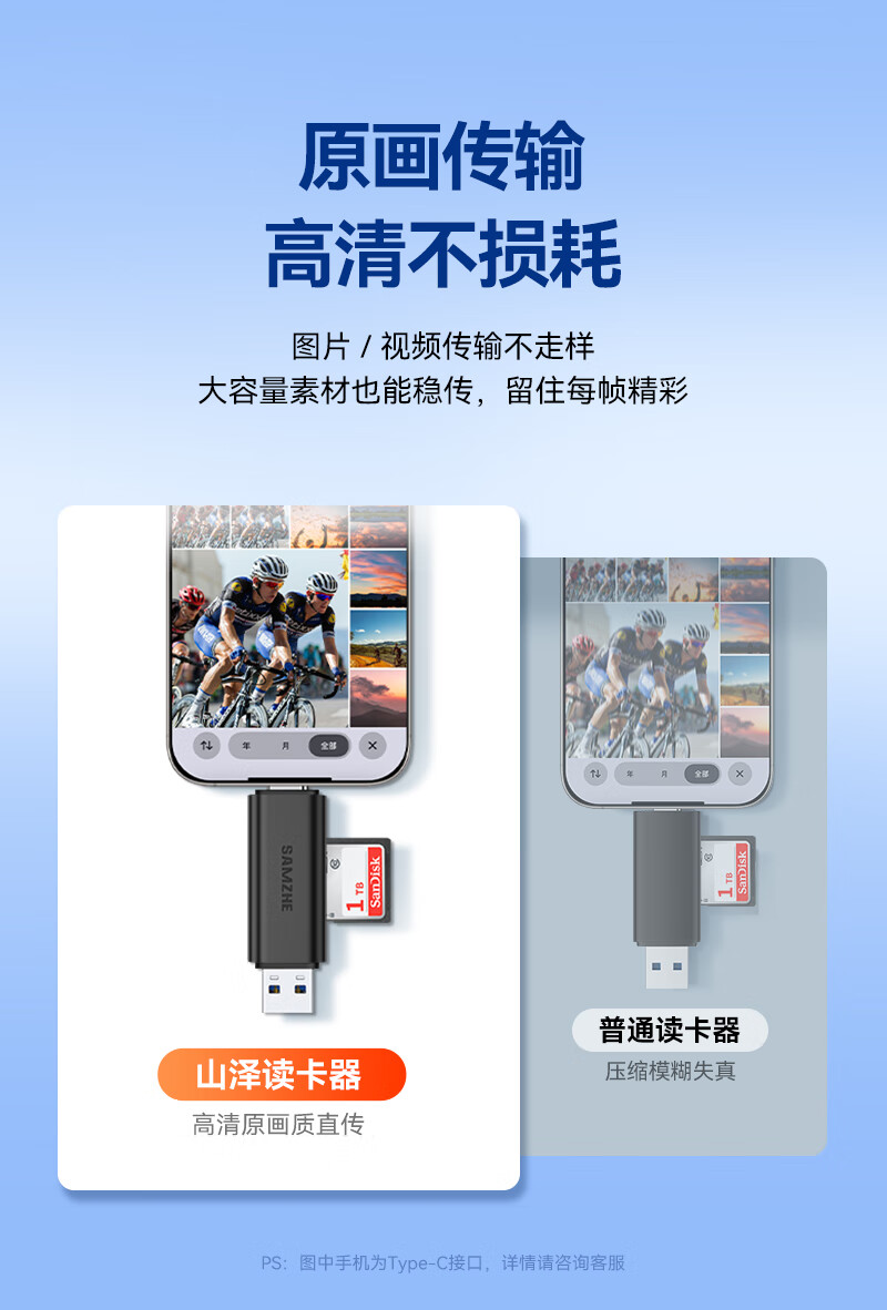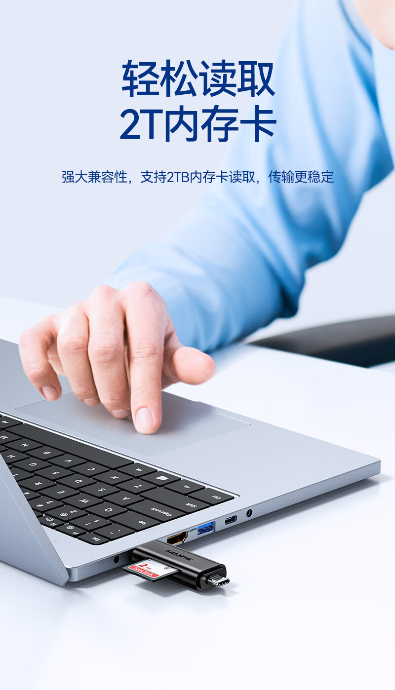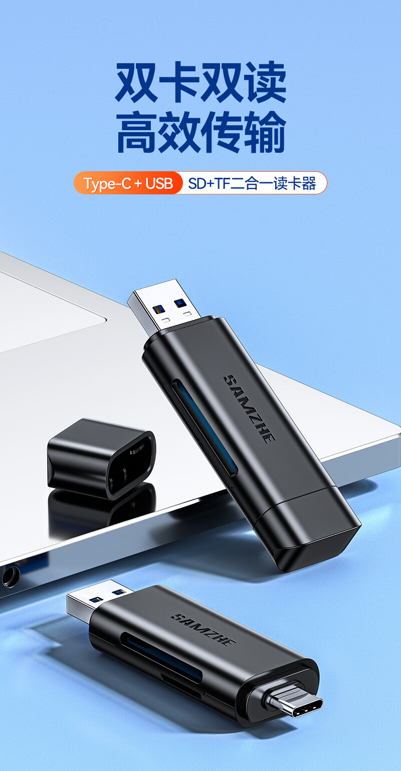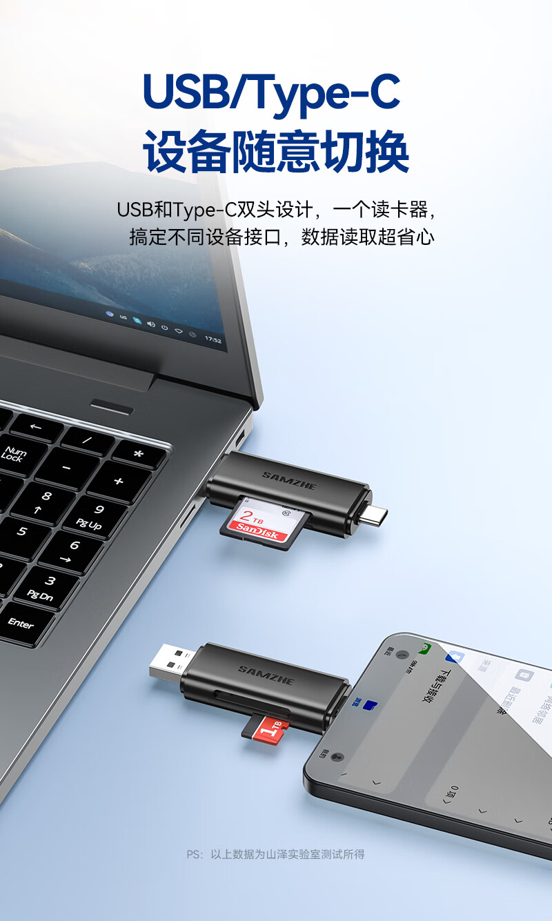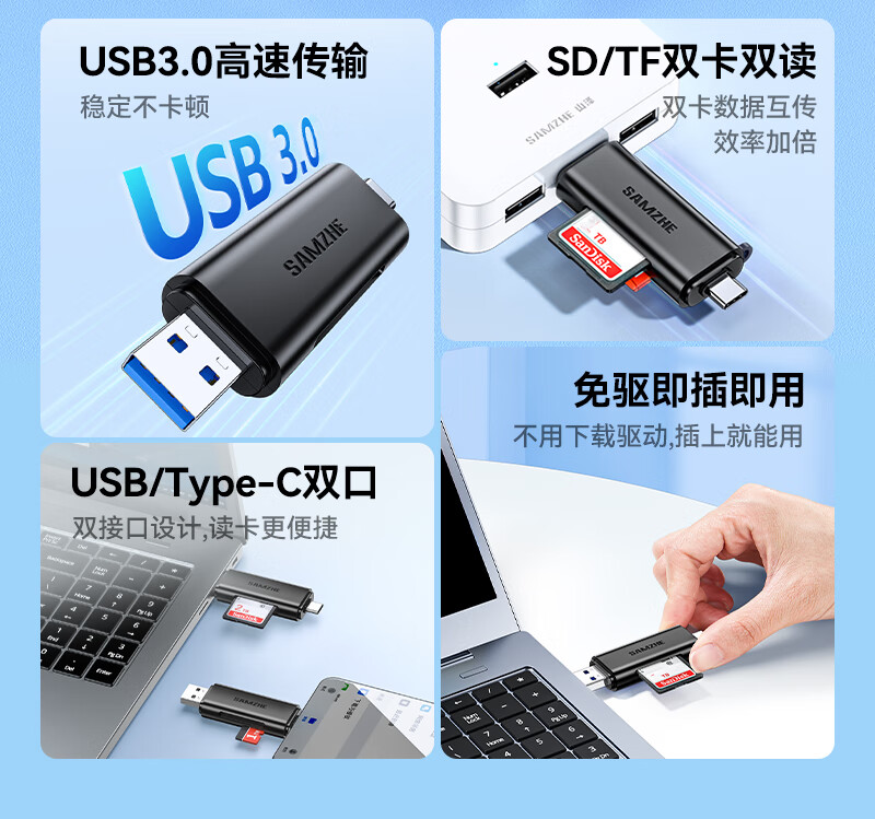 山泽USB3.0/Type-C高速读卡器SD/TF多功能合一 适用手机/苹果17/16/15单反相机无人机ccd监控储存卡