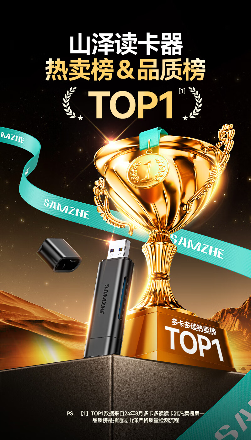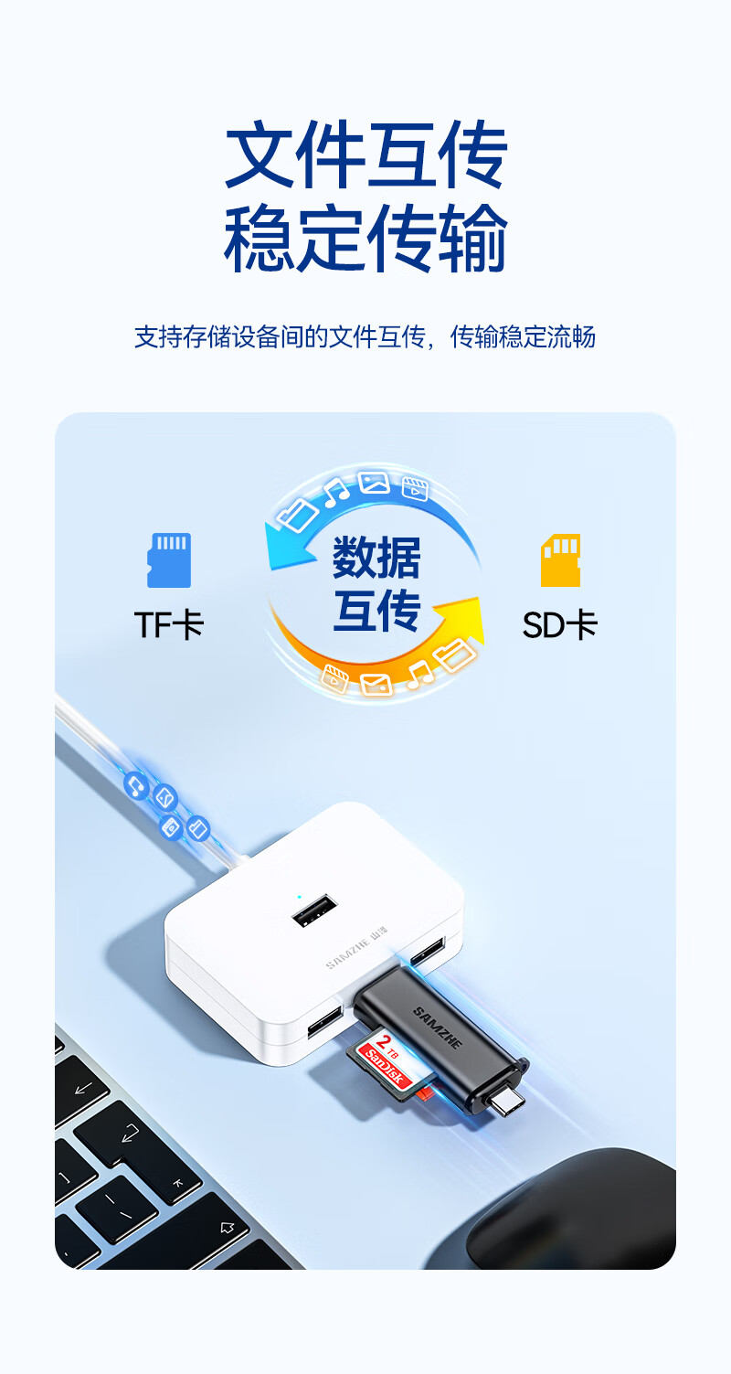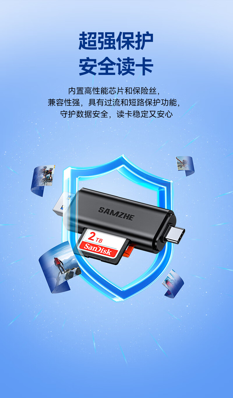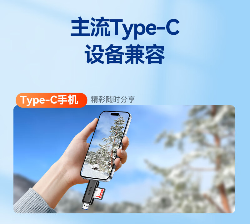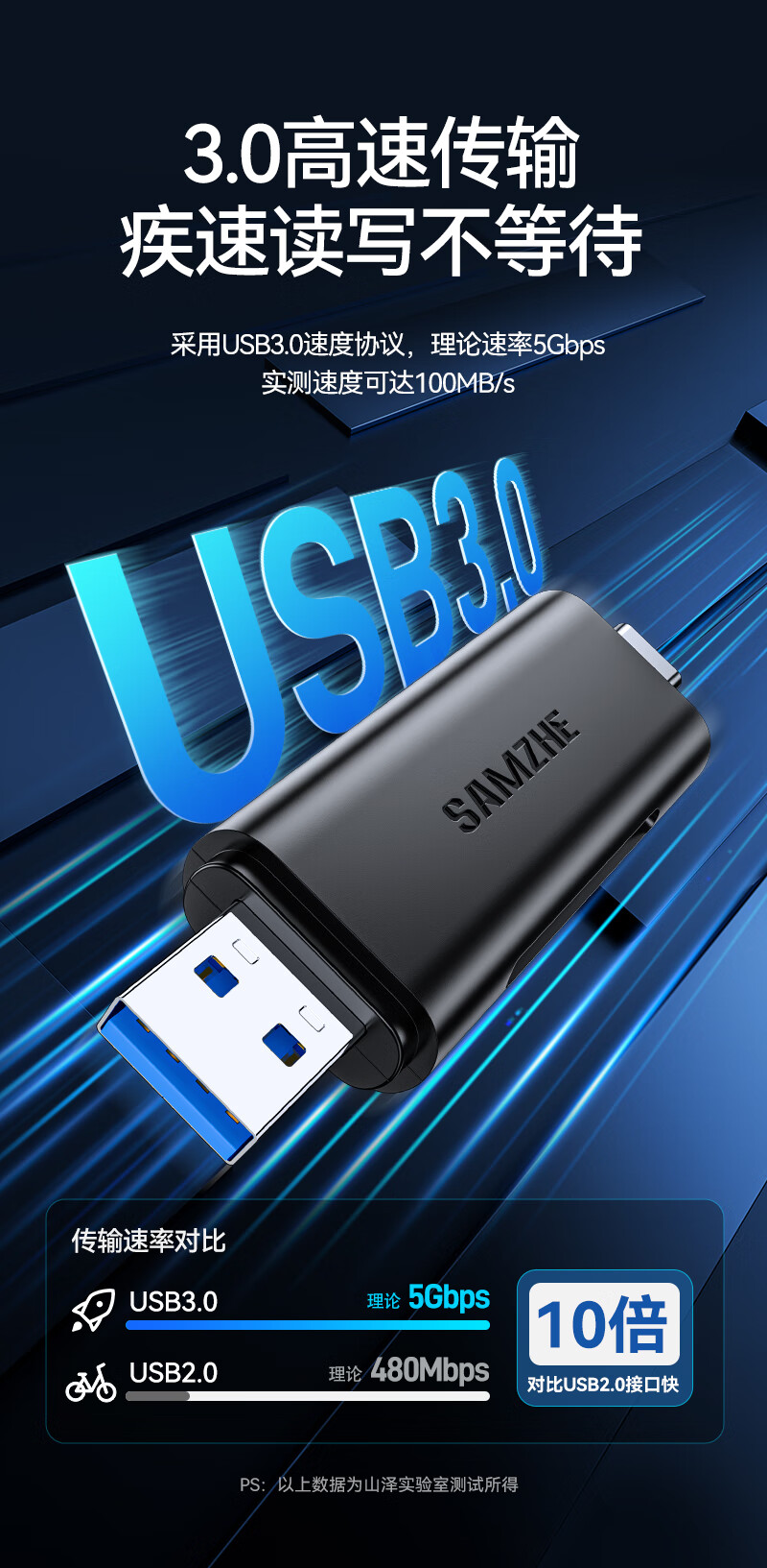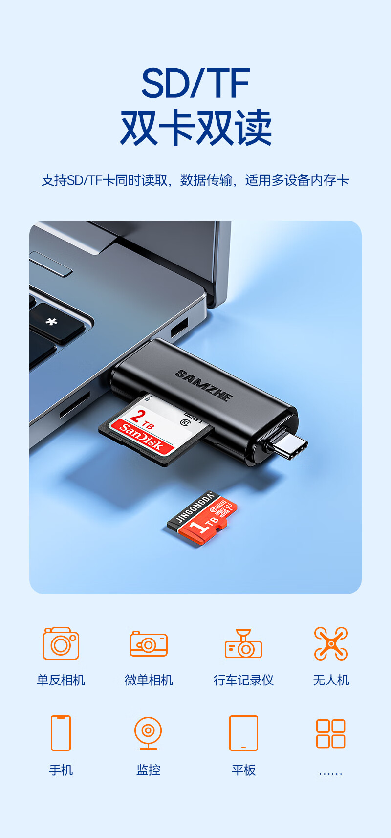 山泽USB3.0/Type-C高速读卡器SD/TF多功能合一 适用手机/苹果17/16/15单反相机无人机ccd监控储存卡