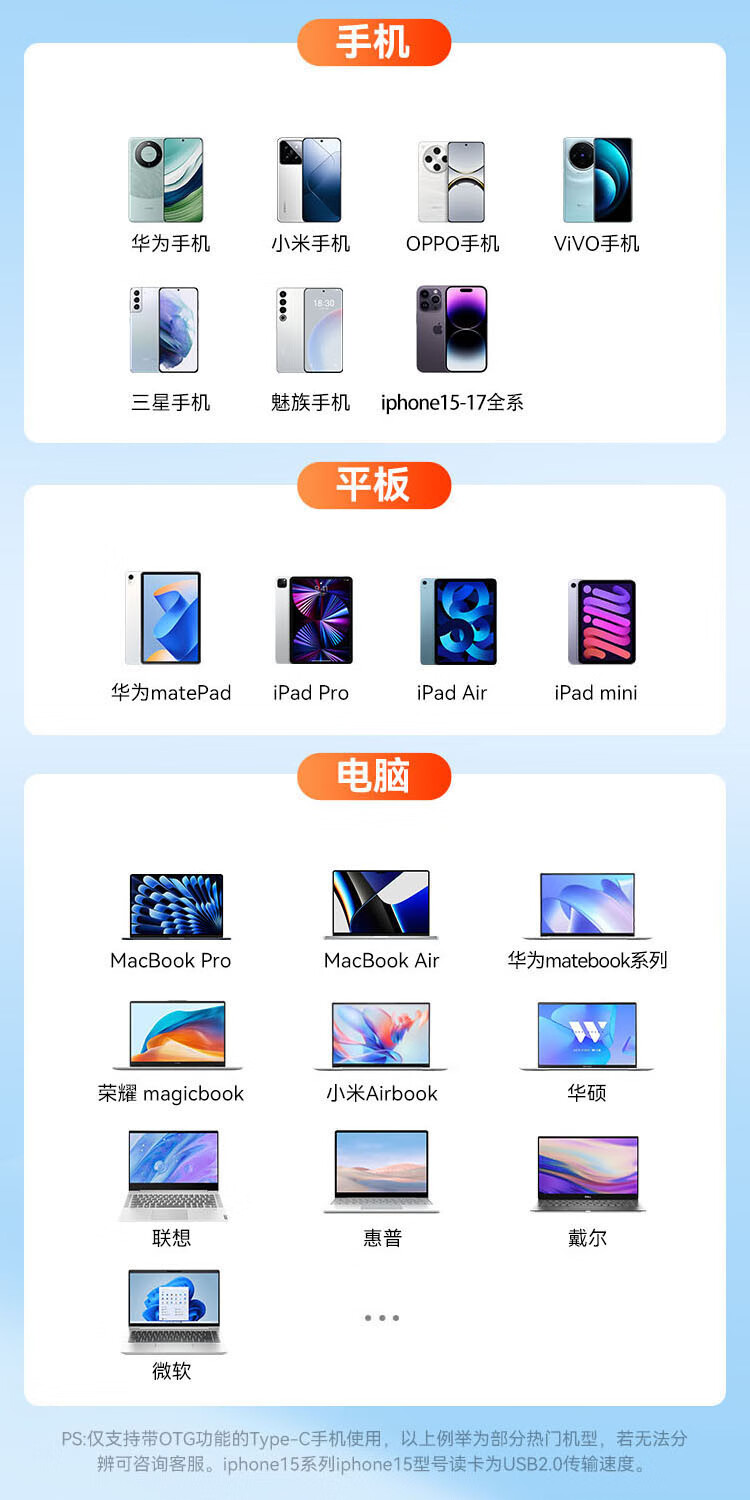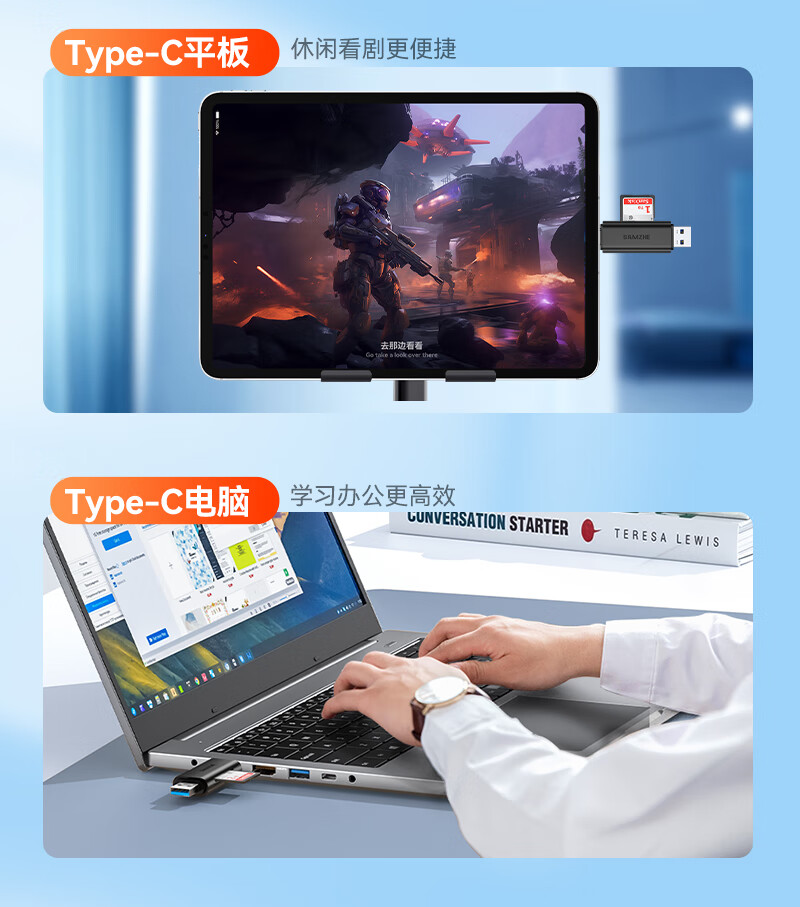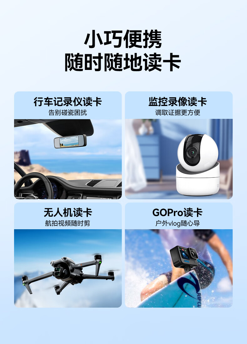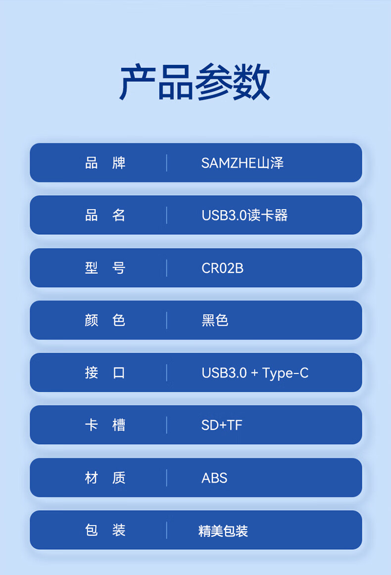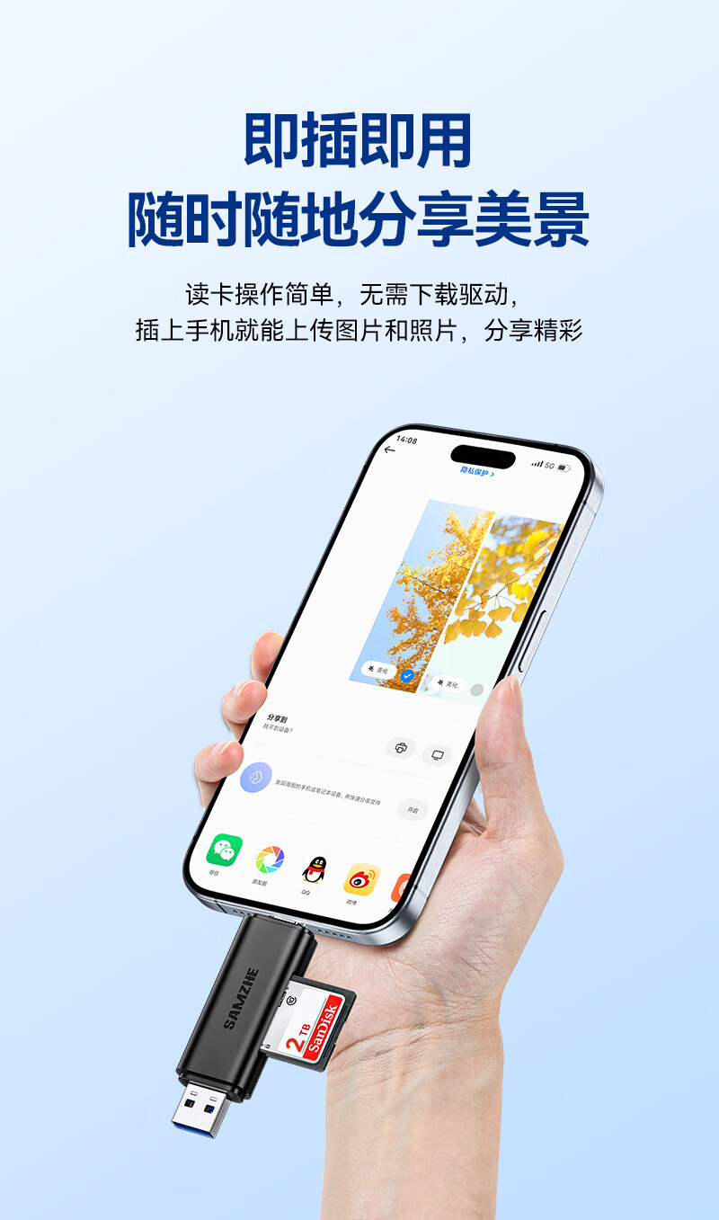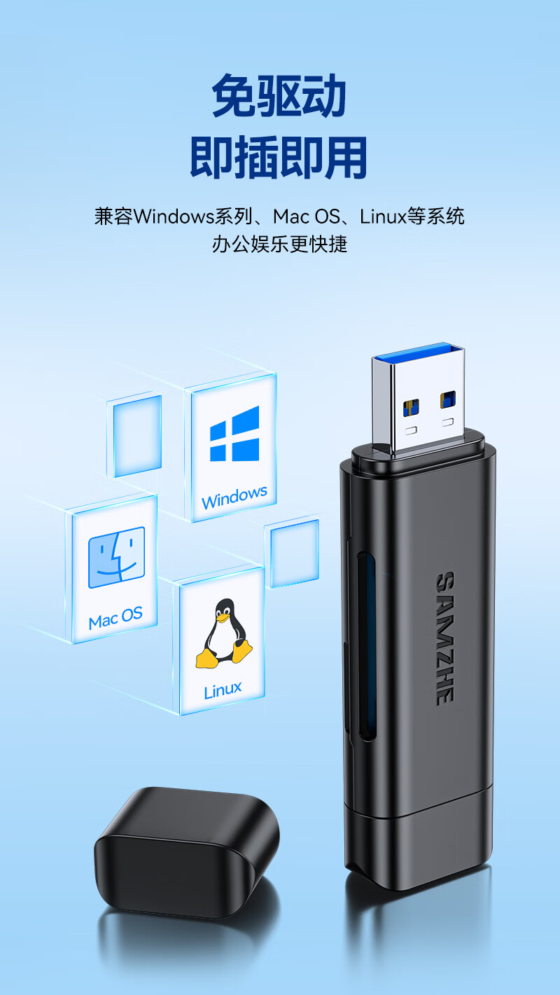 山泽USB3.0/Type-C高速读卡器SD/TF多功能合一 适用手机/苹果17/16/15单反相机无人机ccd监控储存卡