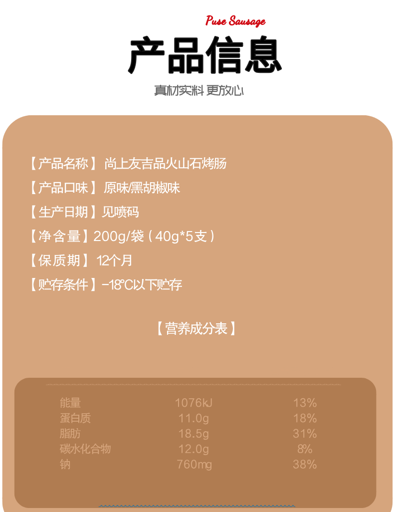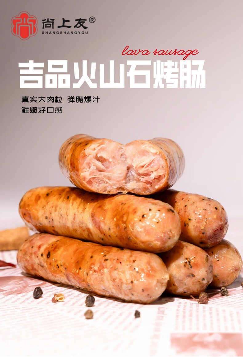 尚上友美味火山石正宗地道烤肠肉肠脆皮原味香肠热狗烧烤风味 【3袋】火山石烤肠黑胡椒40g*5支