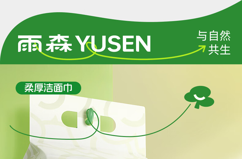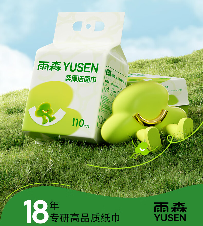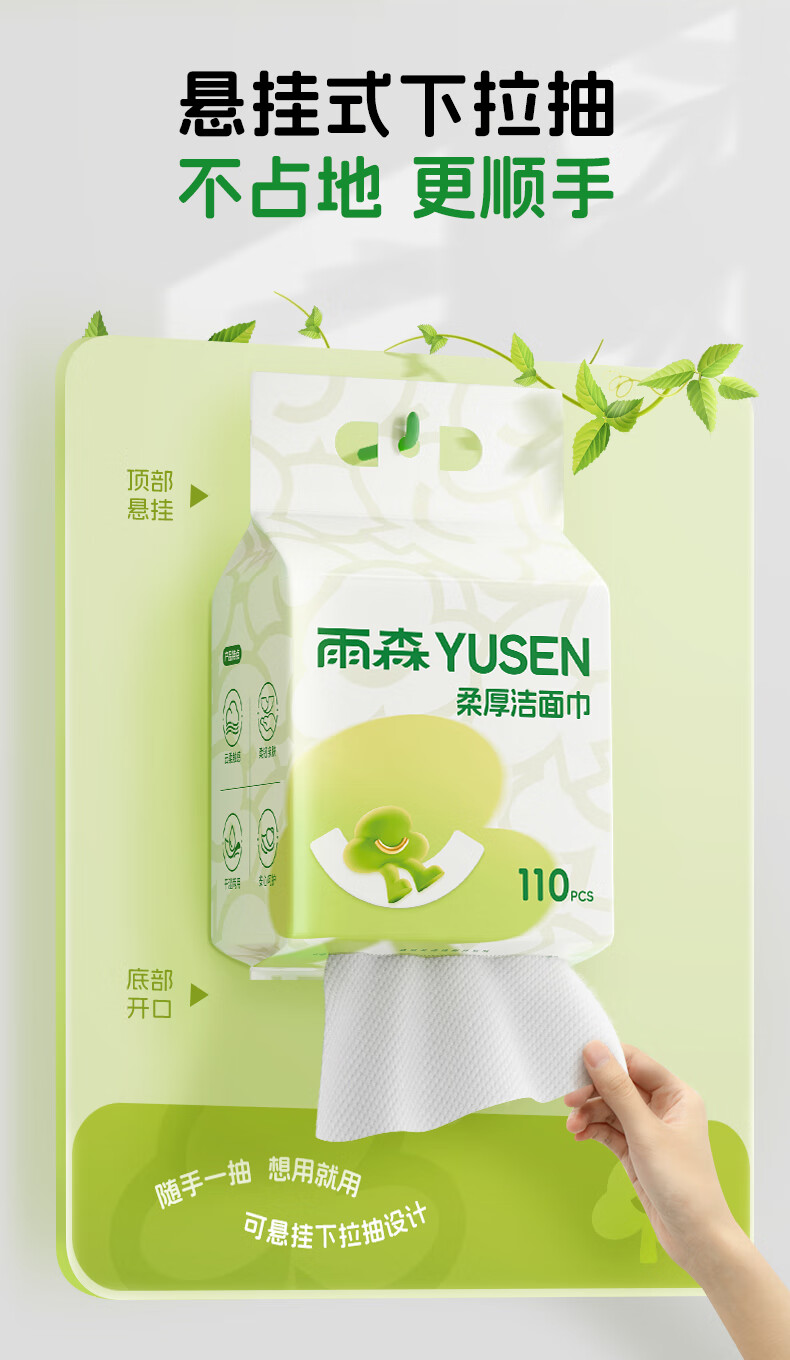 雨森(YUSEN)柔厚洗脸巾提挂式/悬挂式洗脸巾洁面巾110抽/提绵柔巾干湿两用 110抽*2提