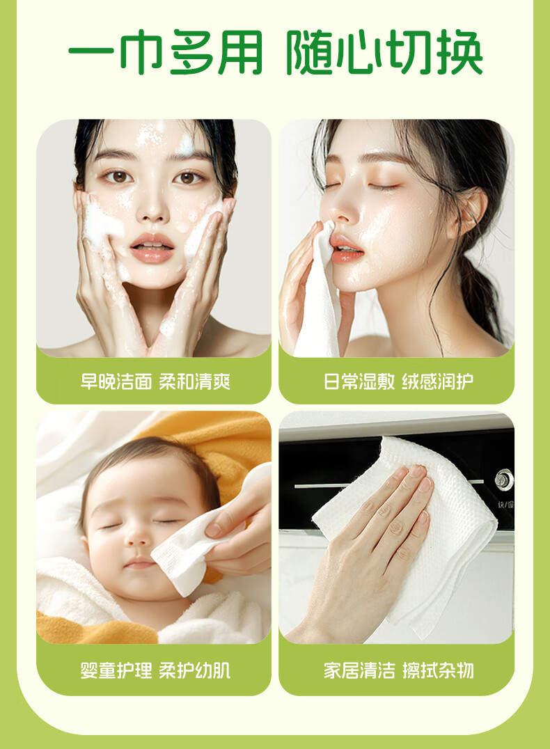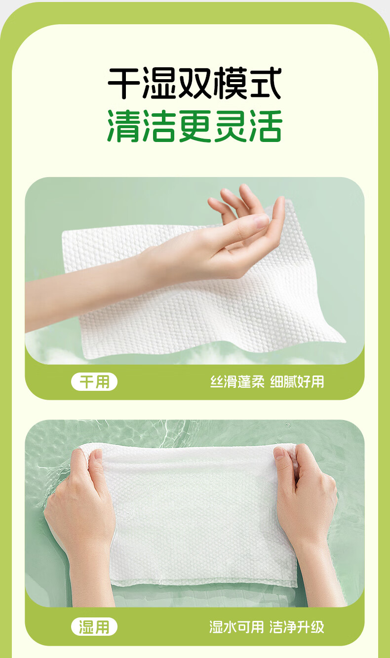 橘子柚子一次性洗脸巾绵柔巾洁面巾抽取式干湿两用珍珠纹擦脸巾 100抽2袋 丨壁挂式