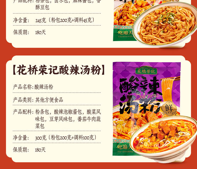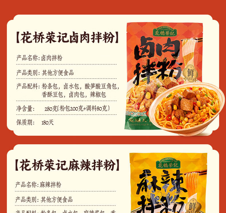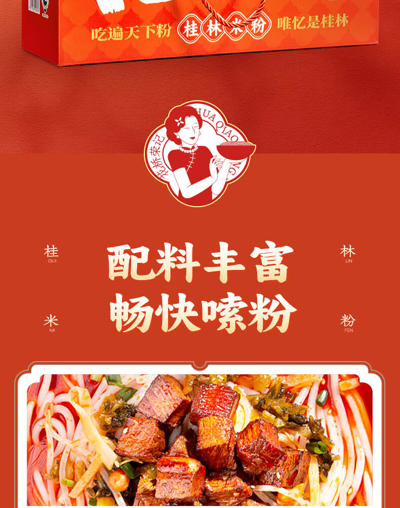 花桥荣记广西正宗桂林米粉伴手礼免煮冲泡特产六袋礼盒装送礼鲜湿米粉米线 1箱装(卤肉拌粉280g*6袋)