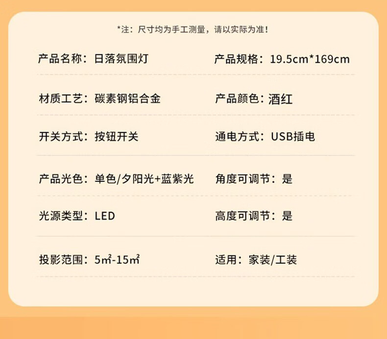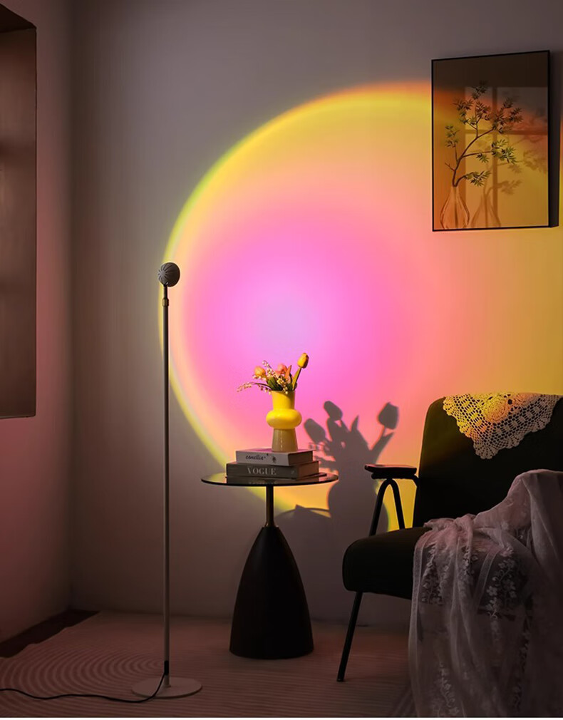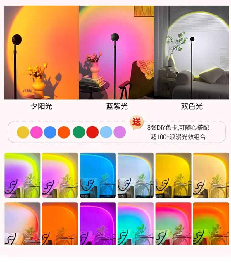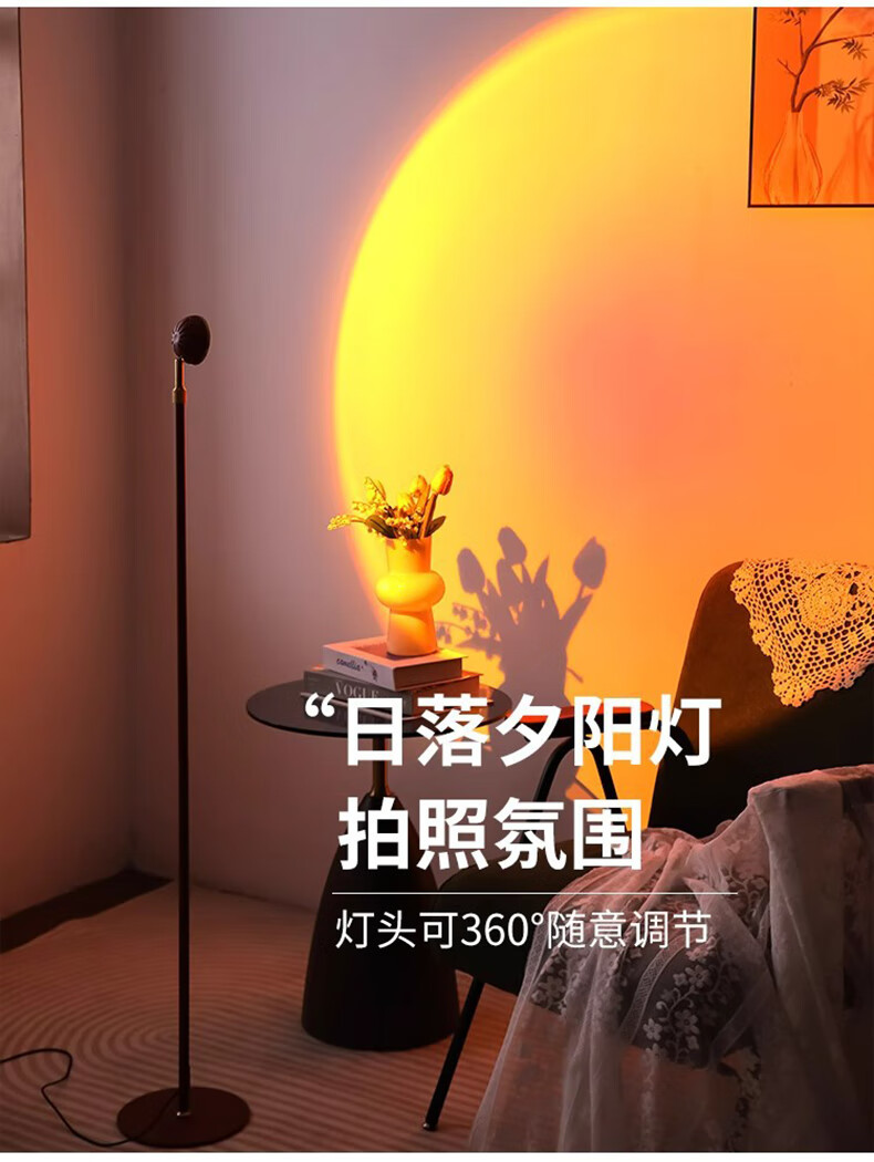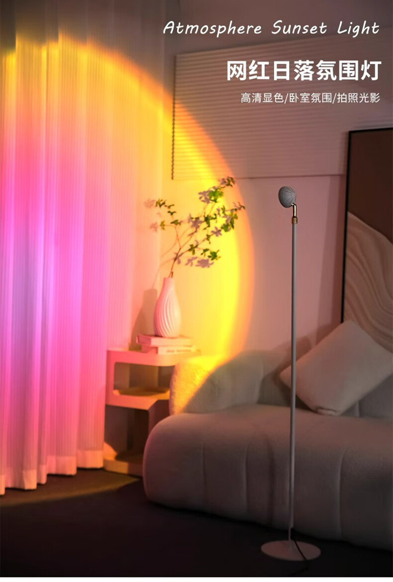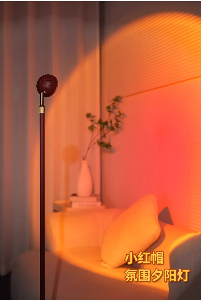 幽麦 夕阳落日灯 小红帽现代简约落地灯客厅轻奢氛围投影灯卧室低压 一灯10色- 4片膜