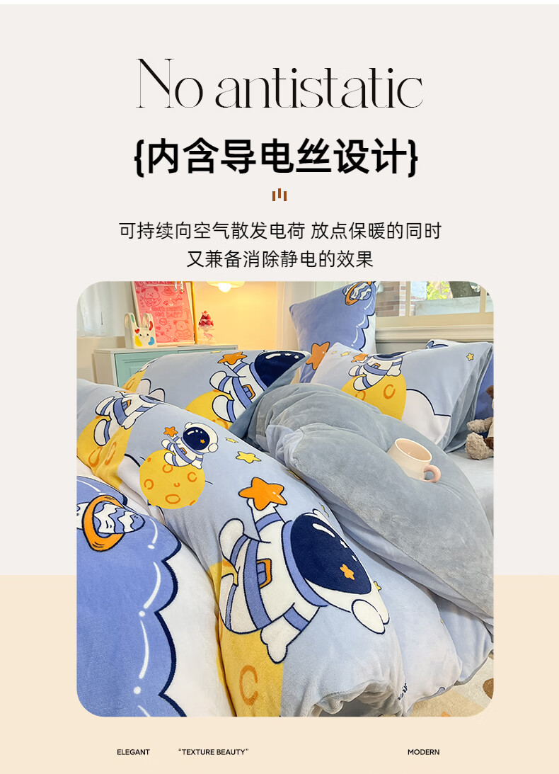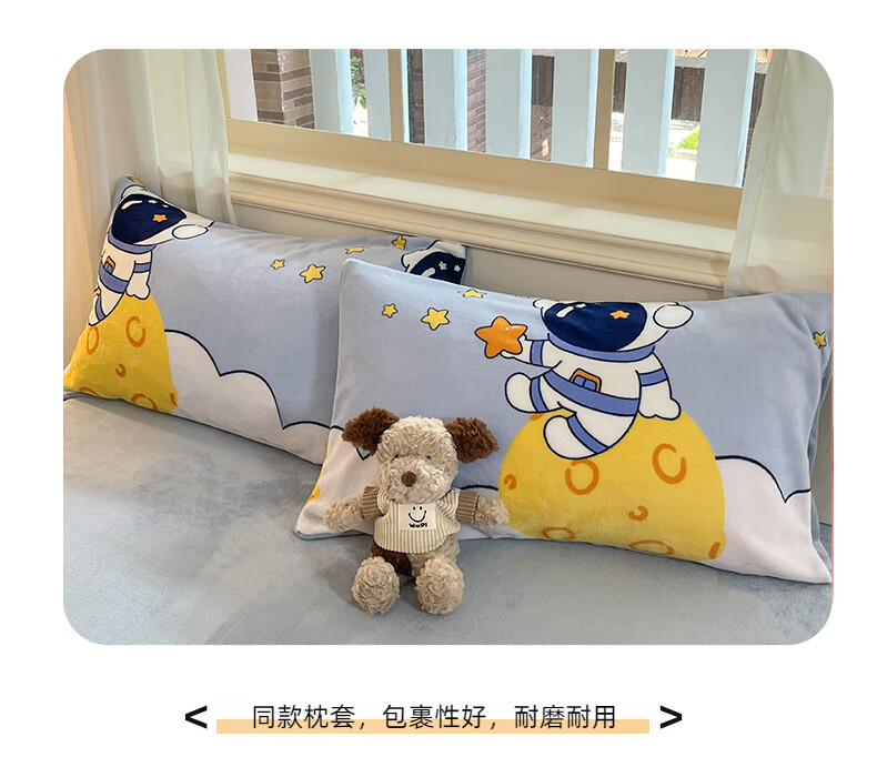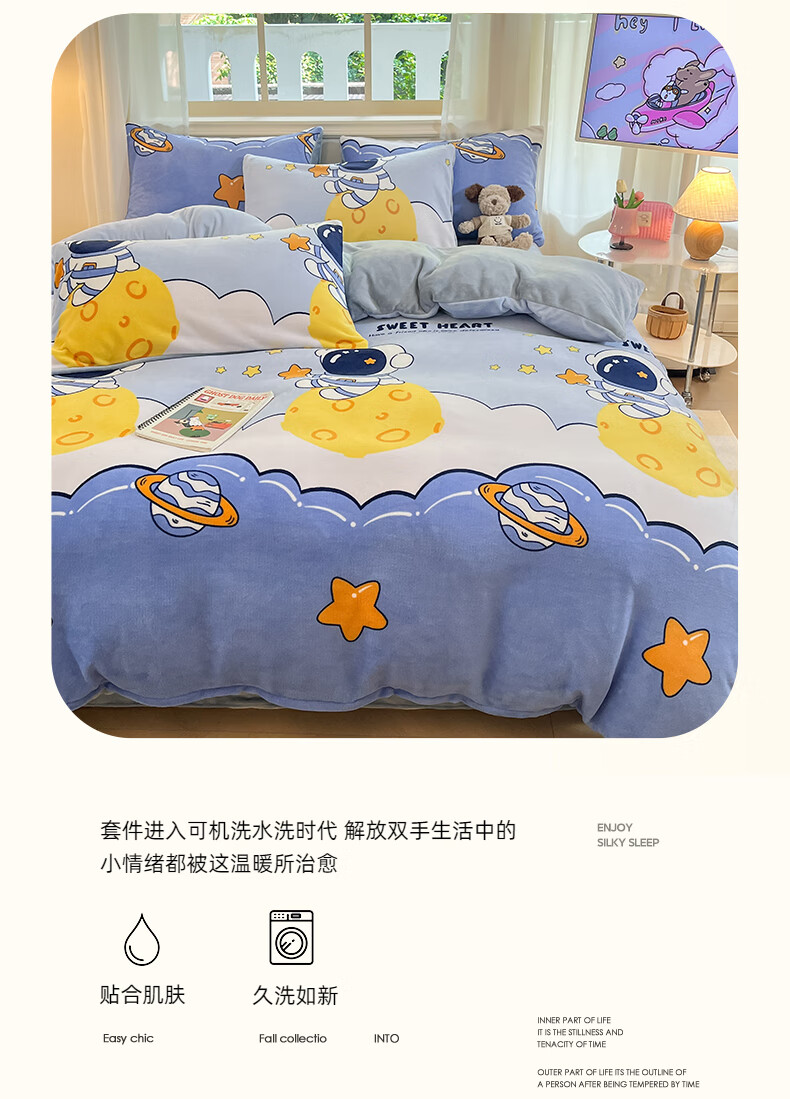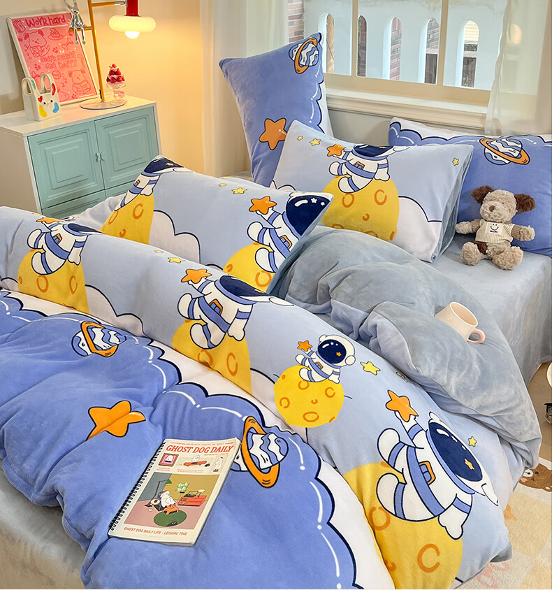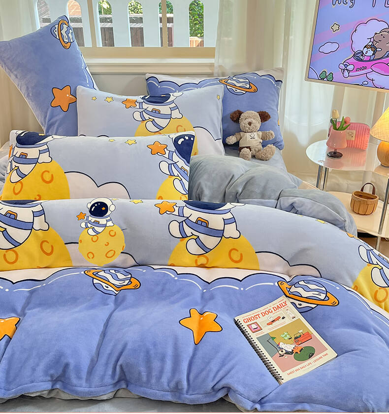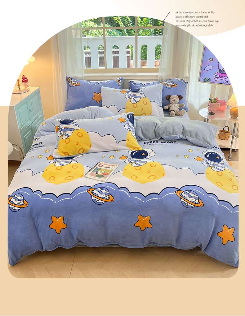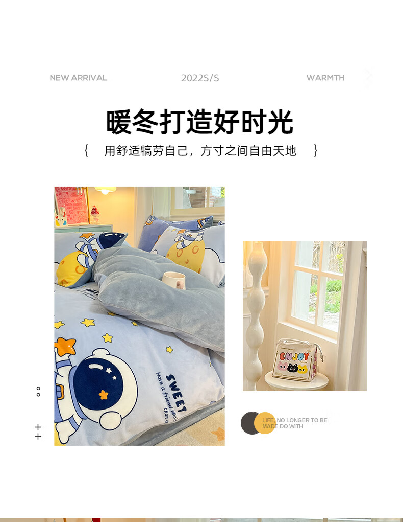 多兰诗(Duolanshi)牛奶绒四件套卡通双面加绒学生宿舍家用床单被套床上用品套件 可爱恐龙 1.8米 床单款 被套200*230cm 四件套