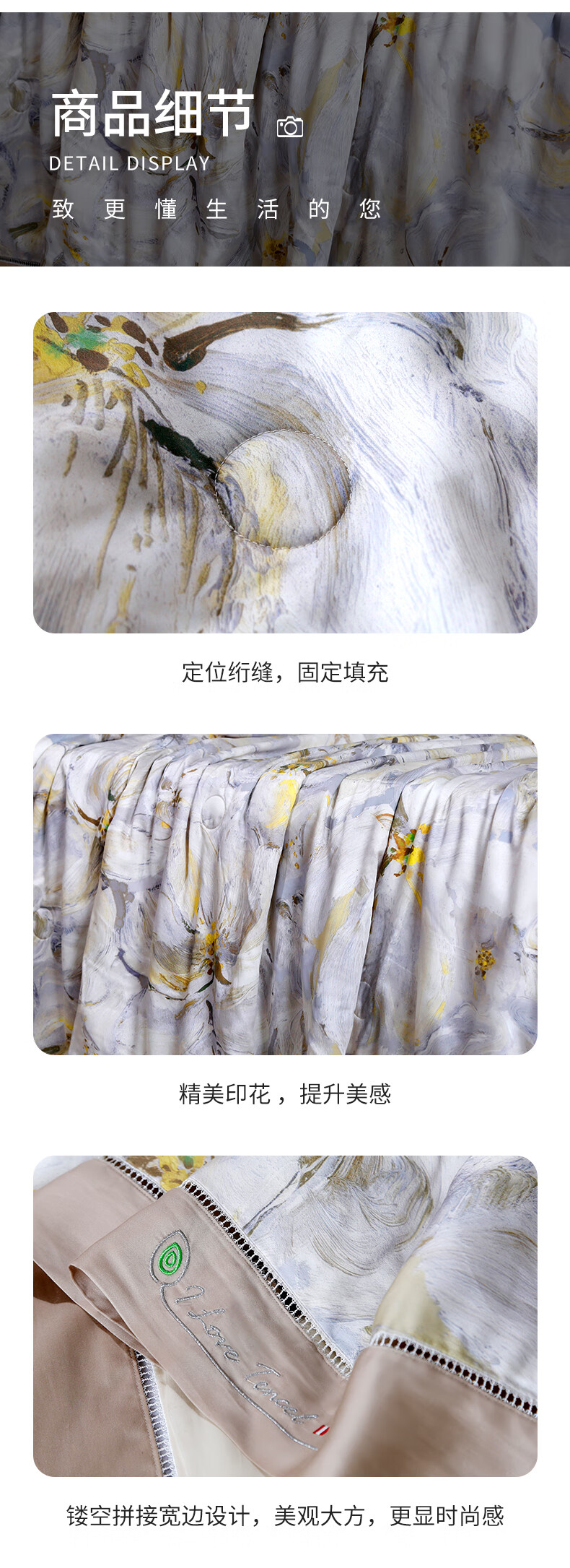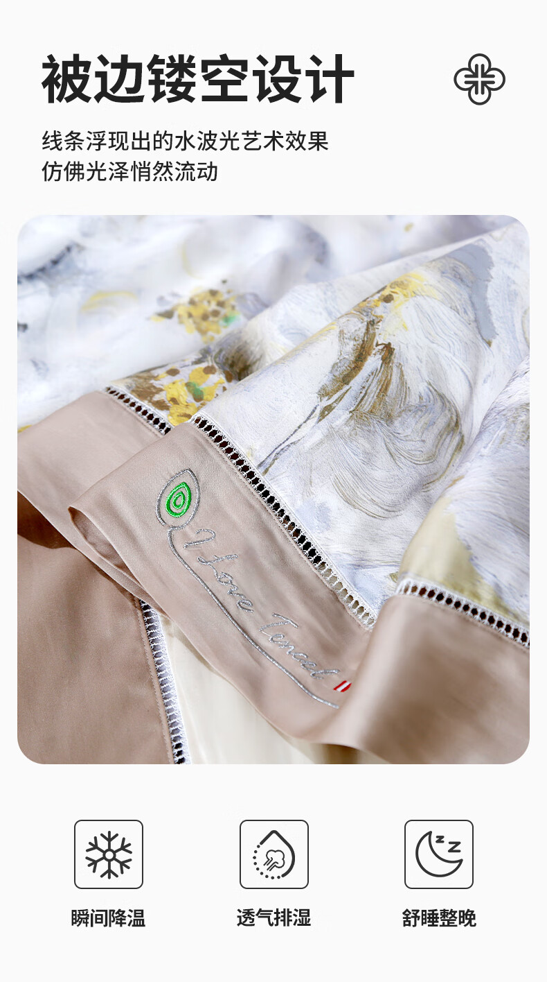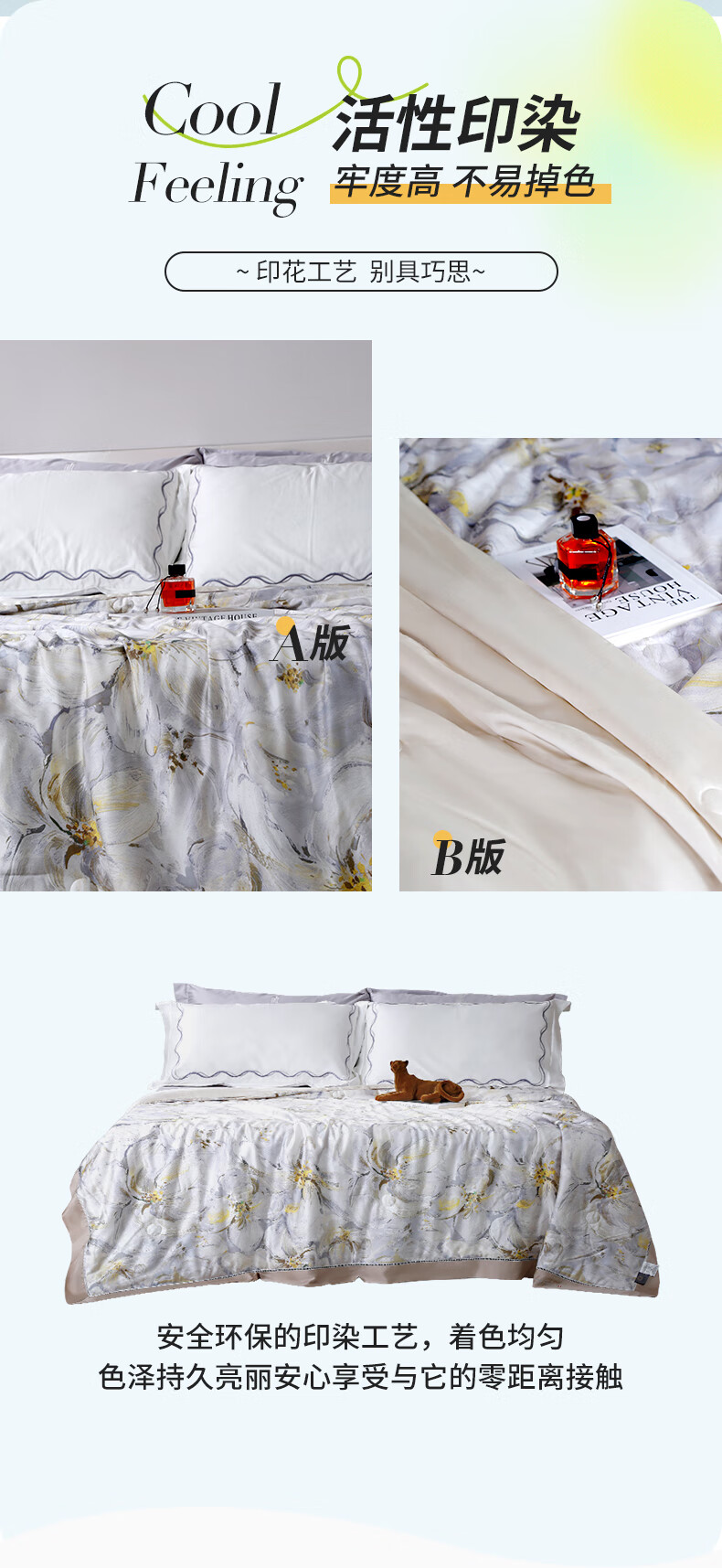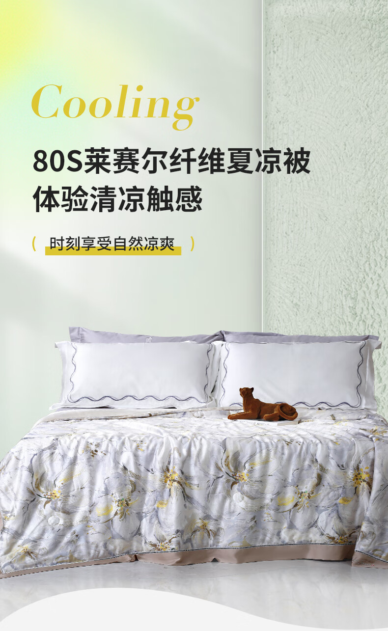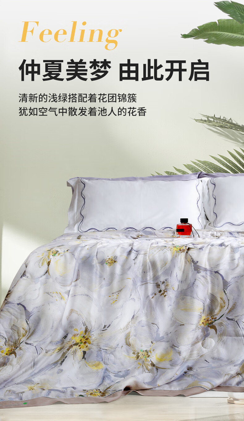 黛富妮兰精天丝空调被抑菌桑蚕丝棉可水洗机洗印花夏凉被凉感被双人被 觅.花榭天丝蚕丝绵夏被 双人被-220*240cm