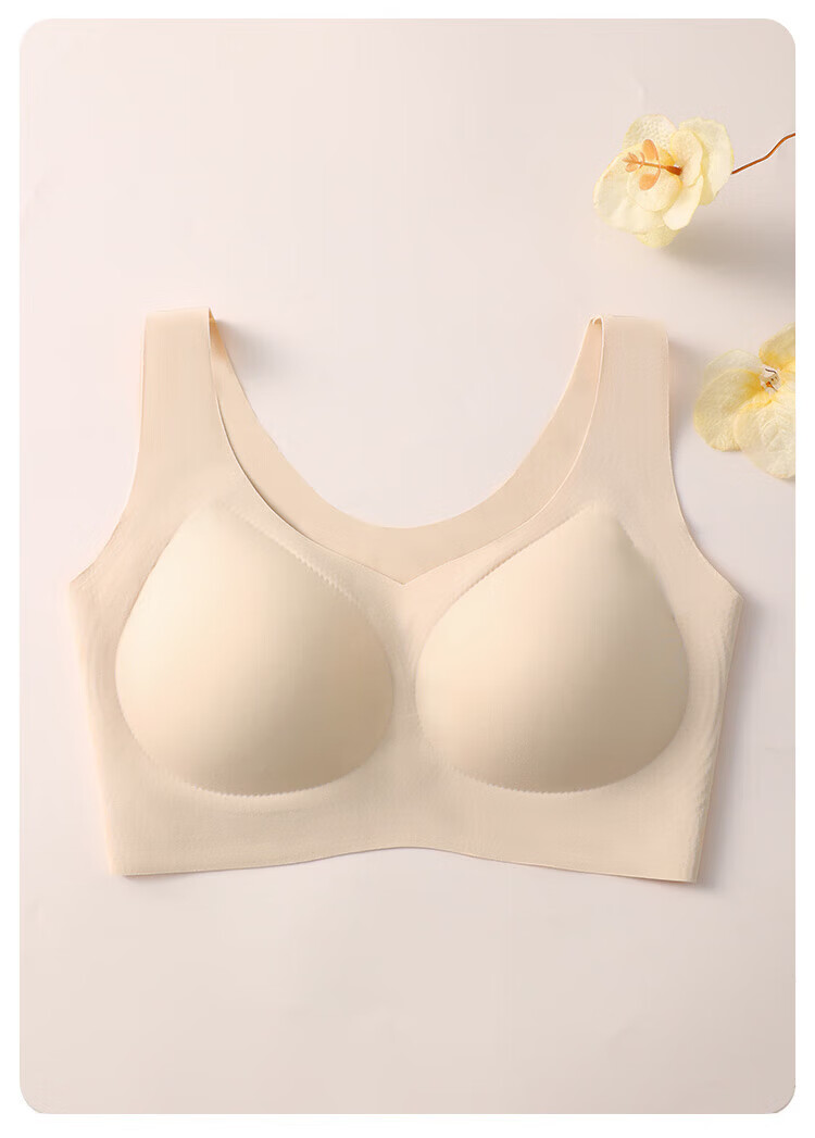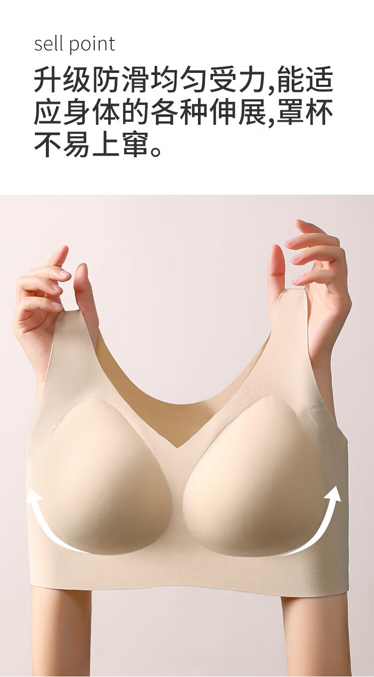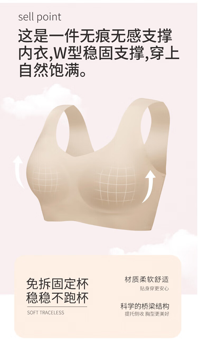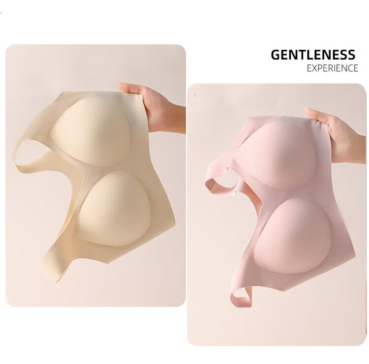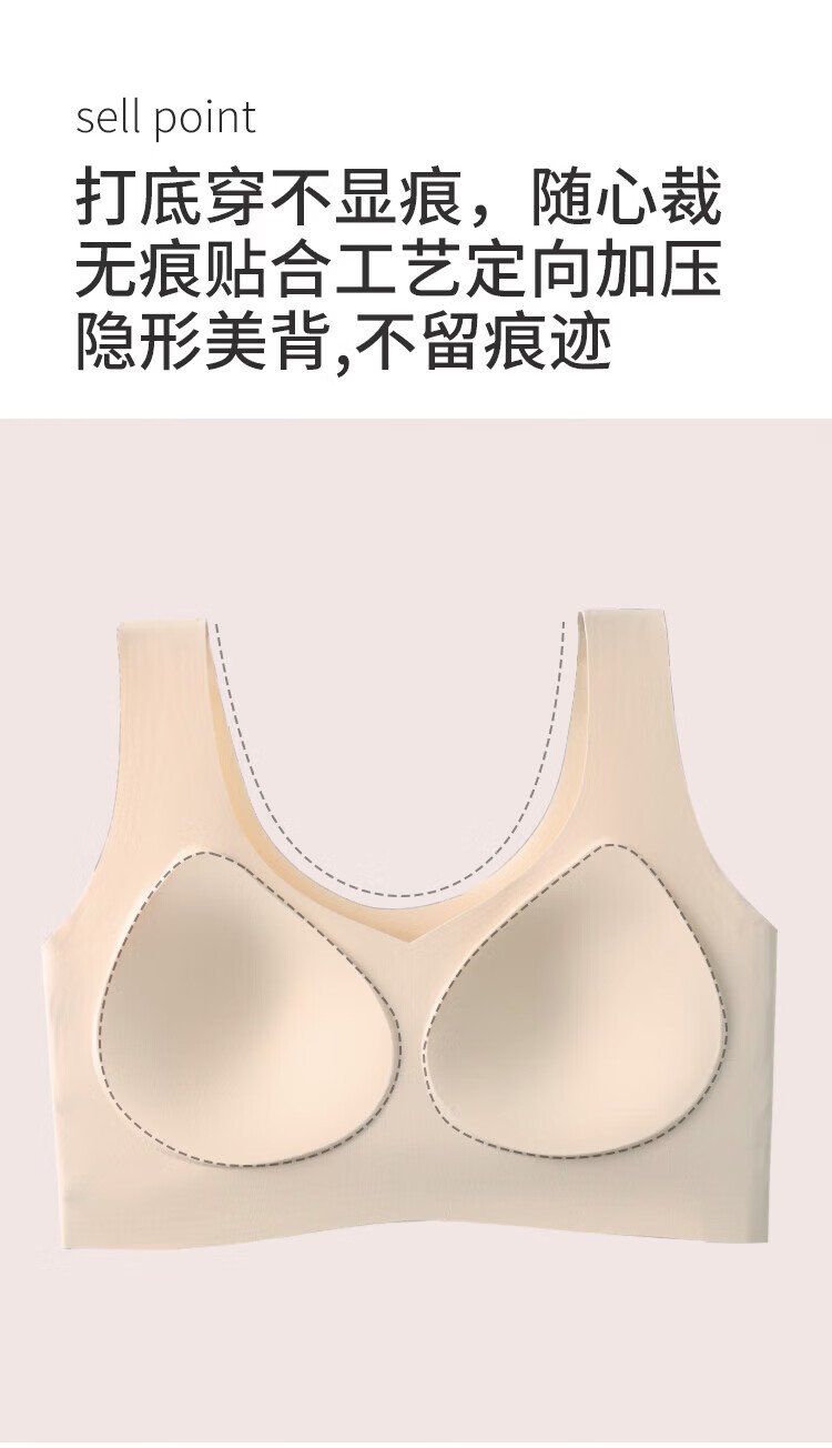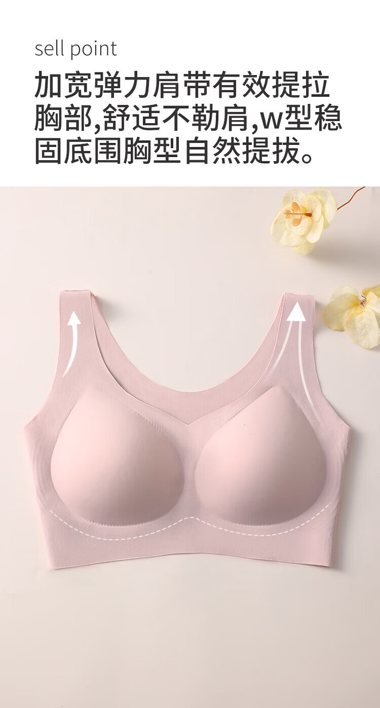剑蔓文胸 固定杯无痕一体式可机洗高弹裸感收副乳内衣女无钢圈背心 粉色+肤色 XL 120-140斤