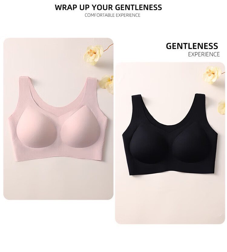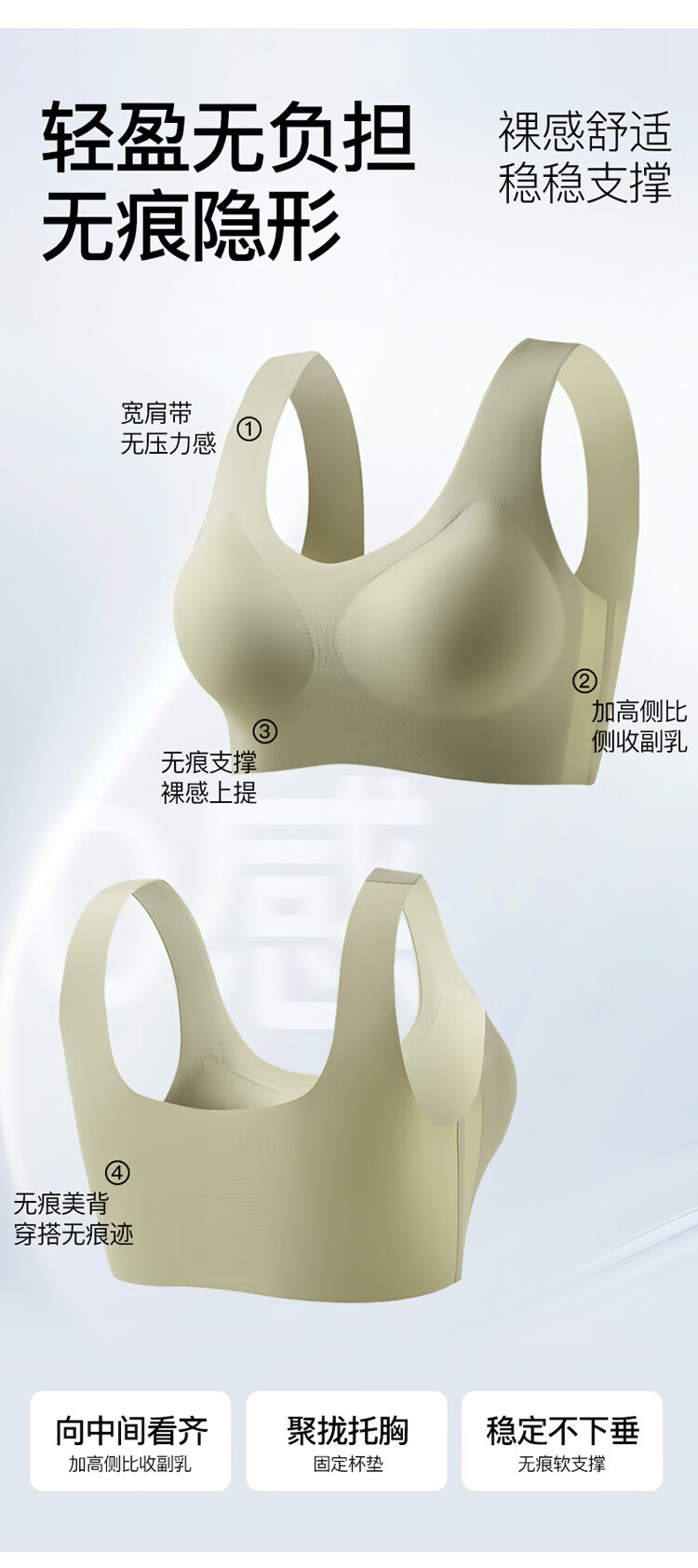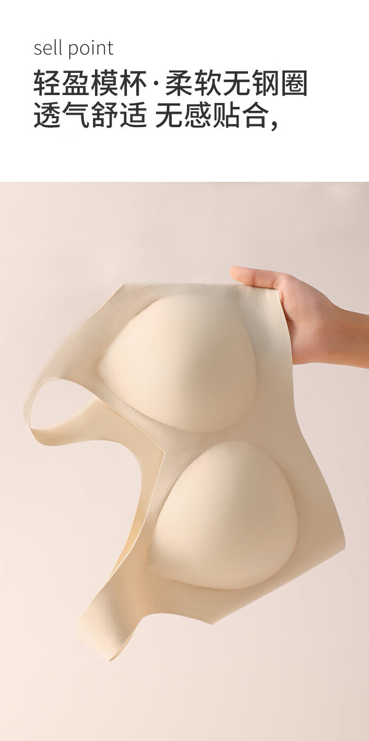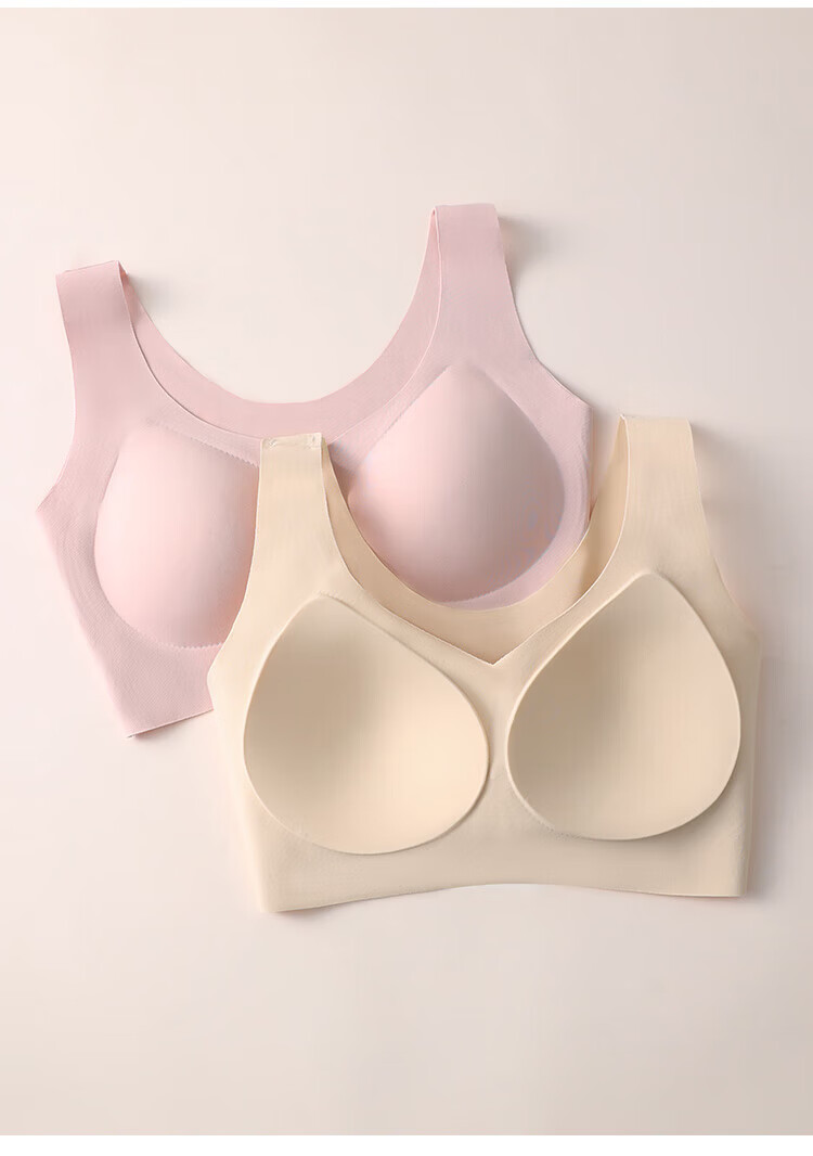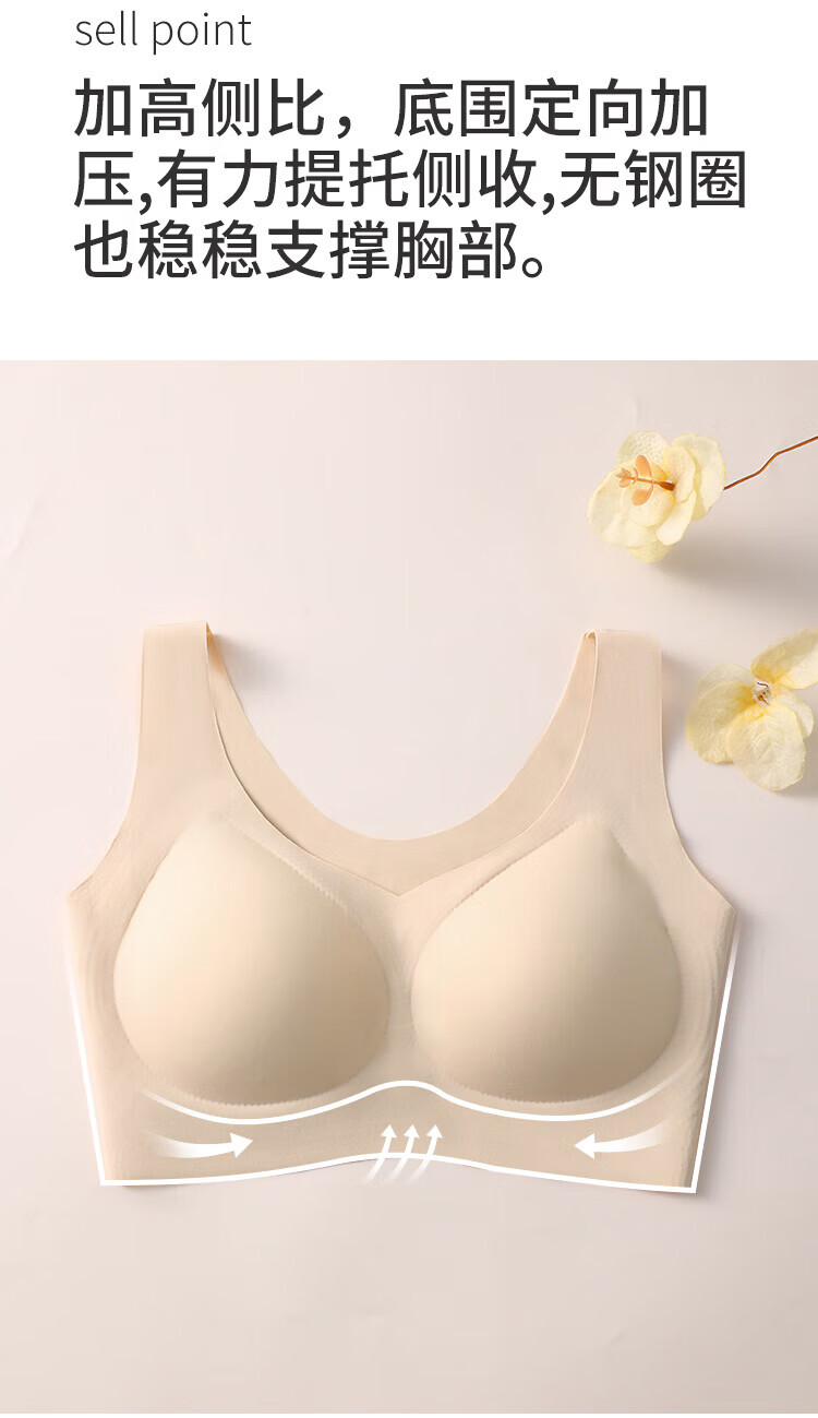剑蔓文胸 固定杯无痕一体式可机洗高弹裸感收副乳内衣女无钢圈背心 粉色+肤色 XL 120-140斤