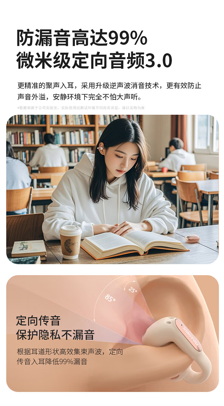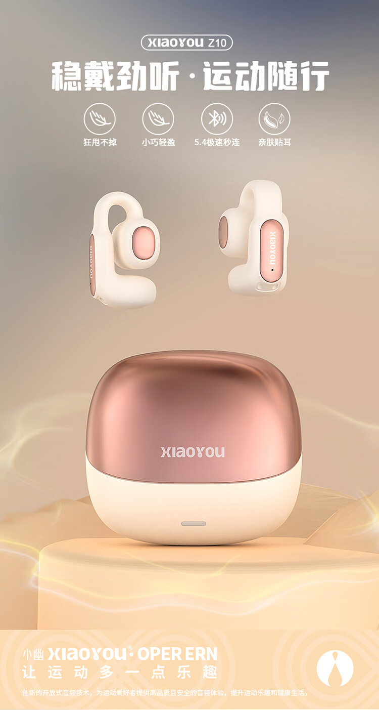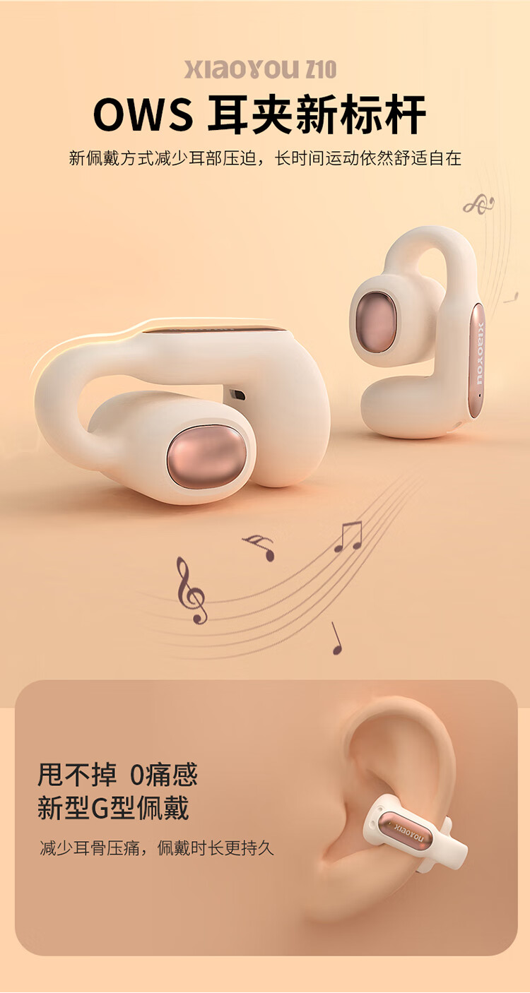 小幽蓝牙耳机耳夹式z10耳机不入耳G型蓝牙5.4无感佩戴运动音乐耳机 玫瑰金
