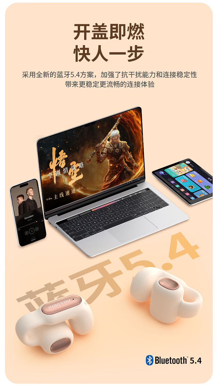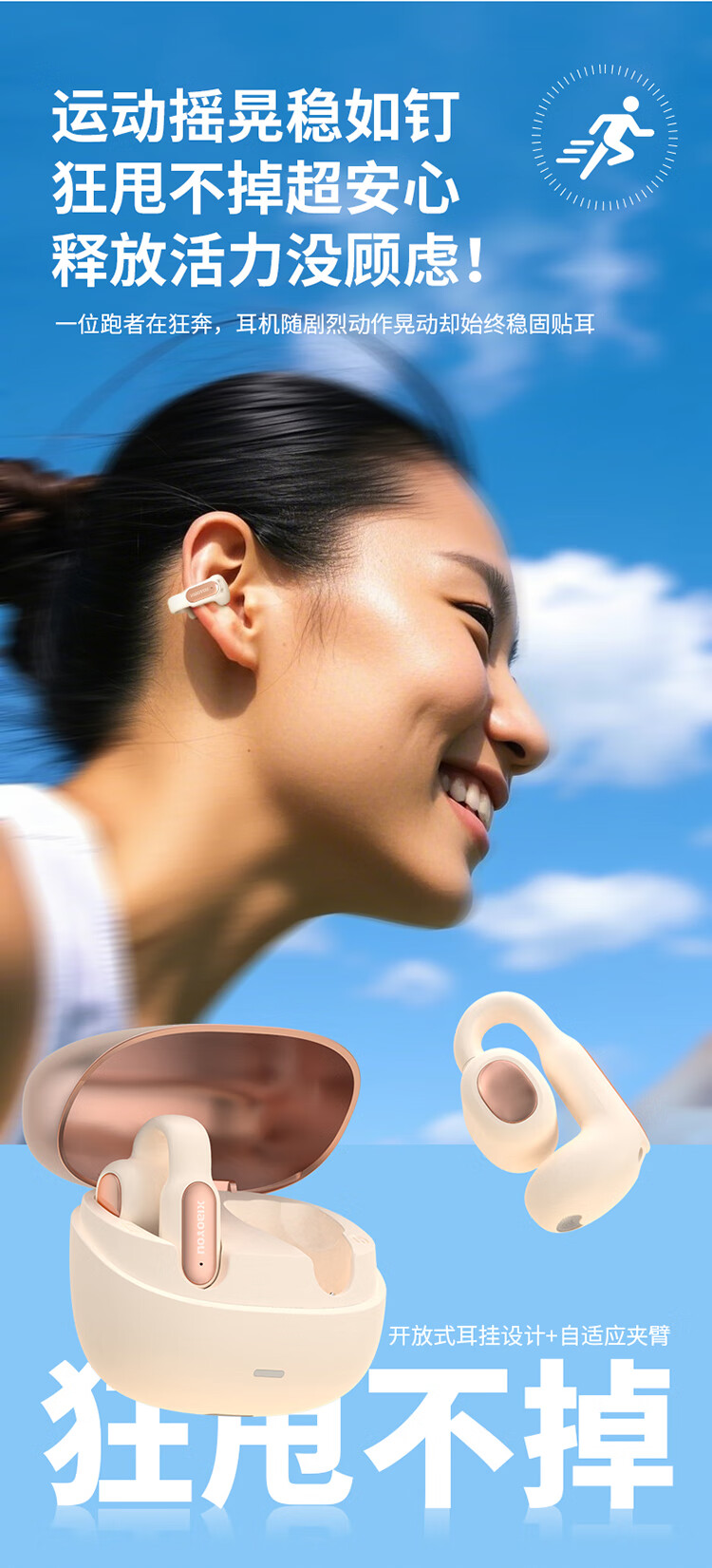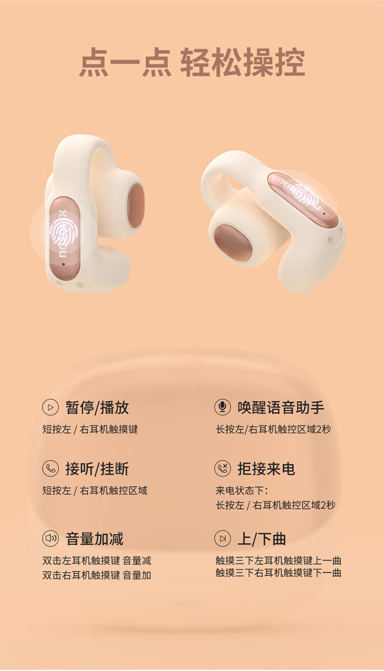 小幽蓝牙耳机耳夹式z10耳机不入耳G型蓝牙5.4无感佩戴运动音乐耳机 玫瑰金