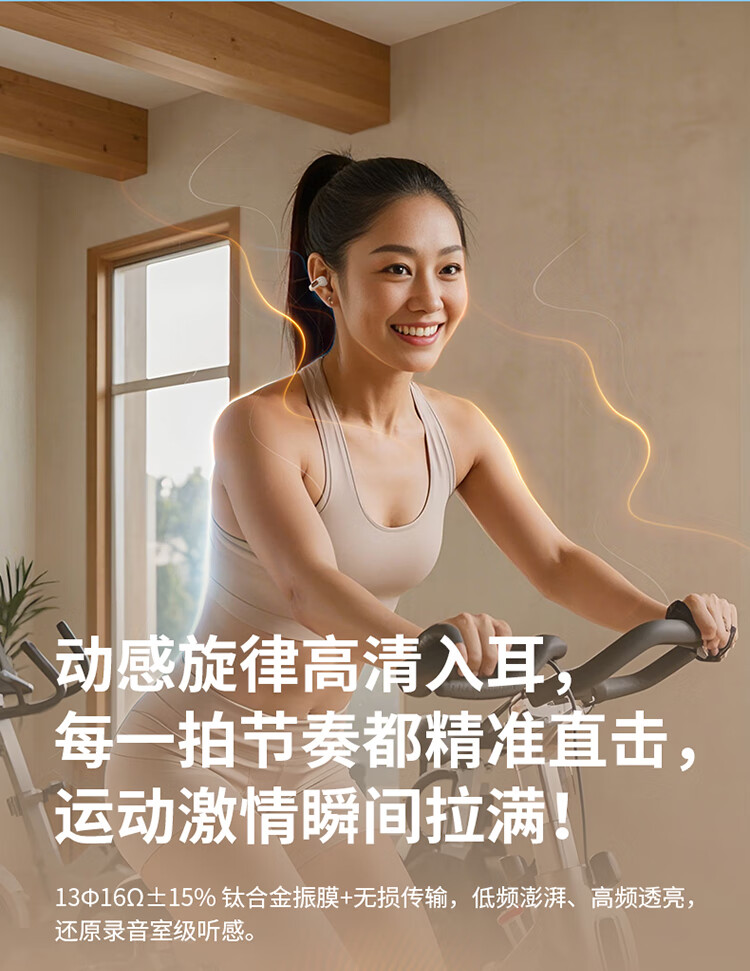 歌丽斯【优选】OWS无线蓝牙耳机不入耳开放式挂耳式耳机空气骨传导运动降 黑色 1个装 裸机(无配件)