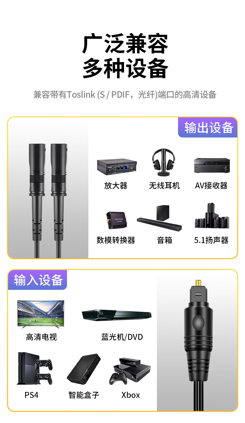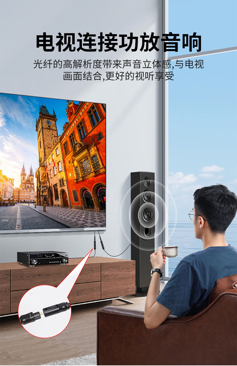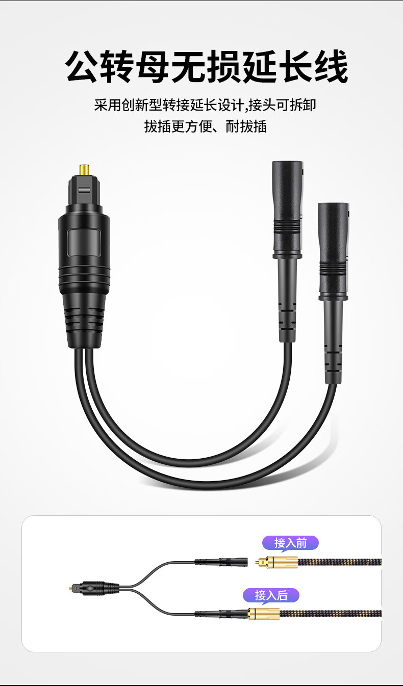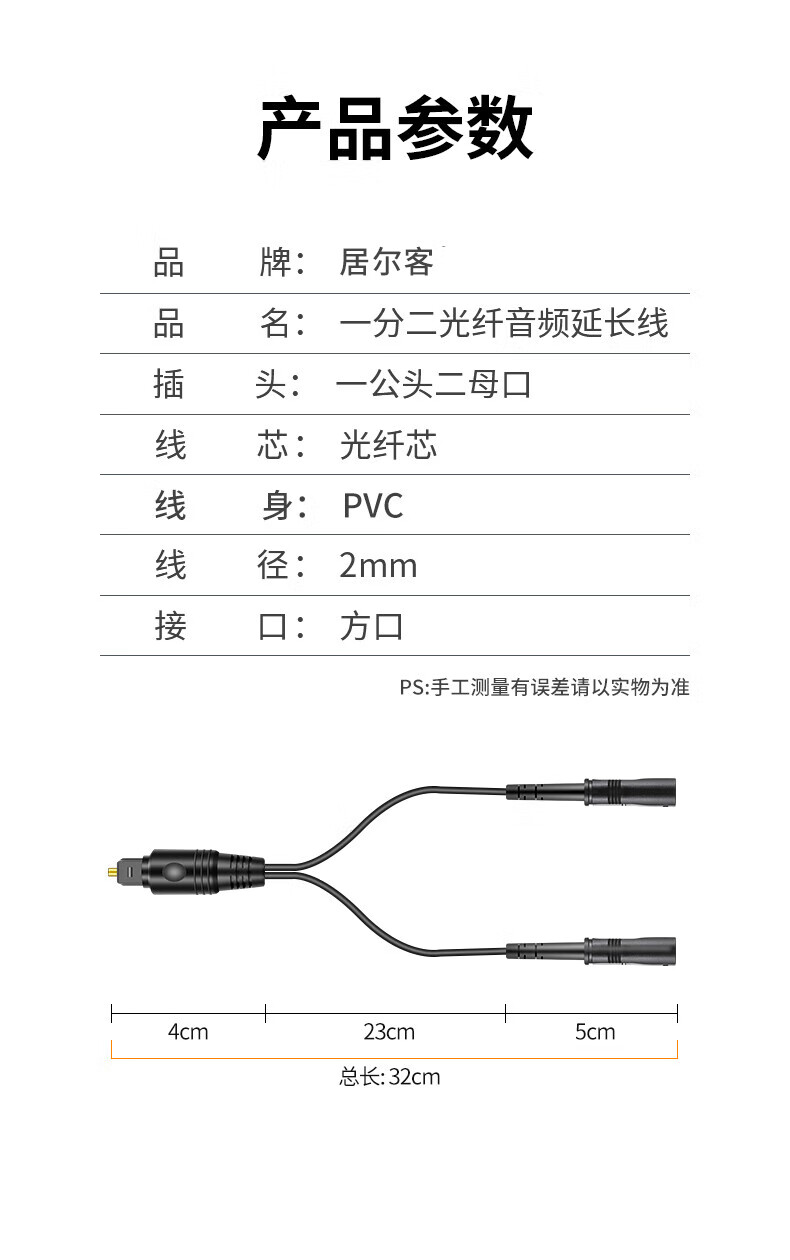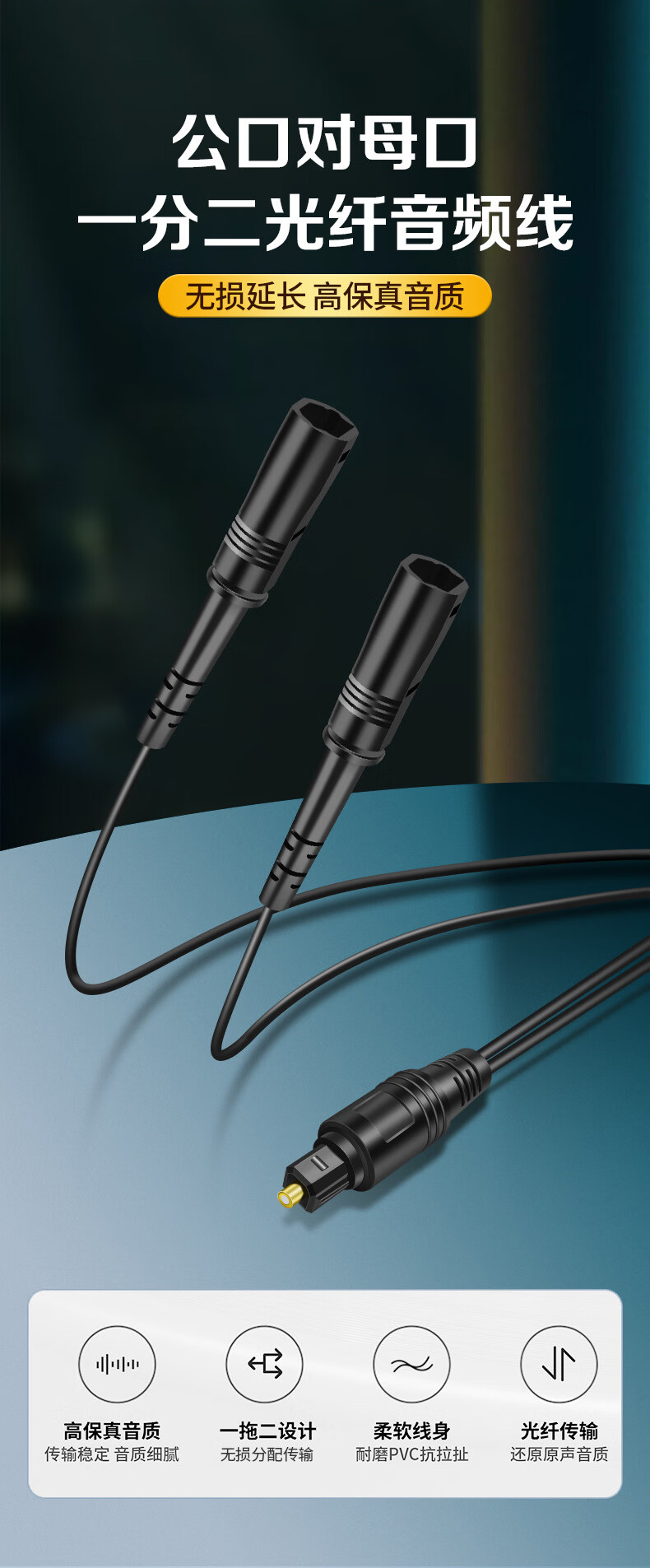 居尔客一分二公对母spdif数字光纤音频分配线 1拖2 2拖1多功能电视功放音响音箱回音壁 双向OPT音频接头 光纤一分二【公对母】长30cm