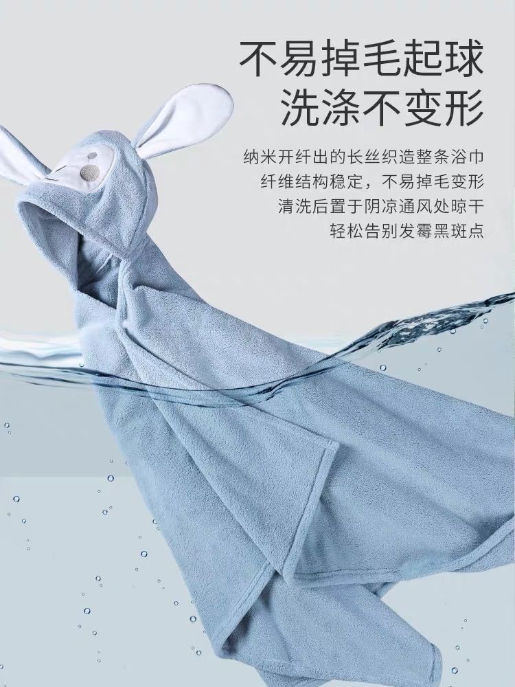 boxbaby儿童斗篷浴巾披风连帽婴幼儿春秋宝宝浴袍速干珊瑚绒裹巾四季款 蓝色小狗(80*80cm)