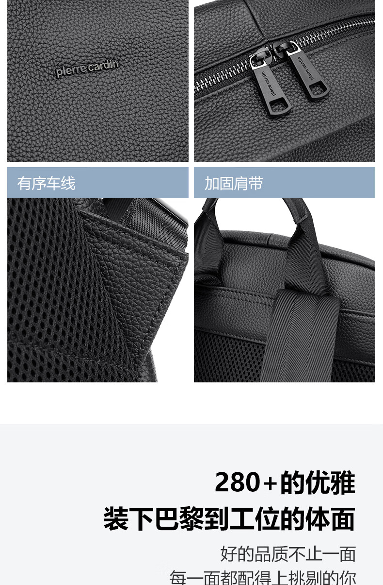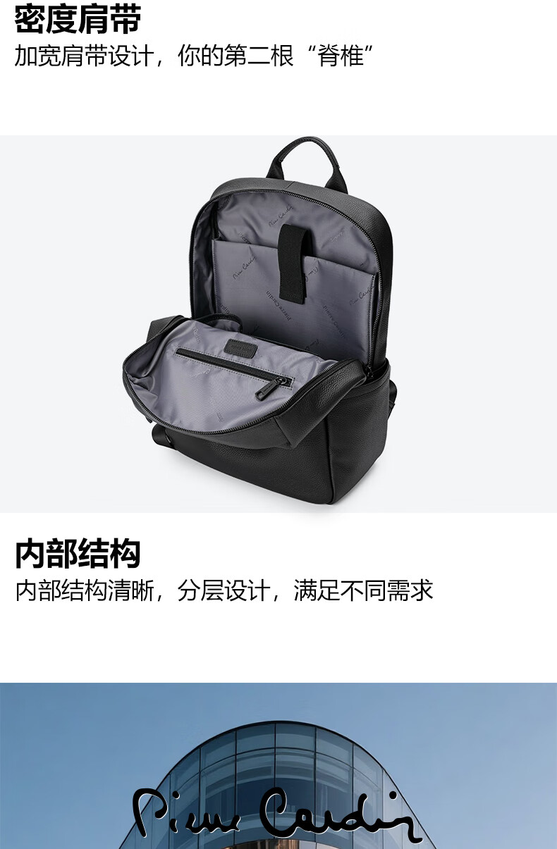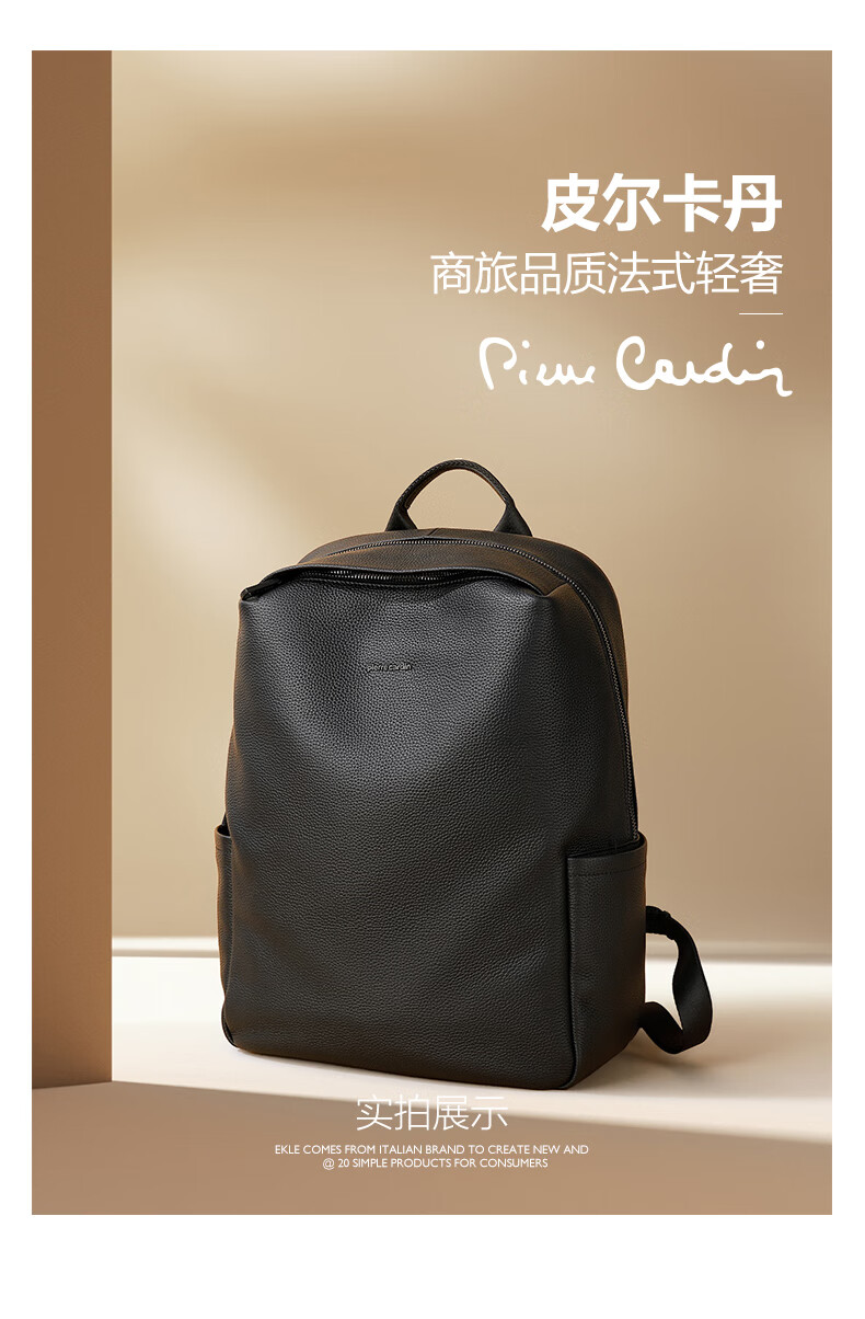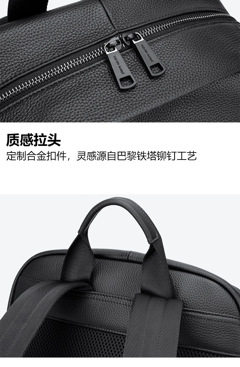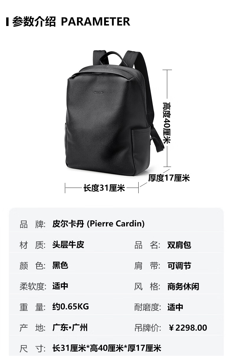 皮尔卡丹真皮大容量双肩包男头层牛皮旅商务出差电脑背包防泼水时尚旅行包 黑色【品牌正品-假一罚十】 长度31厘米高度40厘米厚度17厘米