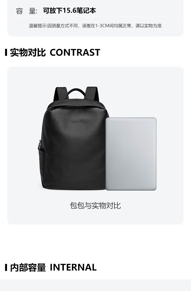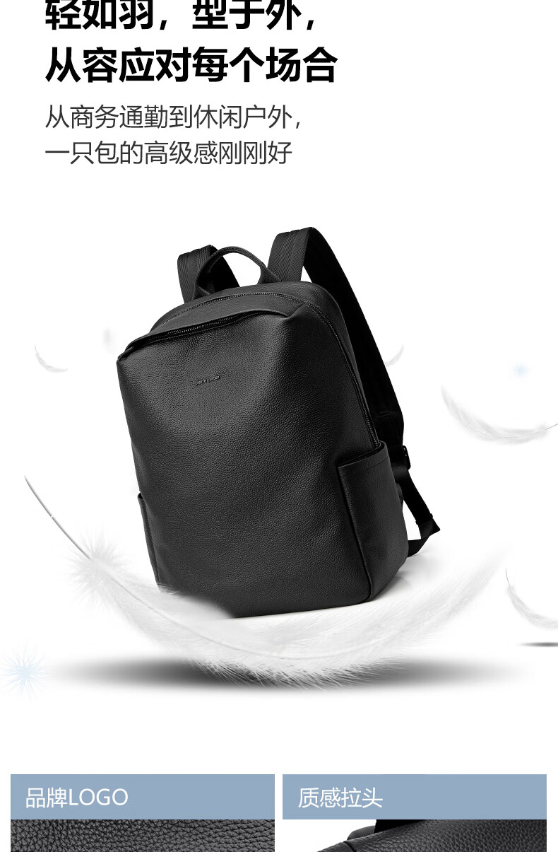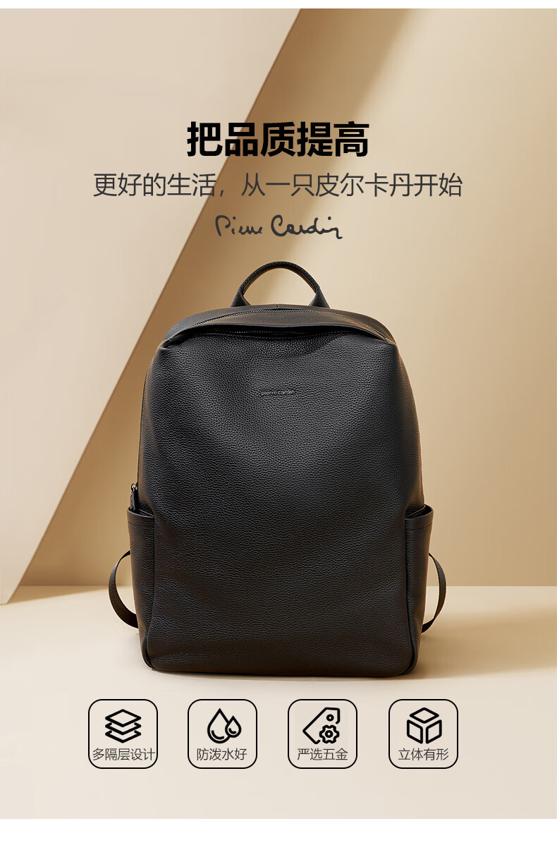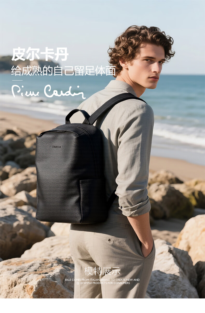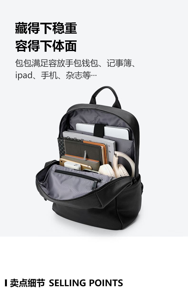 皮尔卡丹真皮大容量双肩包男头层牛皮旅商务出差电脑背包防泼水时尚旅行包 黑色【品牌正品-假一罚十】 长度31厘米高度40厘米厚度17厘米