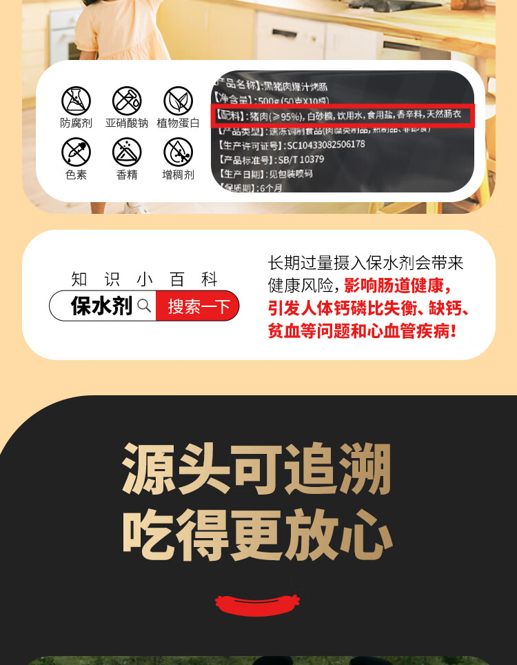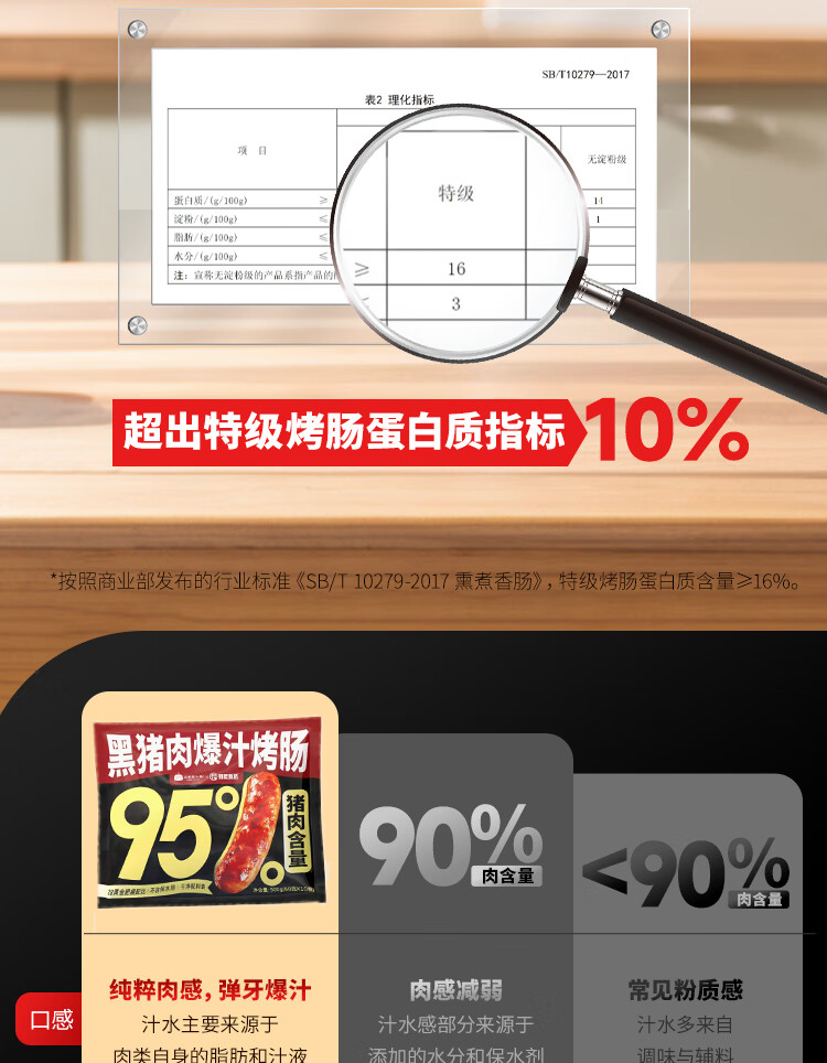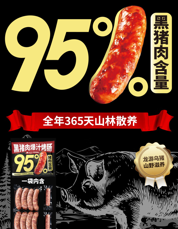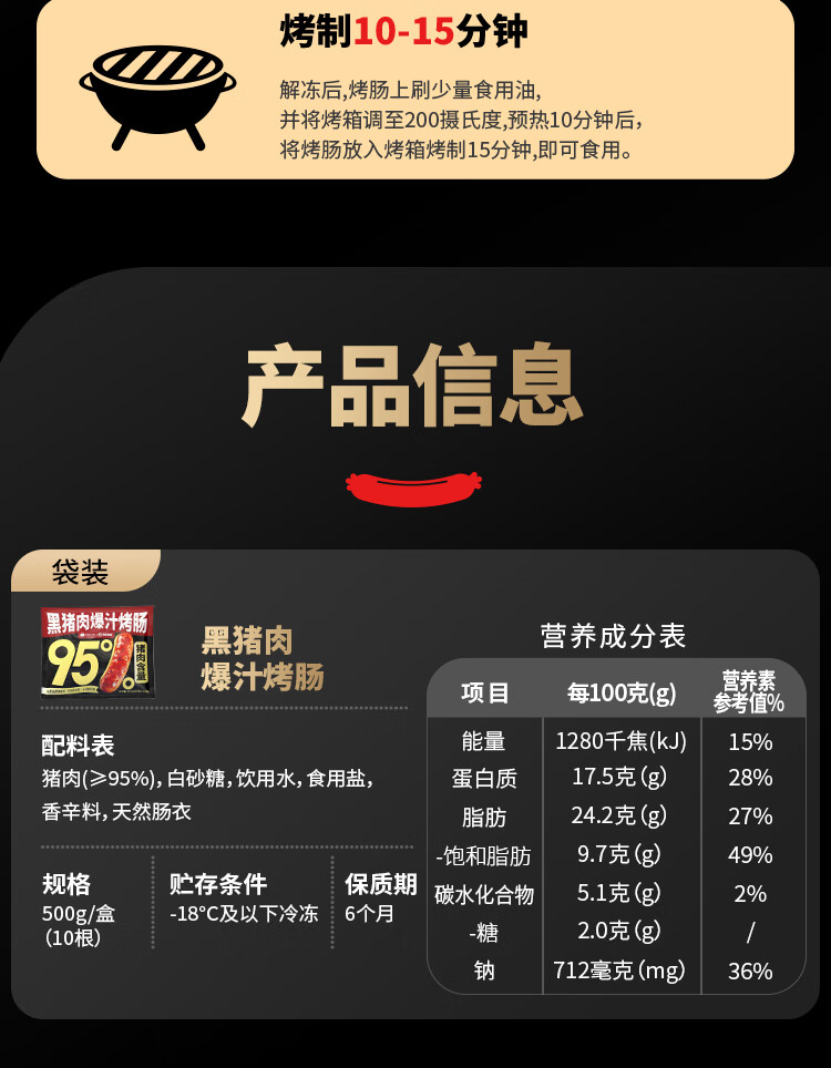 王继莲 小笼黑猪肉烤肠儿童火腿肠零食材超市香肠半成品即速食早餐0添加肉肠 黑猪肉烤肠500g*1【10根】