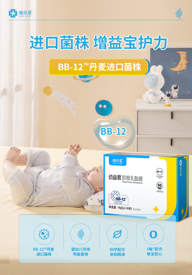 健启星益生菌粉 幼益君婴幼儿益生菌丹麦进口菌株 bb-12动物双歧杆菌 14袋*2盒