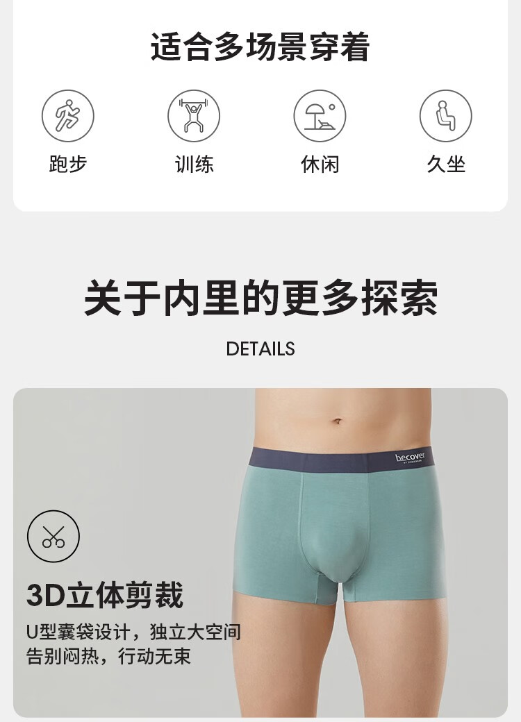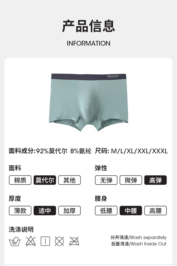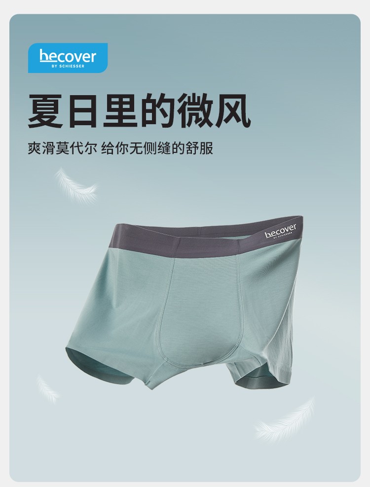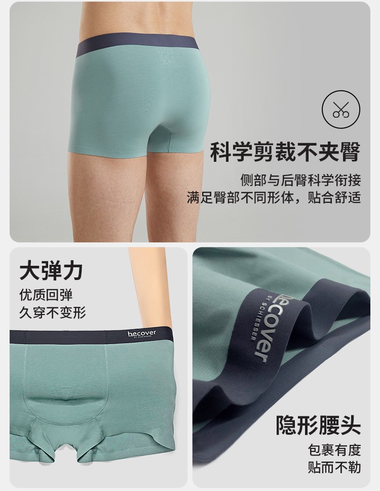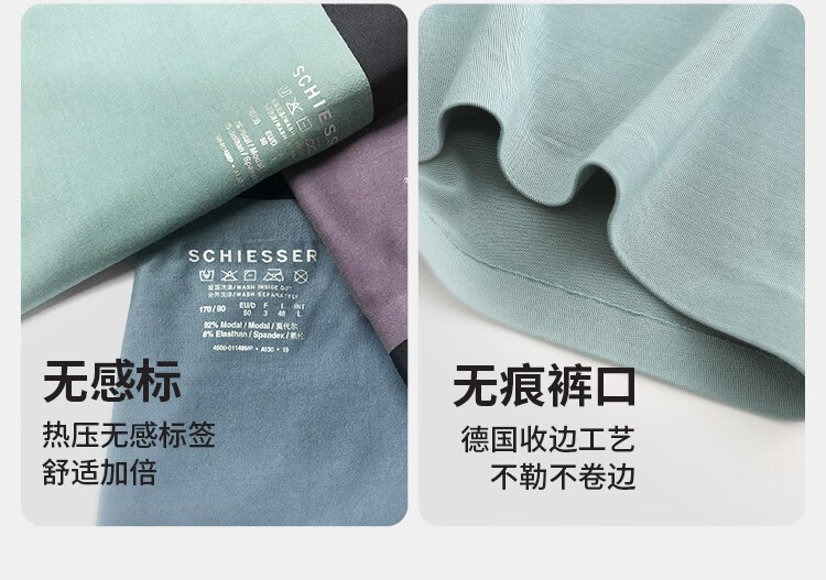 Schiesser舒雅男内裤Becover系列莫代尔无痕中腰平角裤【2条装】E5/20568T 铬绿色+深湖蓝 2条 XL