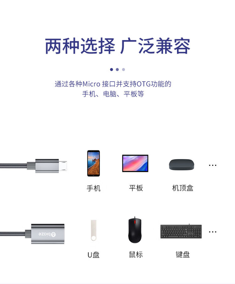毕亚兹【优选好物】 OTG数据头线 Micro USB转接线 安卓平板手机U盘连接