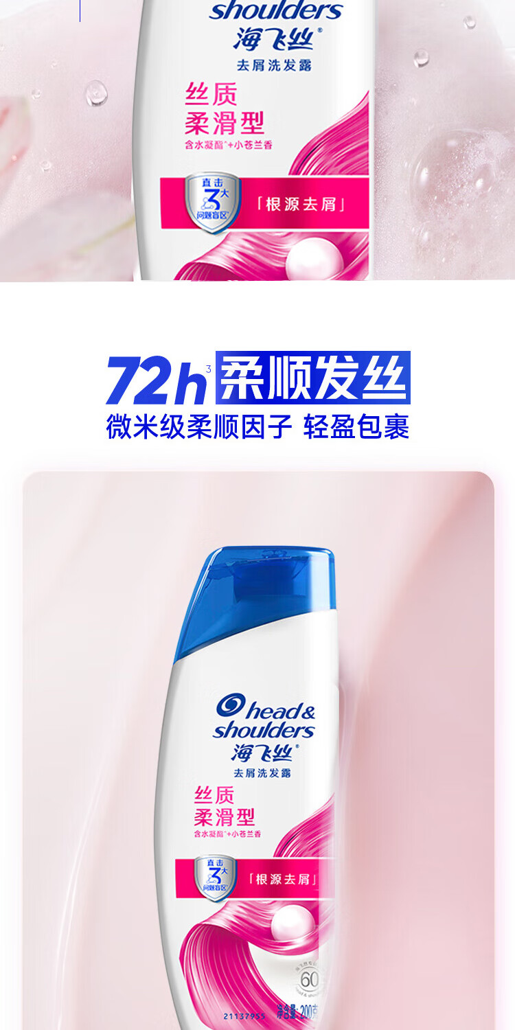 海飞丝【双11开门红】去屑洗发露男女通用丝质柔滑型头膏洗发露洗发液 【超值装】丝质柔滑洗发水650g*2