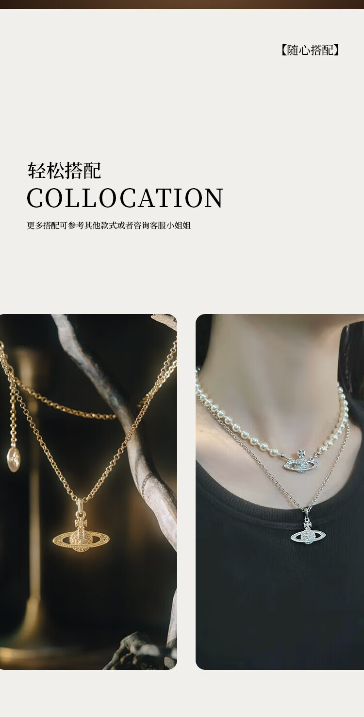 薇薇安·威斯特伍德(Vivienne Westwood)西太后项链土星吊坠项链女生锁骨链轻奢毛衣链送女友新年礼物 粉色-土星项链