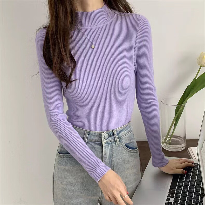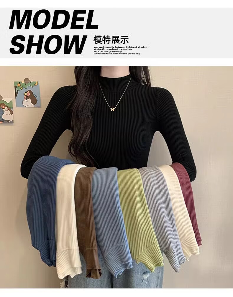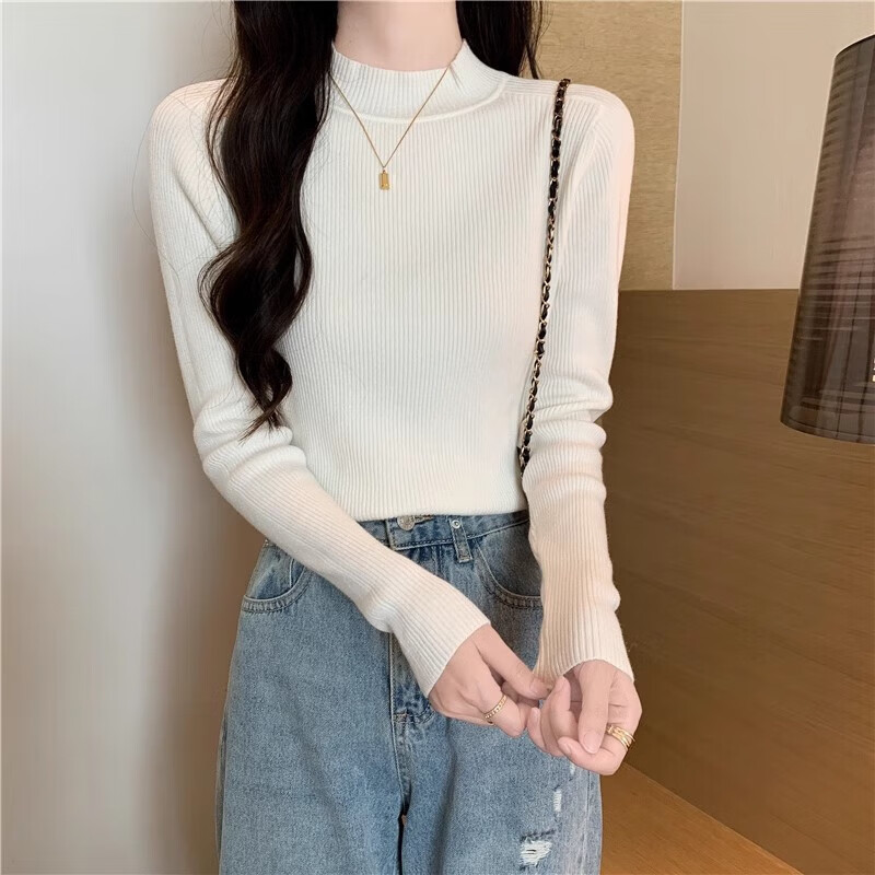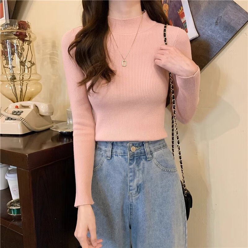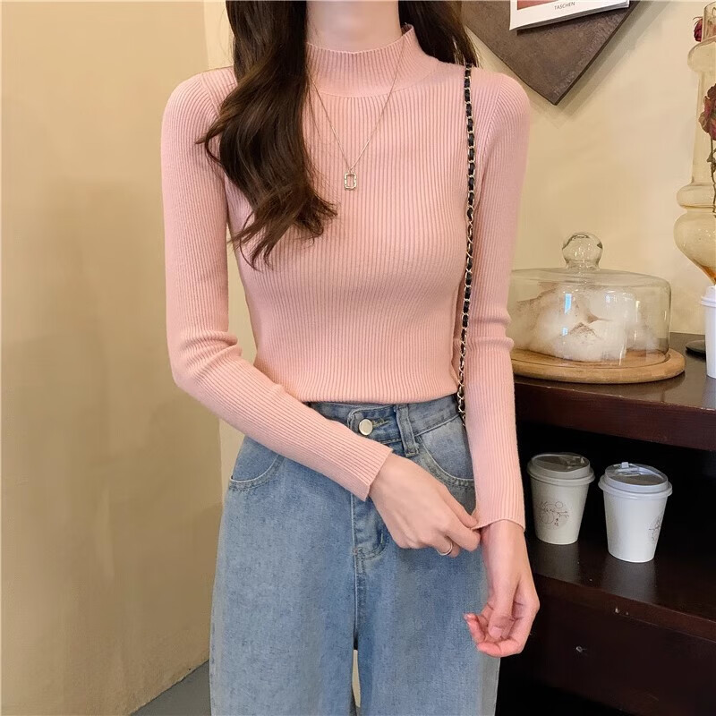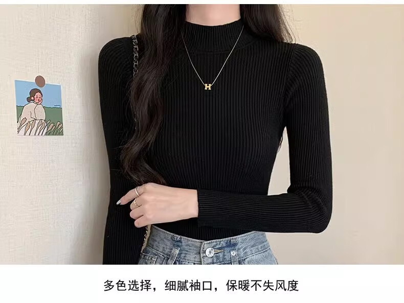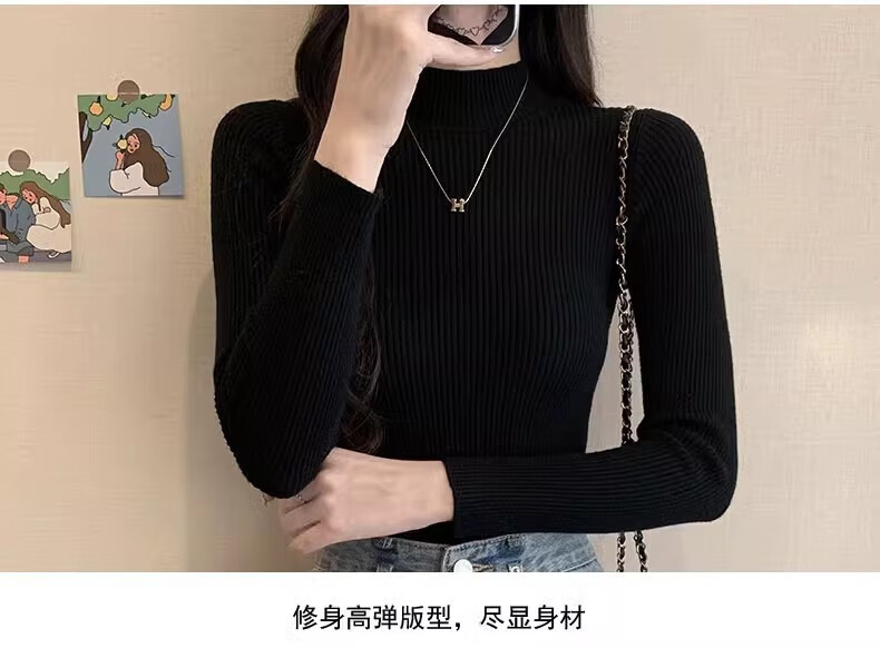 有只绵纯色半高领长袖毛衣女内搭打底衫春秋冬韩版百搭修身针织衫女上衣 半高领黑色 均码 【适合80-140斤】