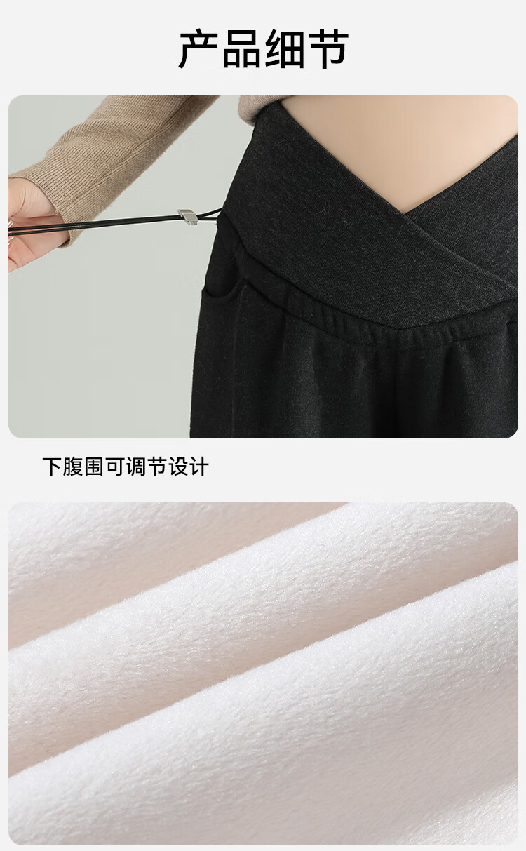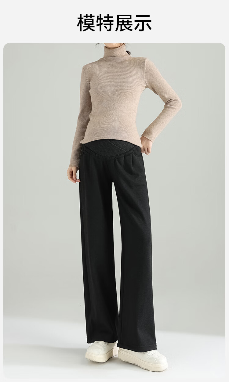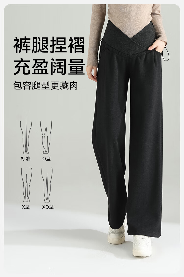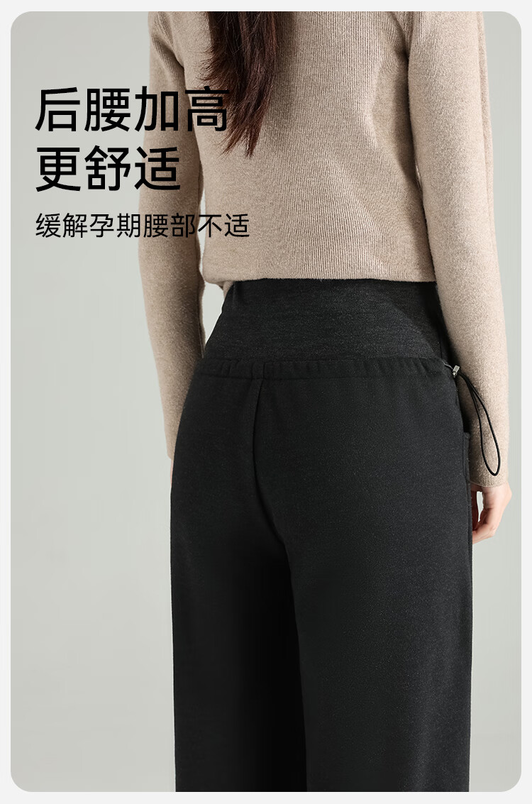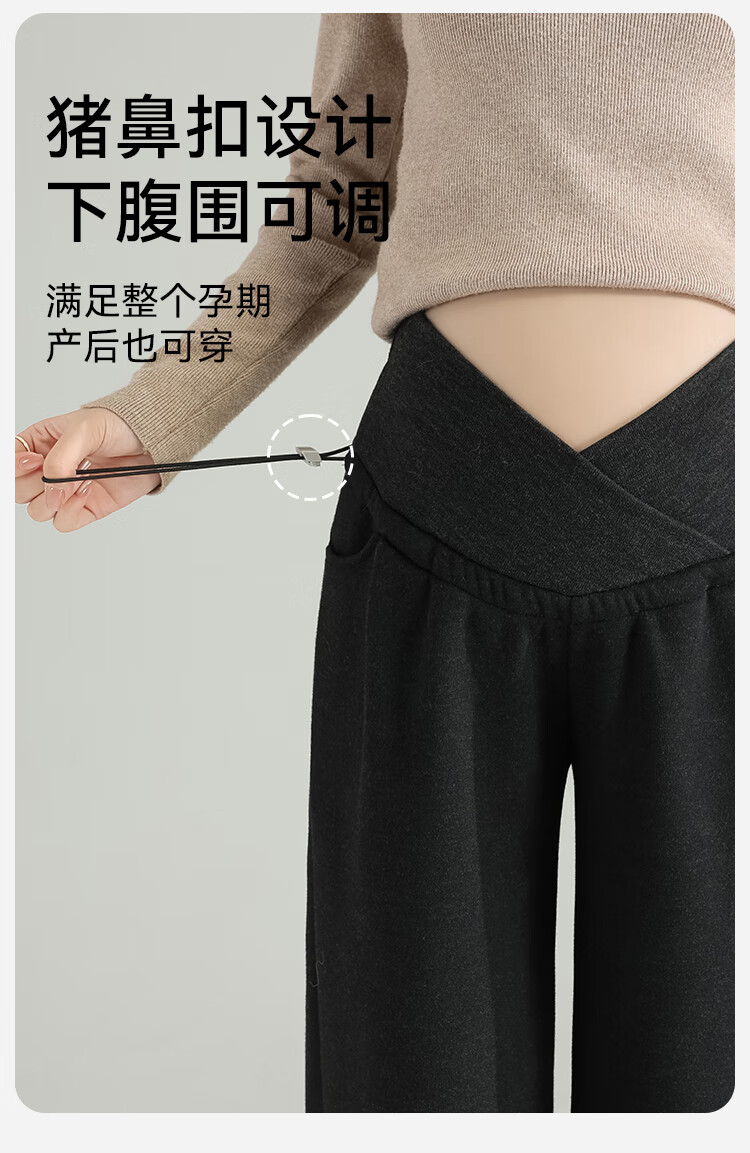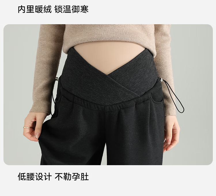 英氏(YEEHOO)孕妇裤加绒加厚低腰托腹阔腿裤外穿休闲直筒裤 深灰色 L