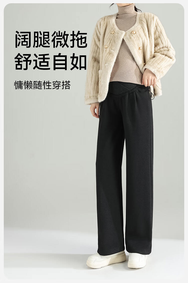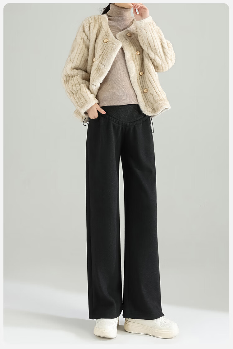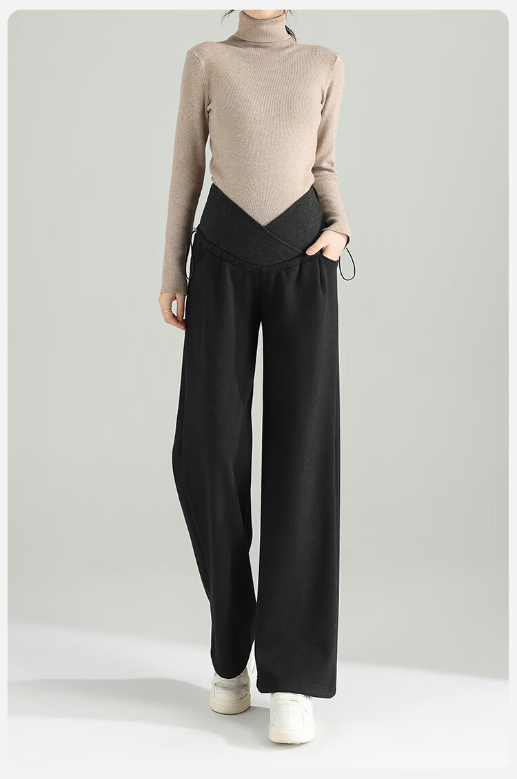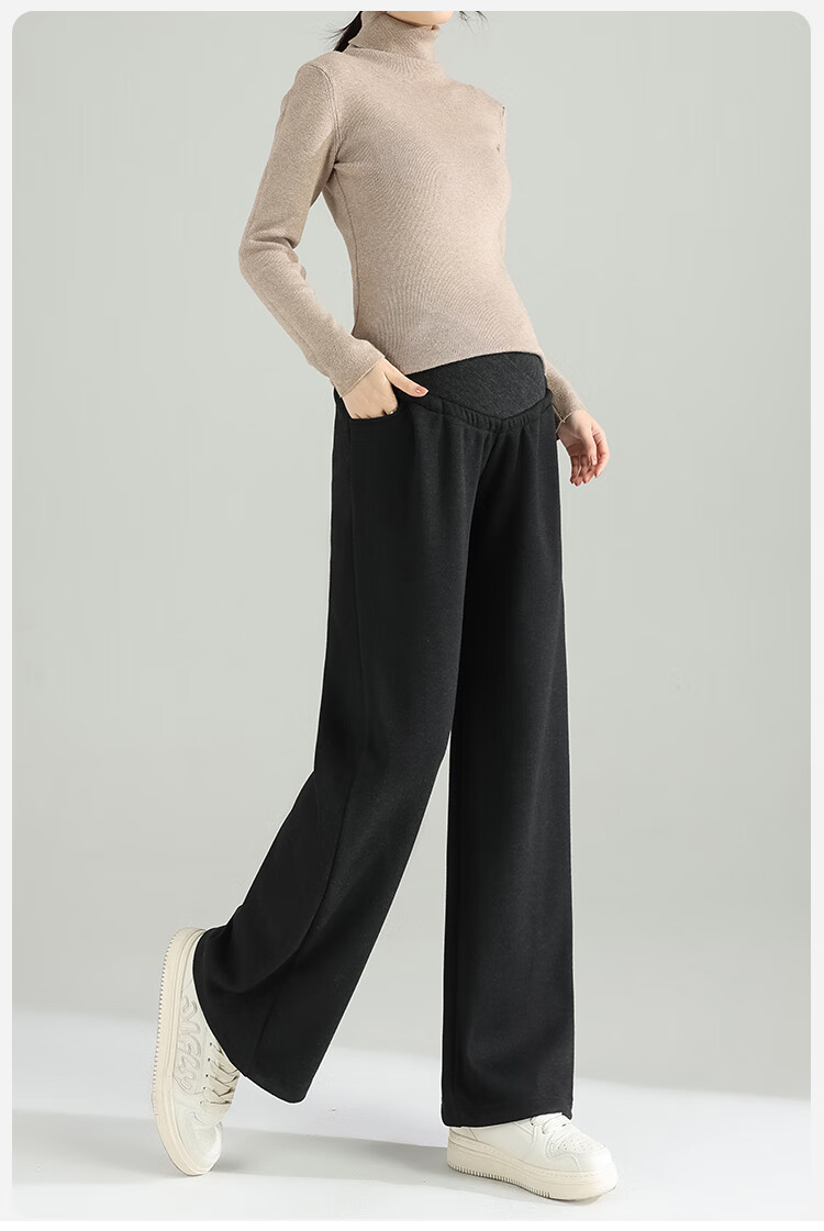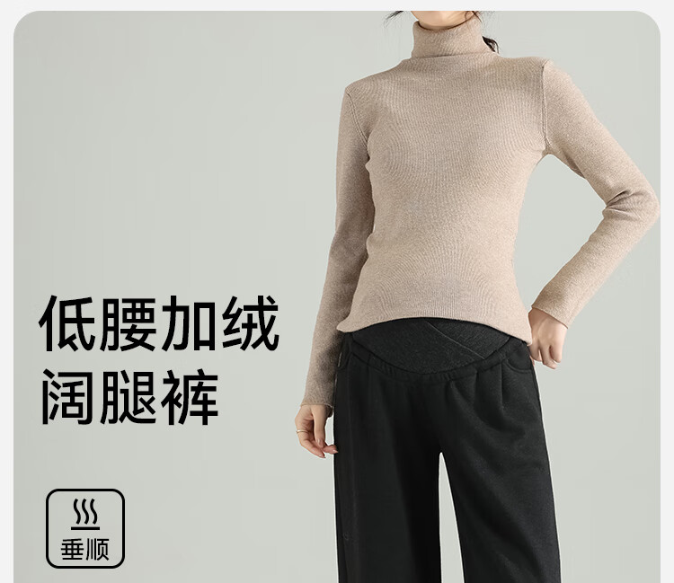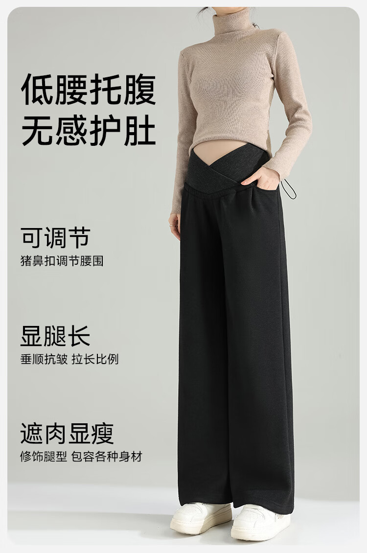 英氏(YEEHOO)孕妇裤加绒加厚低腰托腹阔腿裤外穿休闲直筒裤 深灰色 L