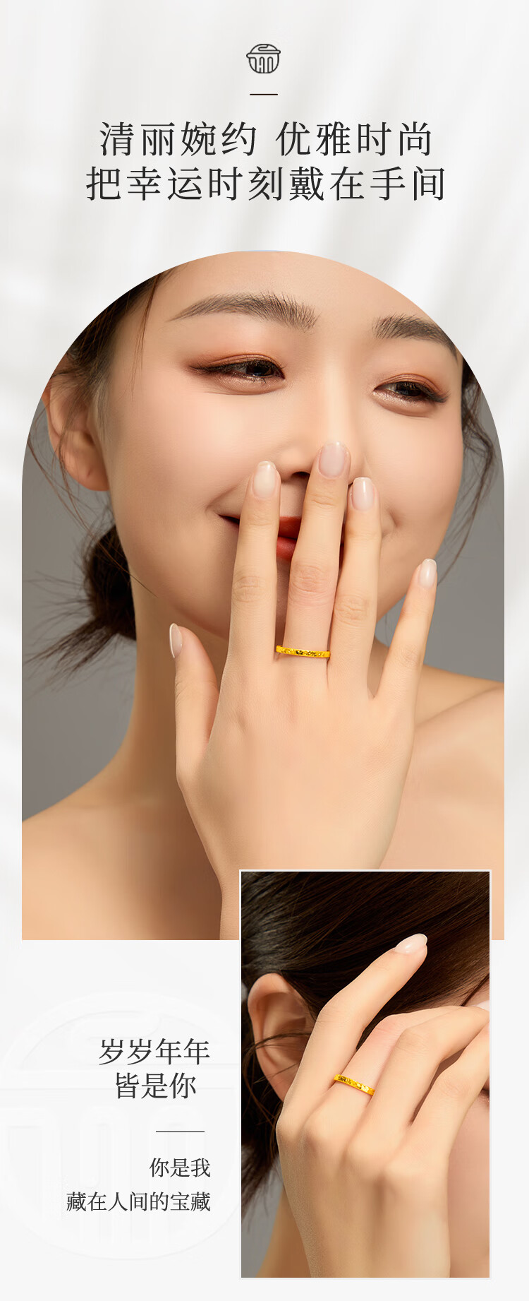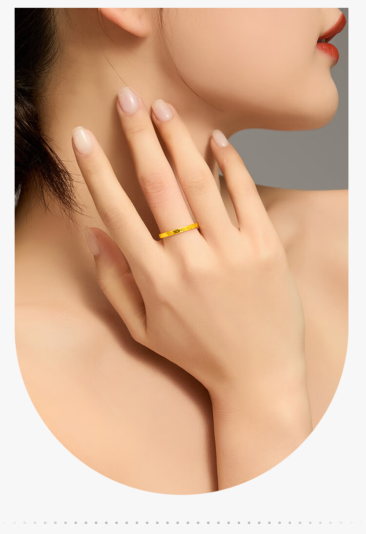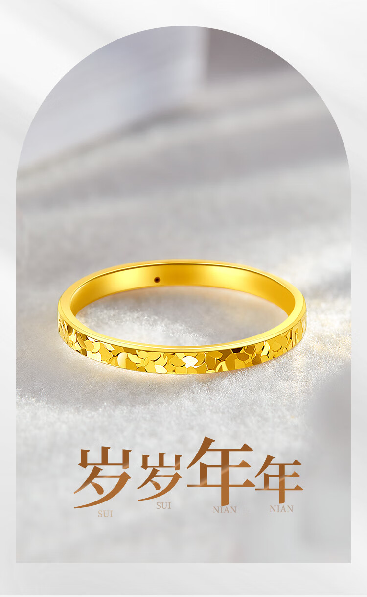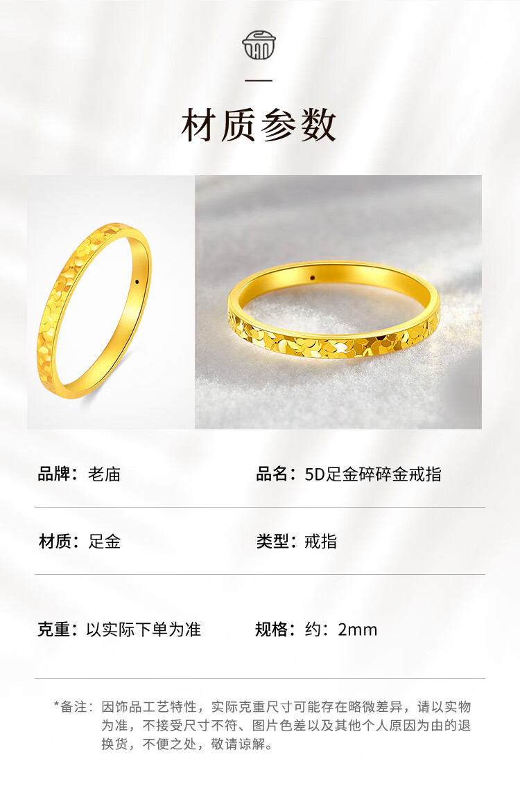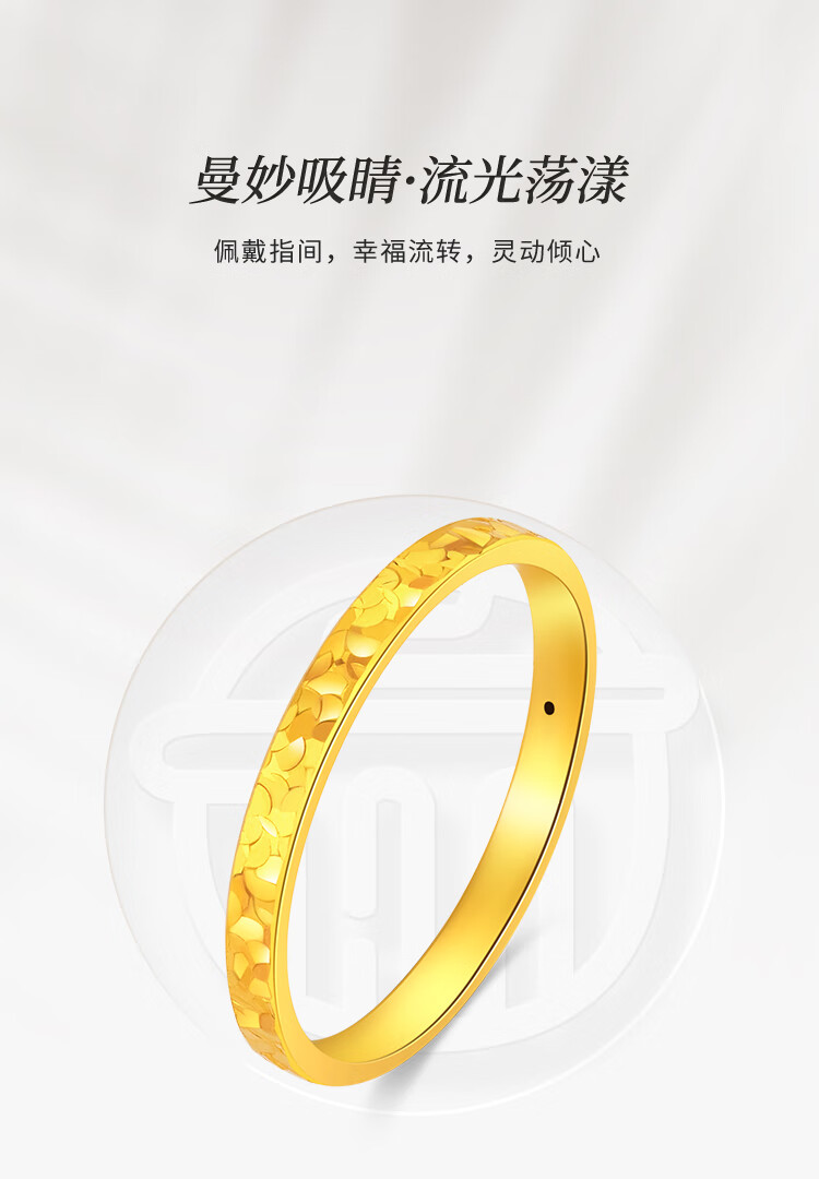 老庙黄金碎碎冰黄金戒指足金素圈碎金戒指女求婚送女友生日情人节礼物 5D 足金碎碎冰戒指 13 号|约 0.9g